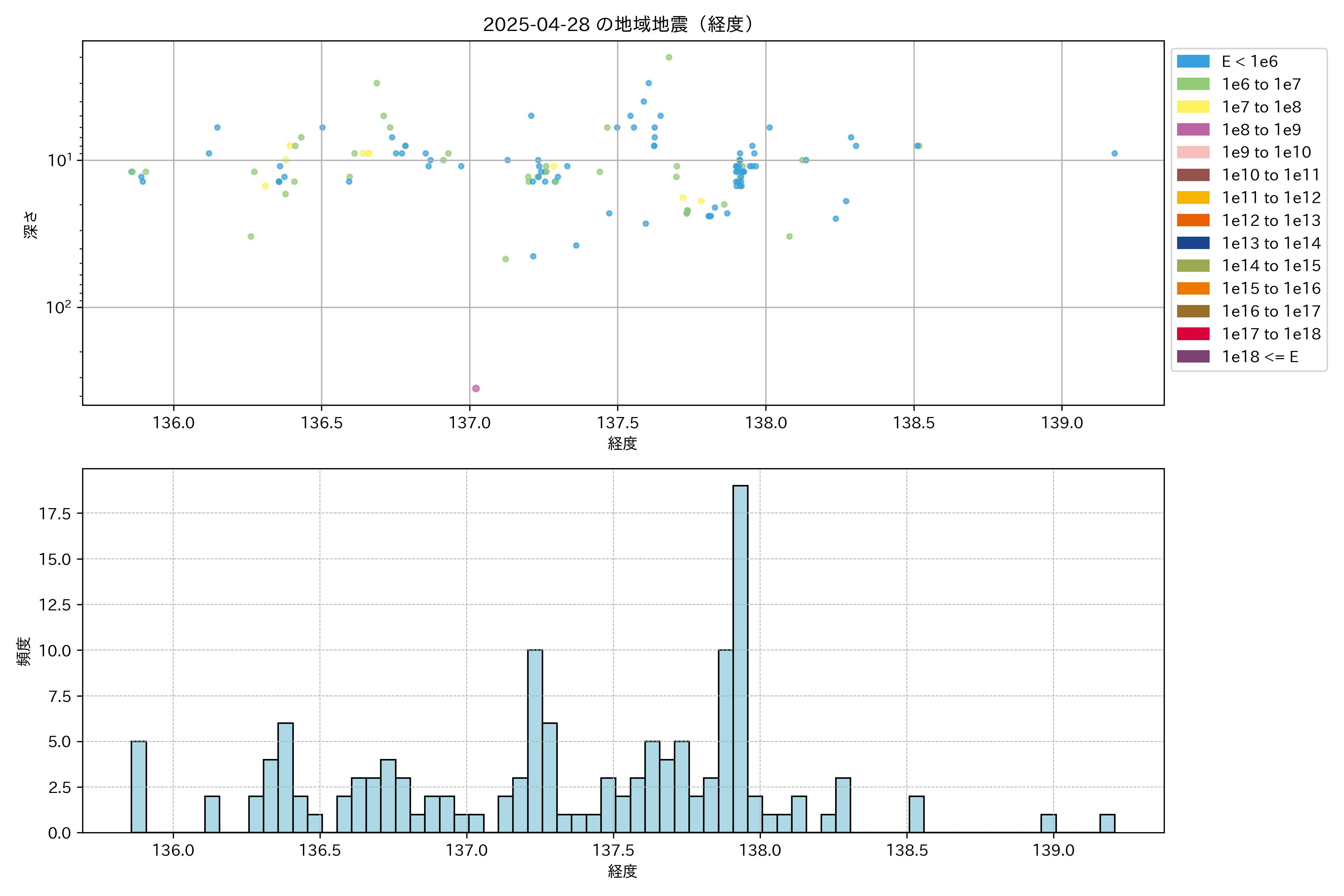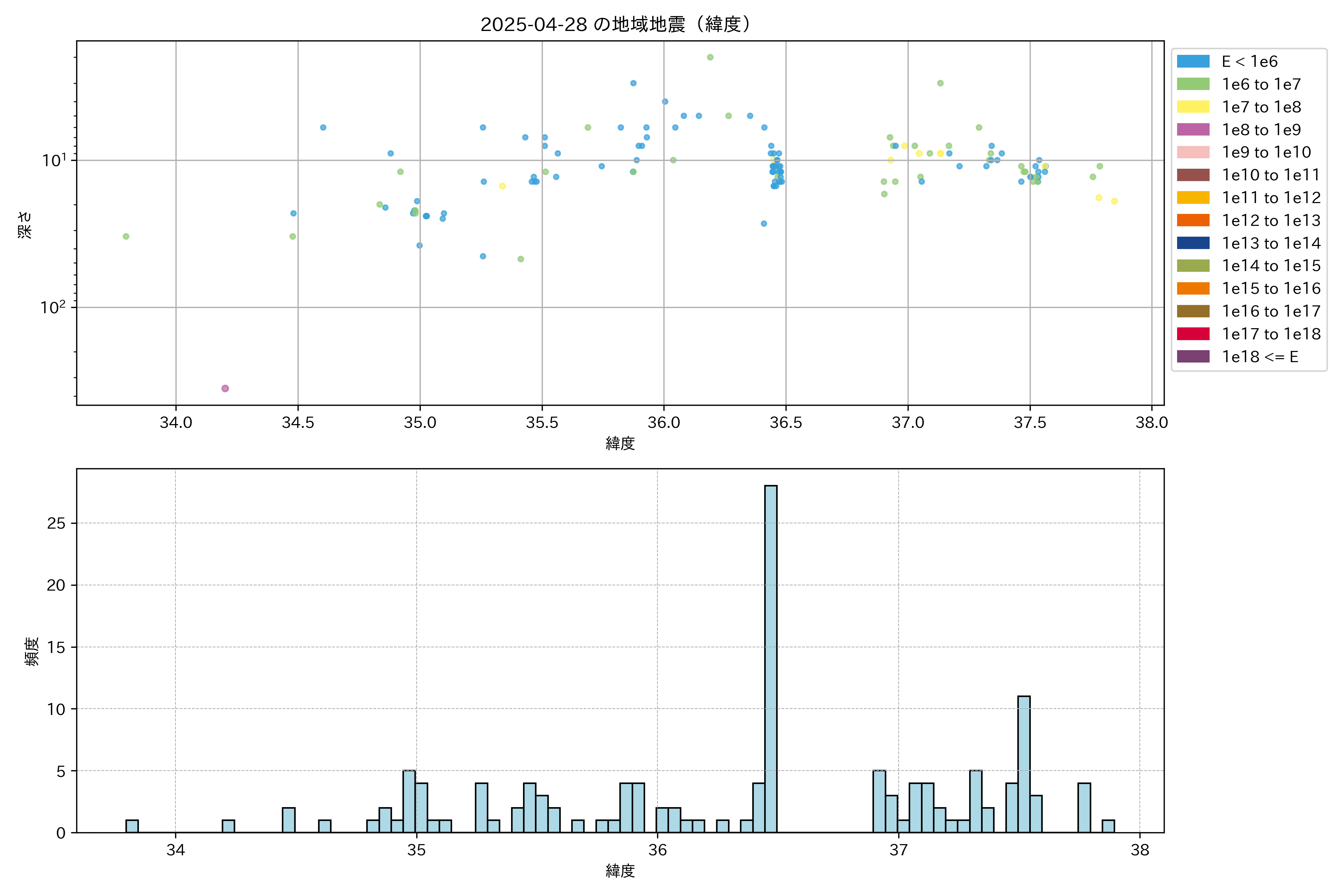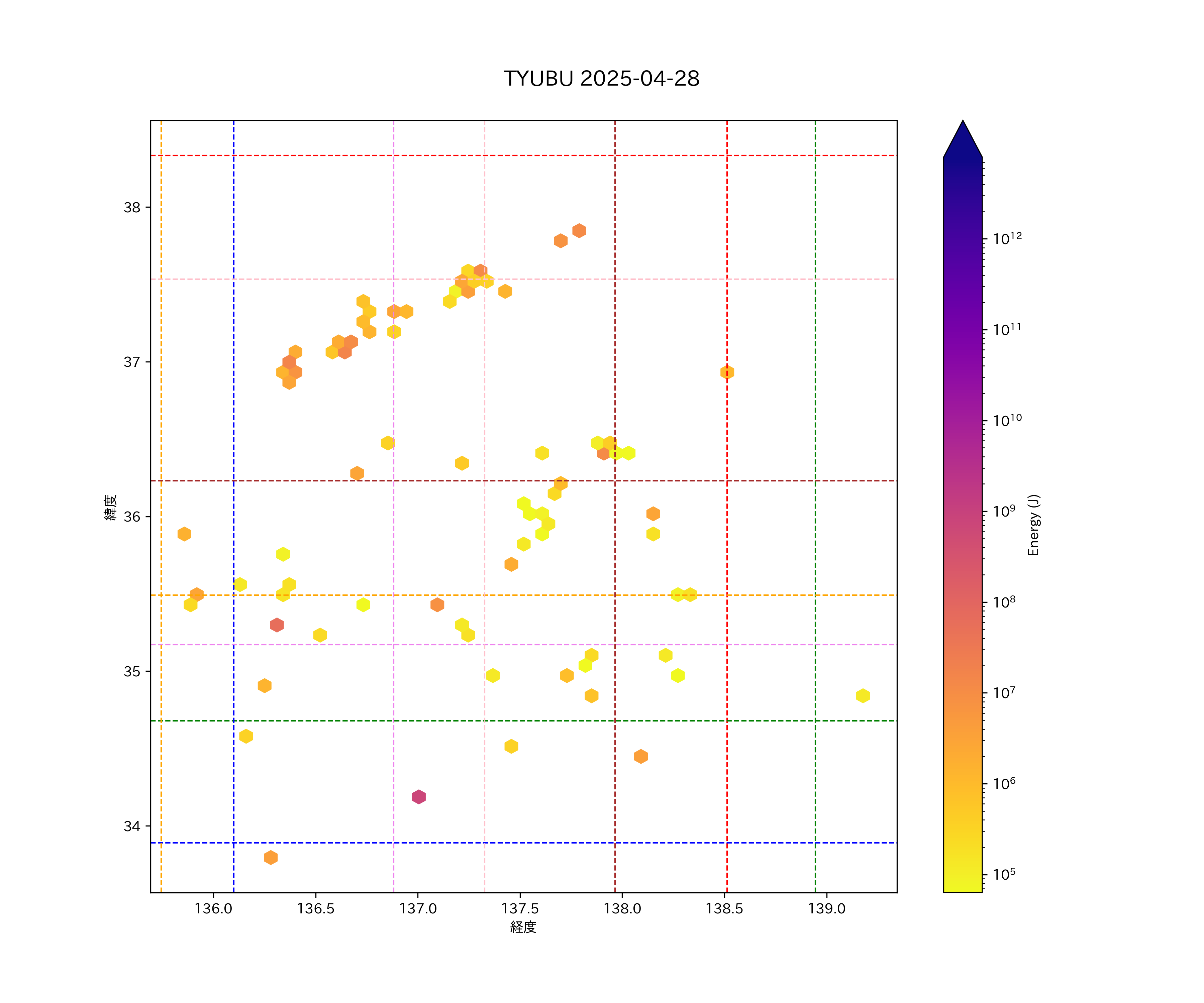 2025年04月28日中部エリア震源マップ