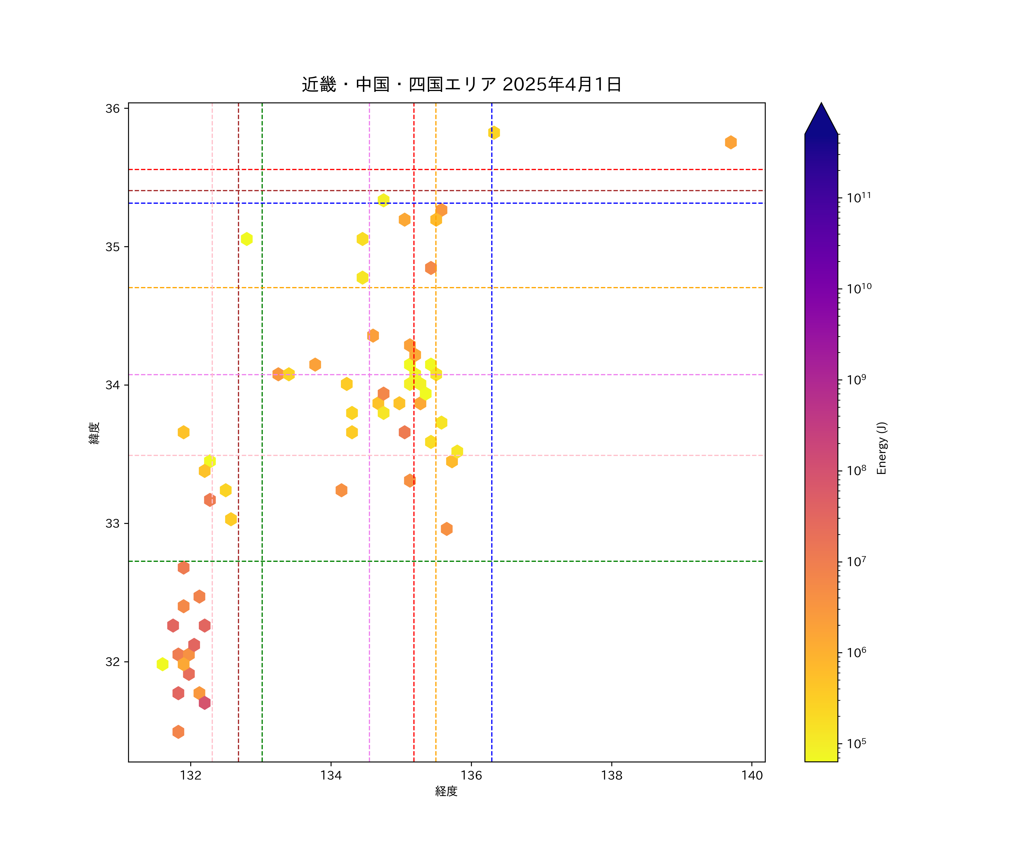 2025年04月01日近畿・中国・四国エリア震源マップ