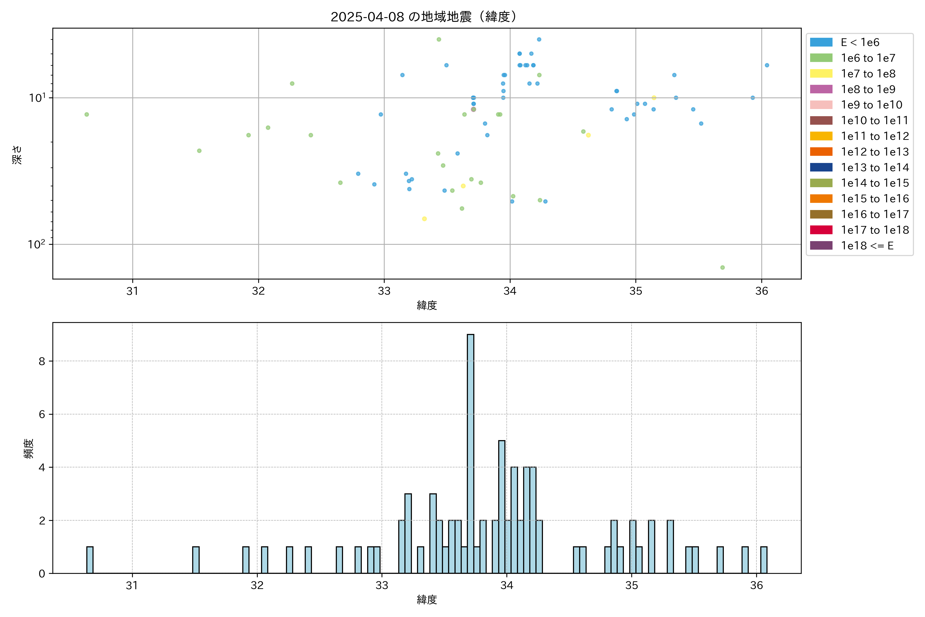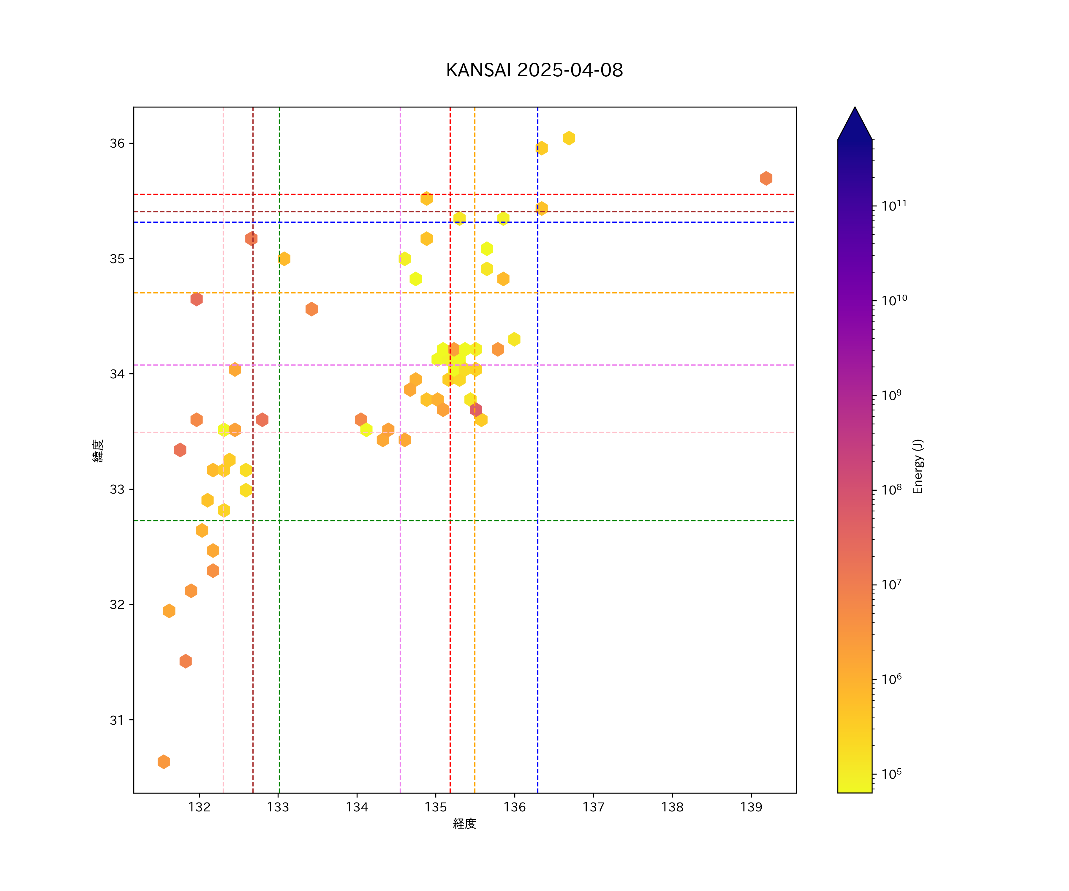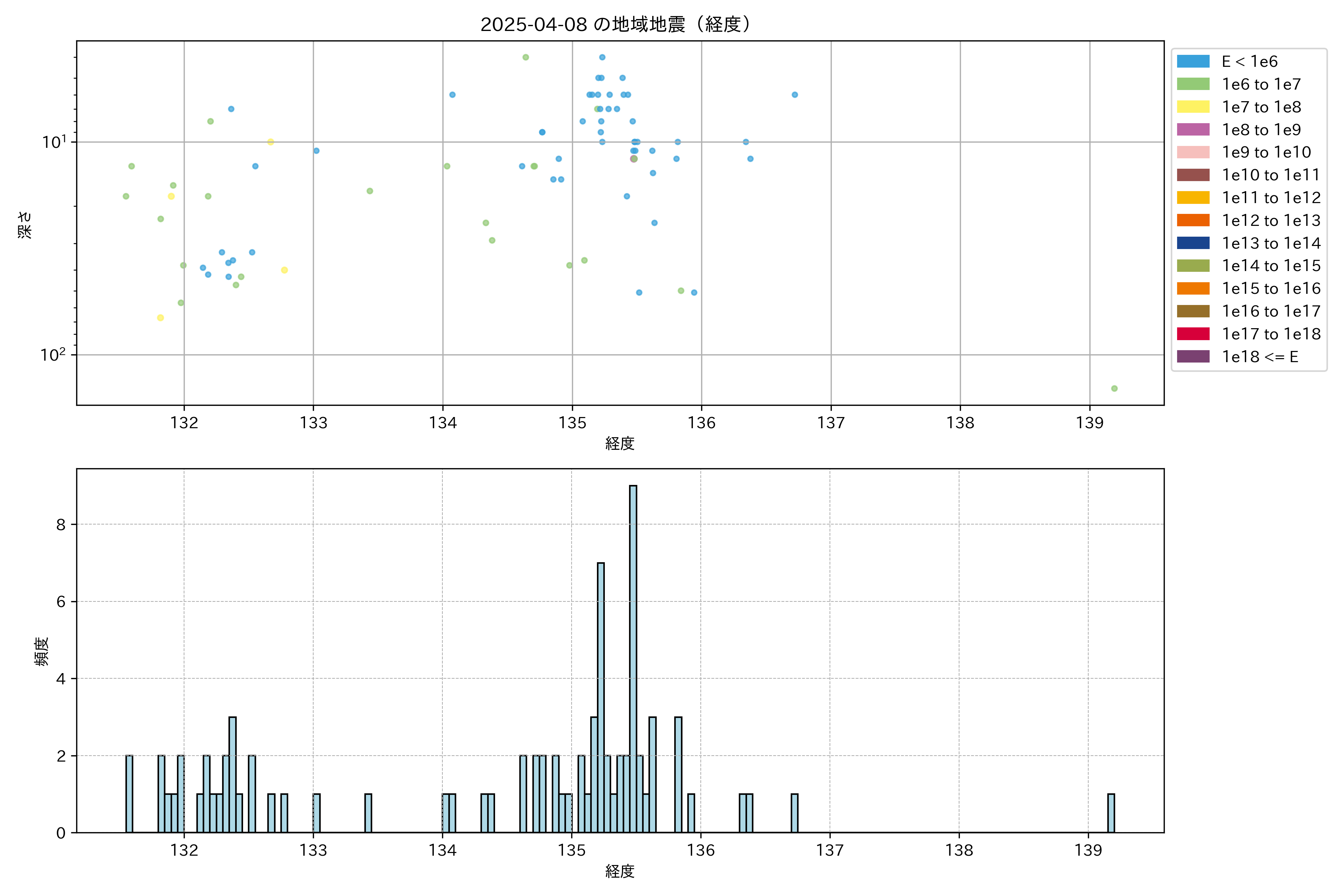 2025年04月08日近畿・中国・四国エリア震源マップ