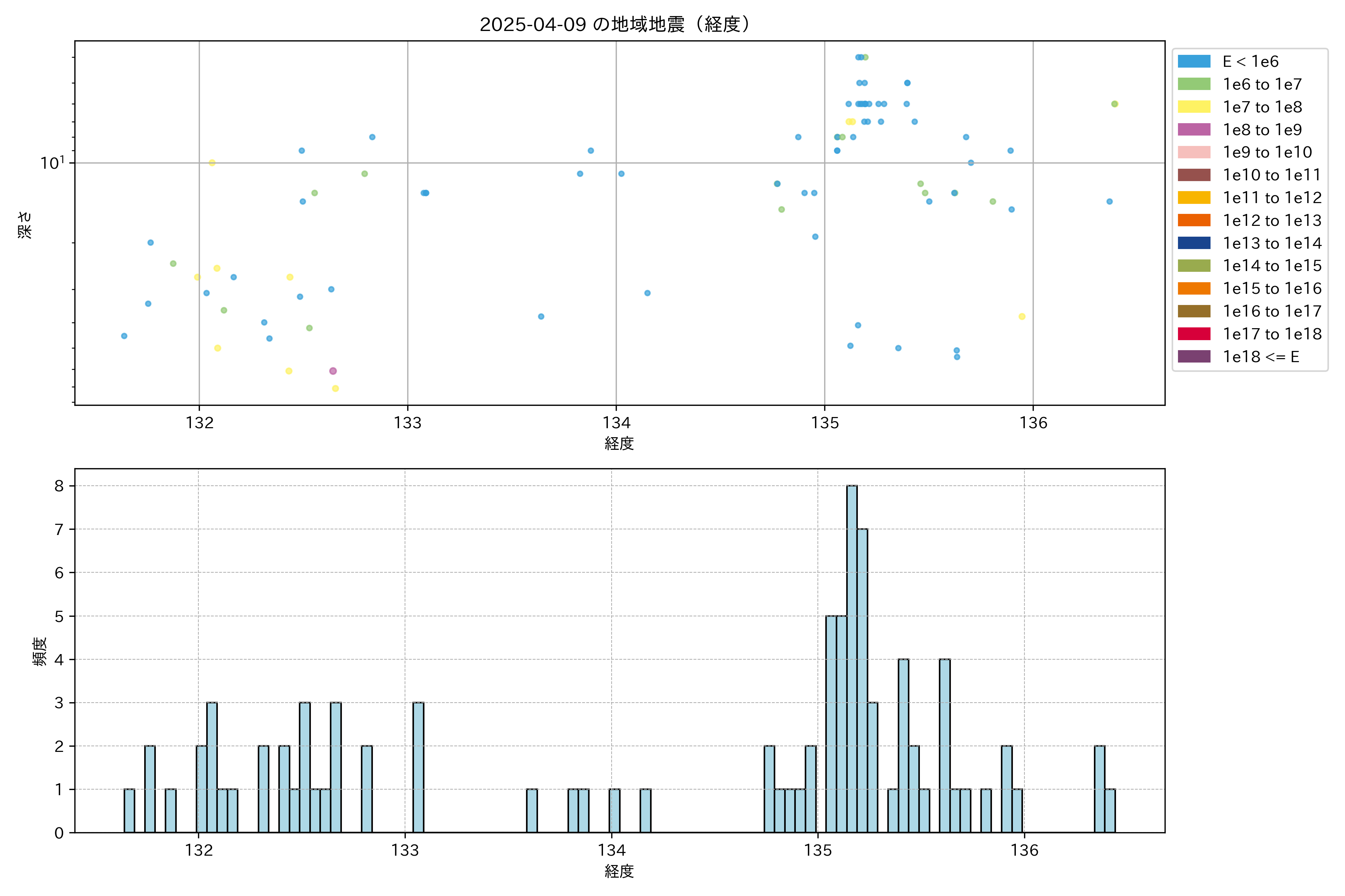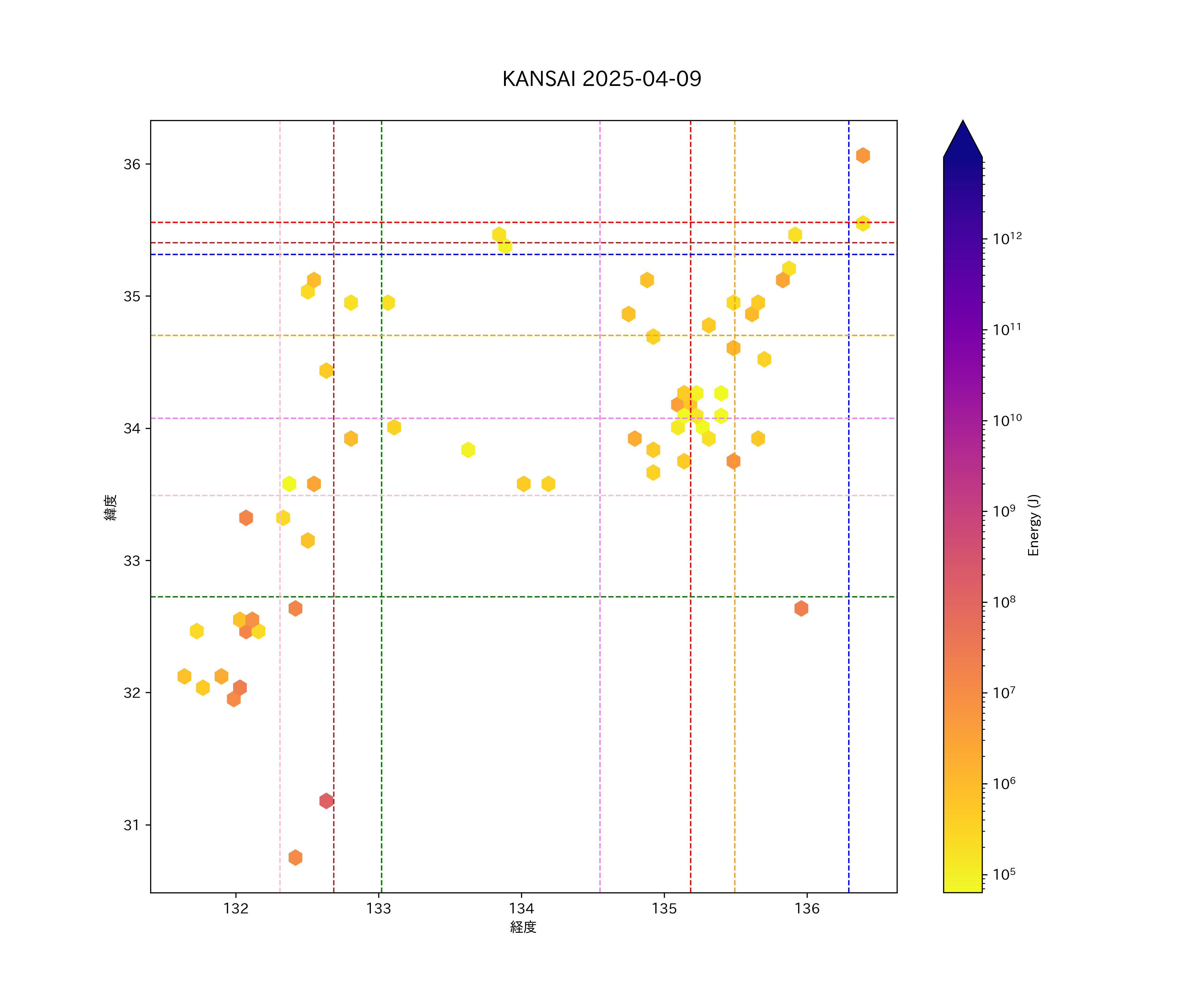 2025年04月09日近畿・中国・四国エリア震源マップ