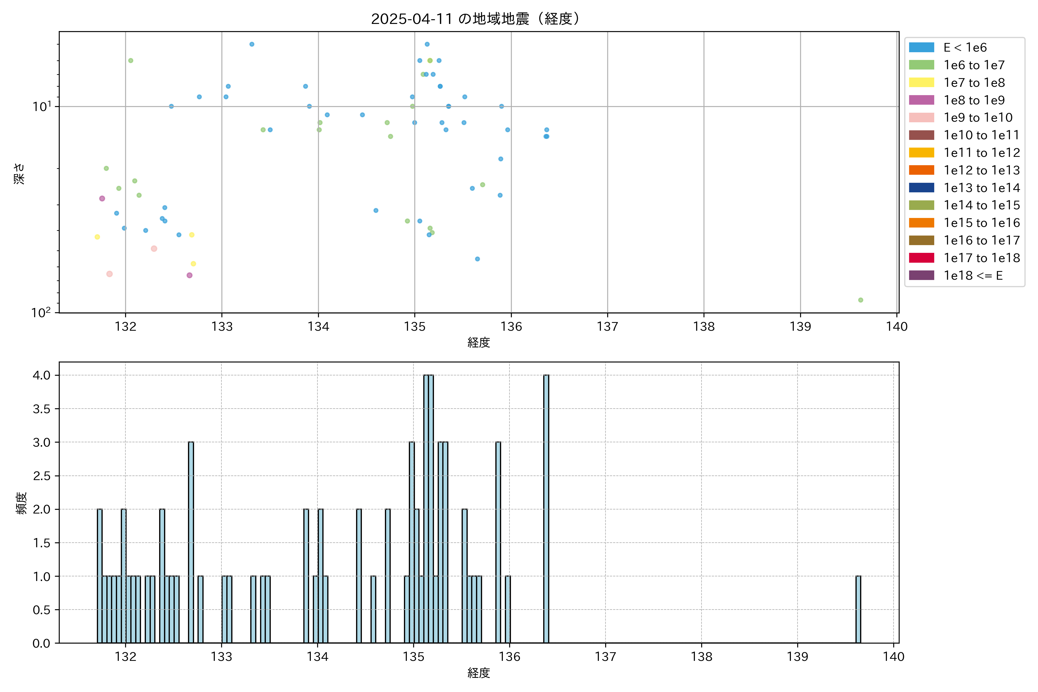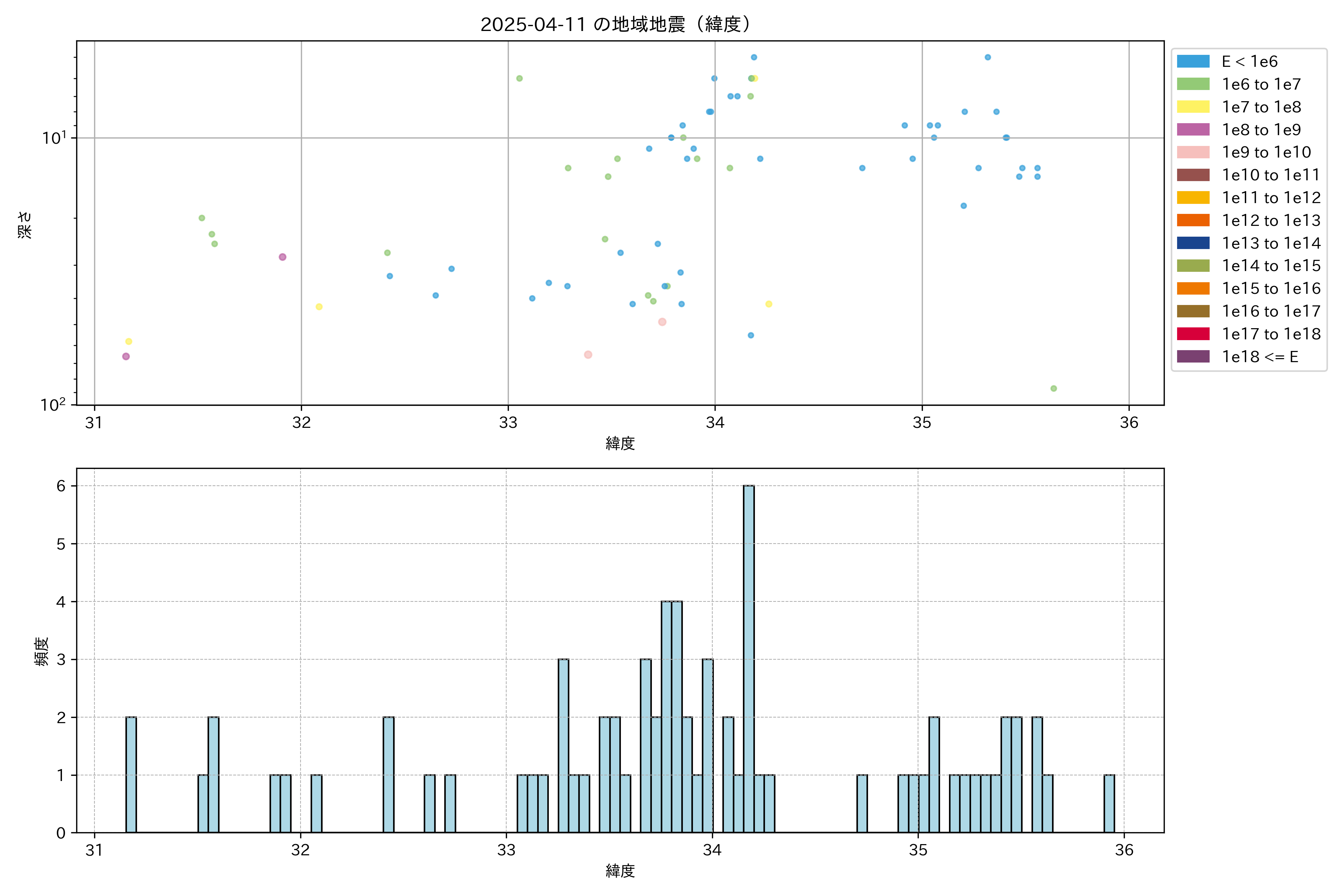 2025年04月11日近畿・中国・四国エリア震源マップ
