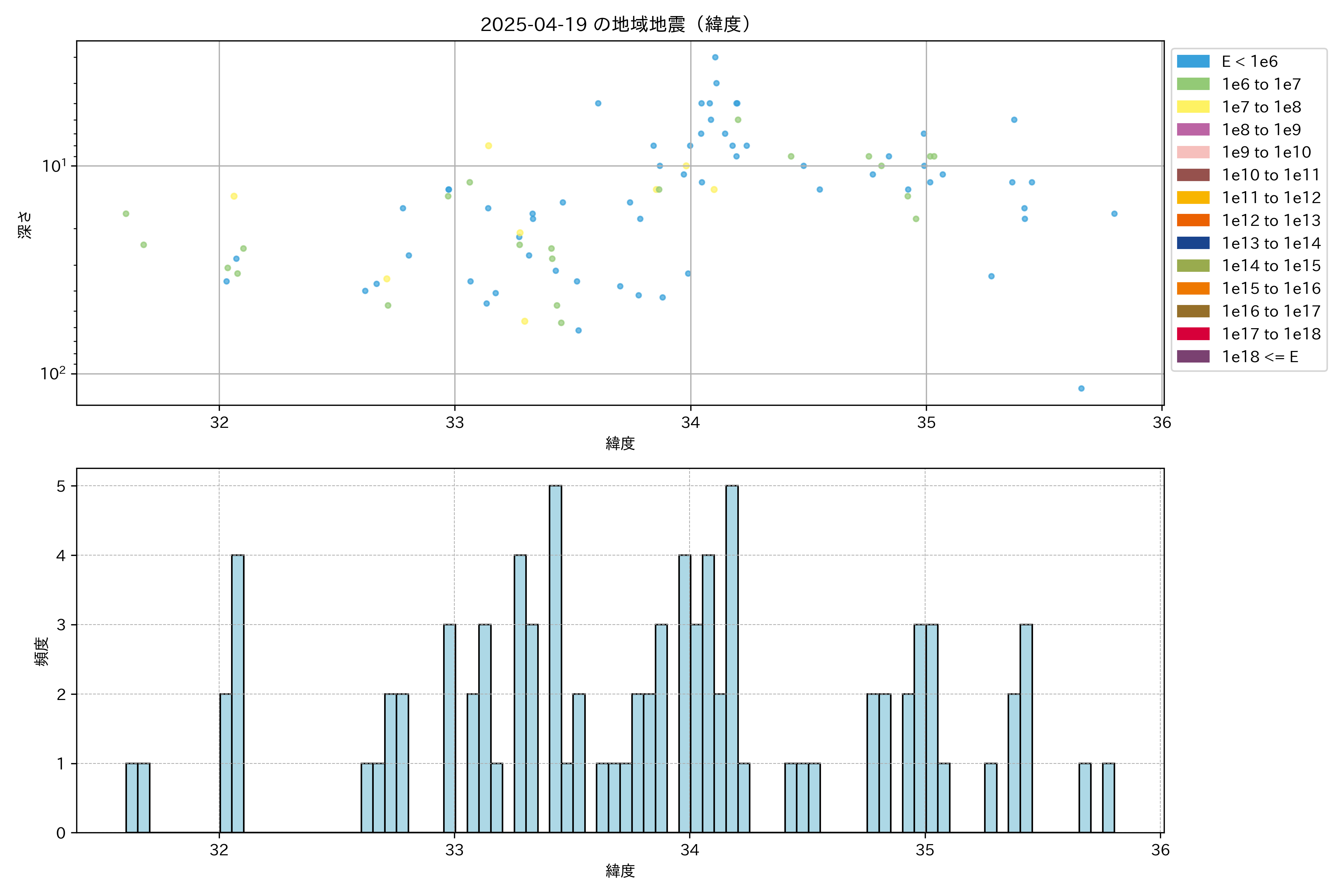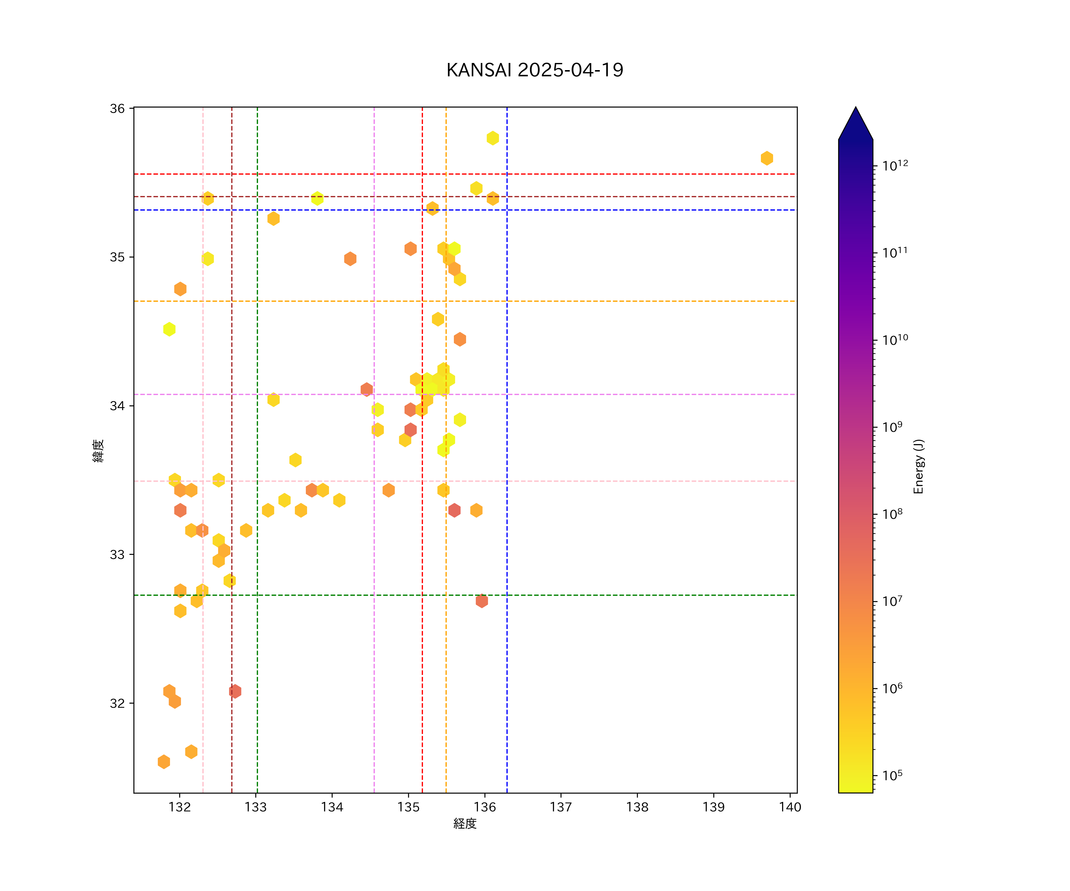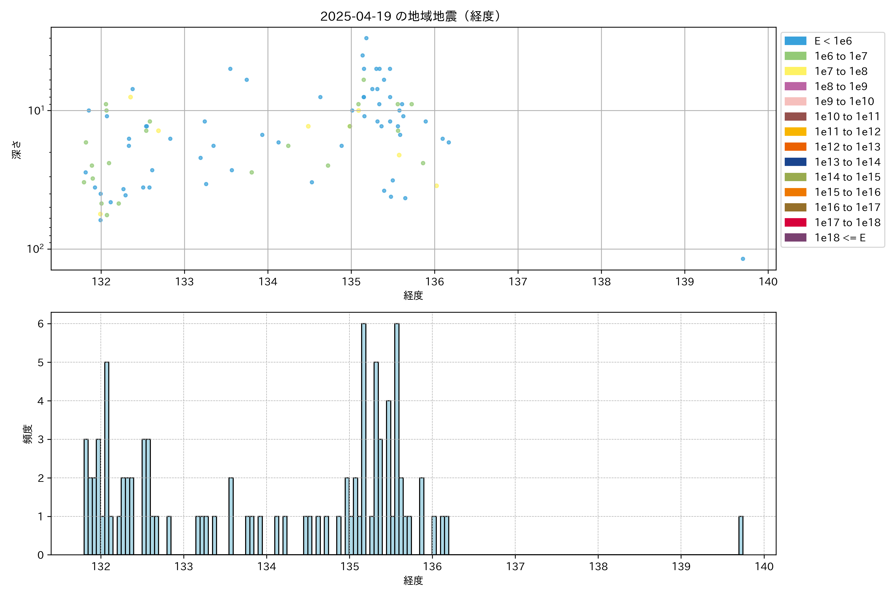 2025年04月19日近畿・中国・四国エリア震源マップ