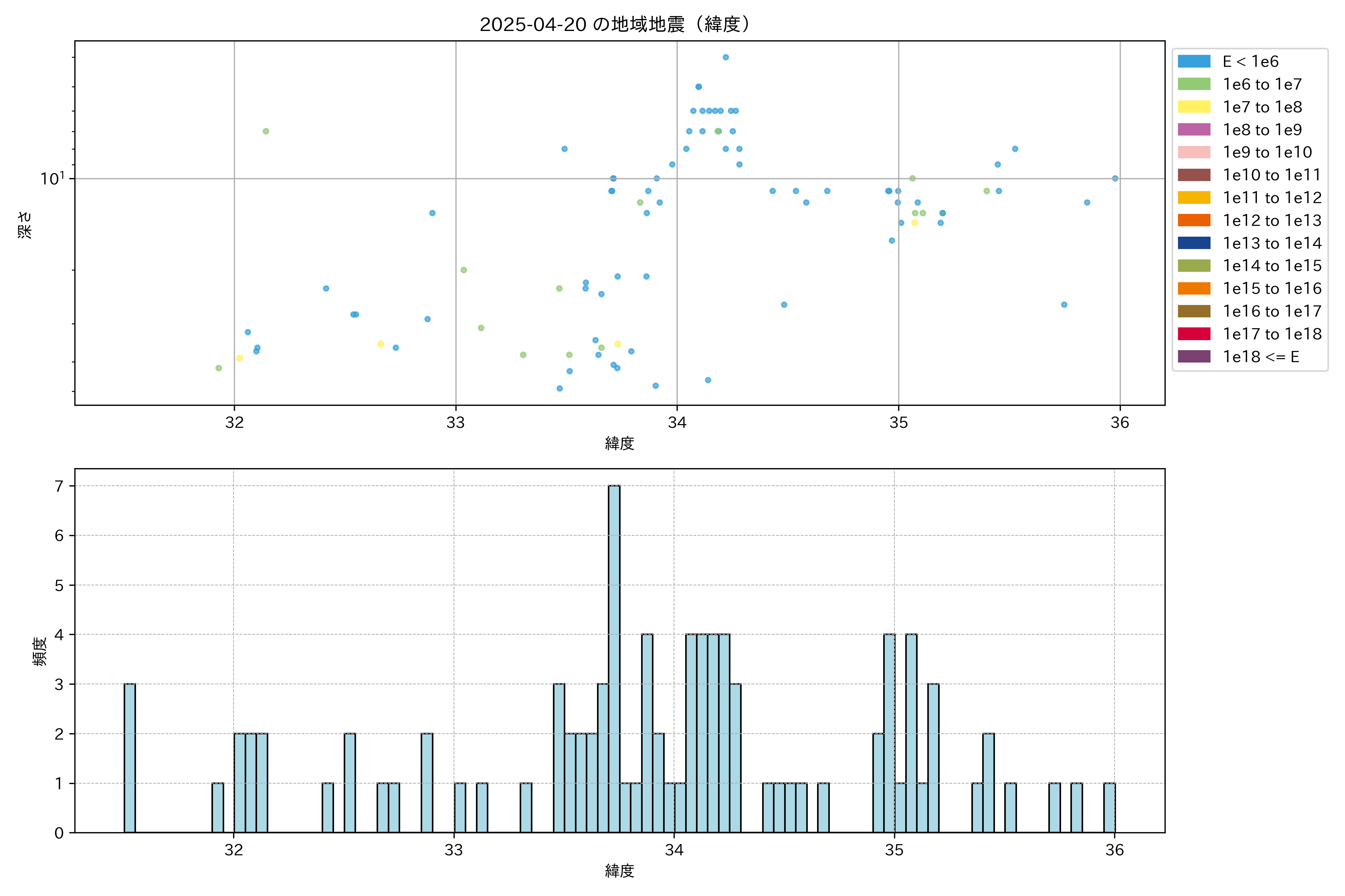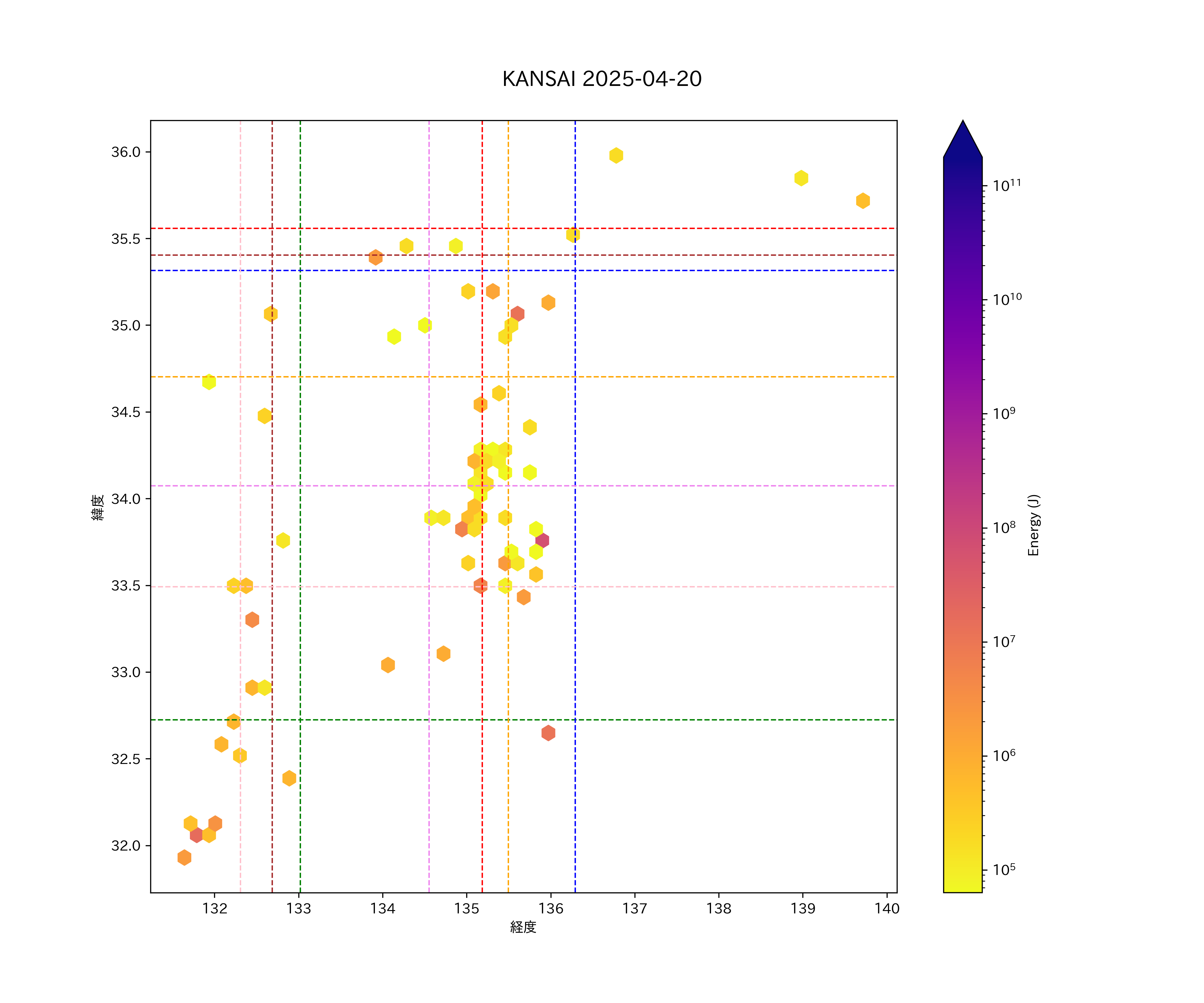 2025年04月20日近畿・中国・四国エリア震源マップ