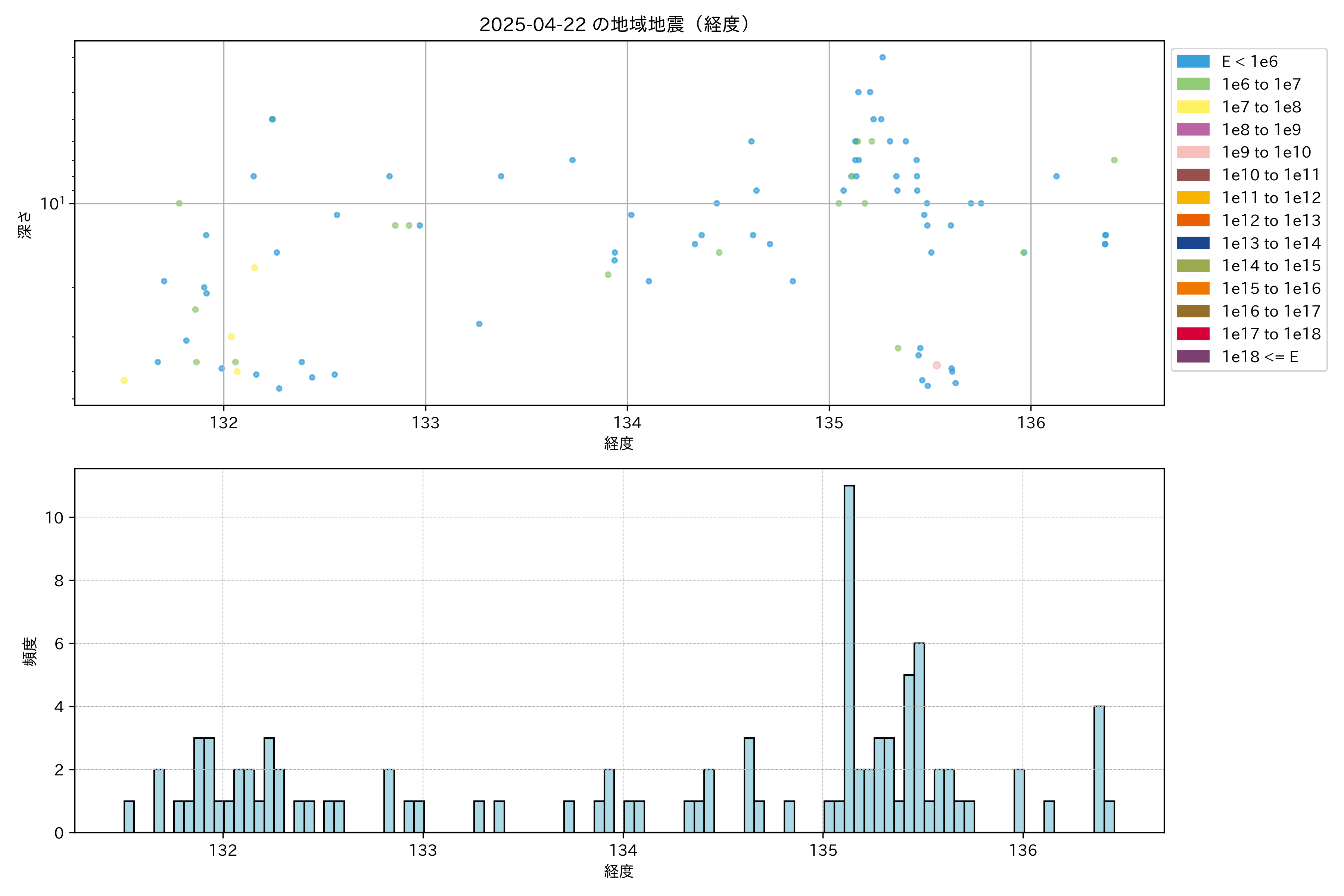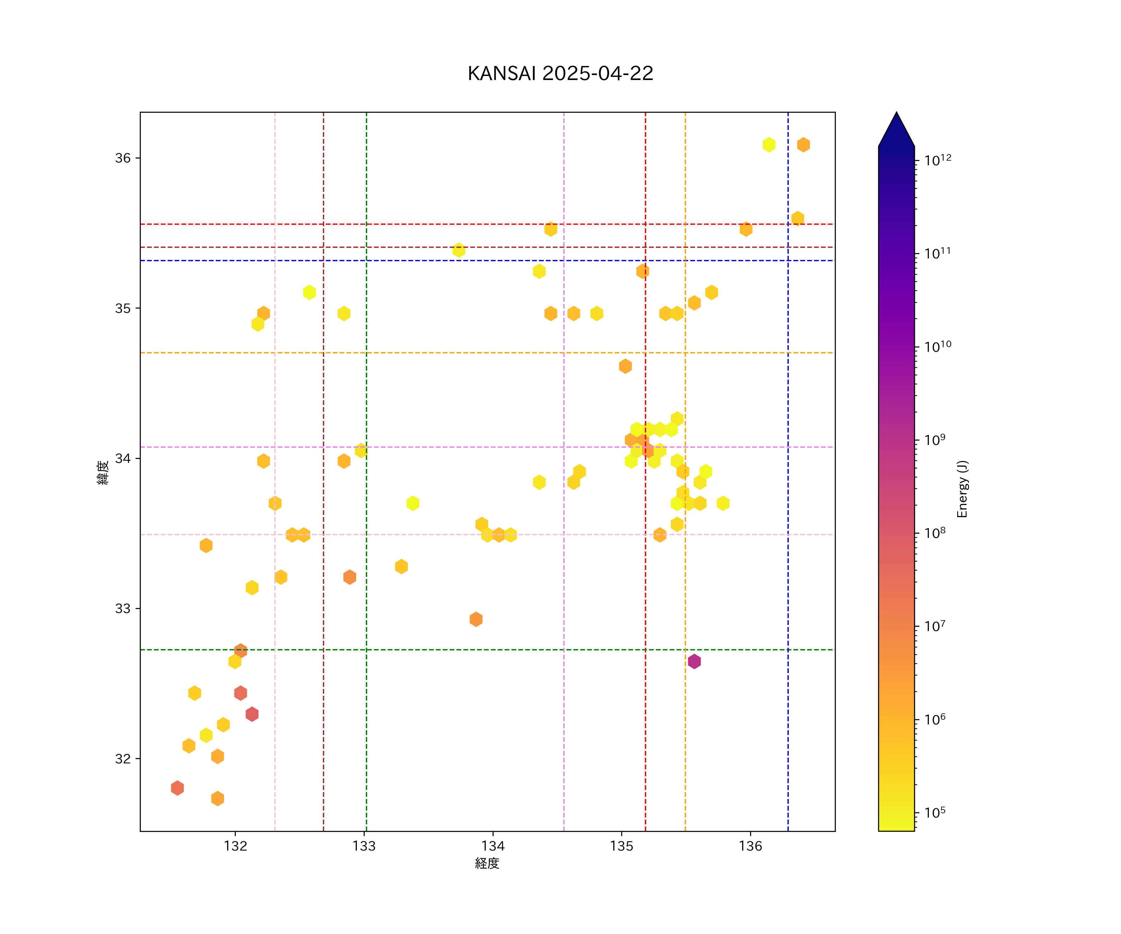 2025年04月22日近畿・中国・四国エリア震源マップ