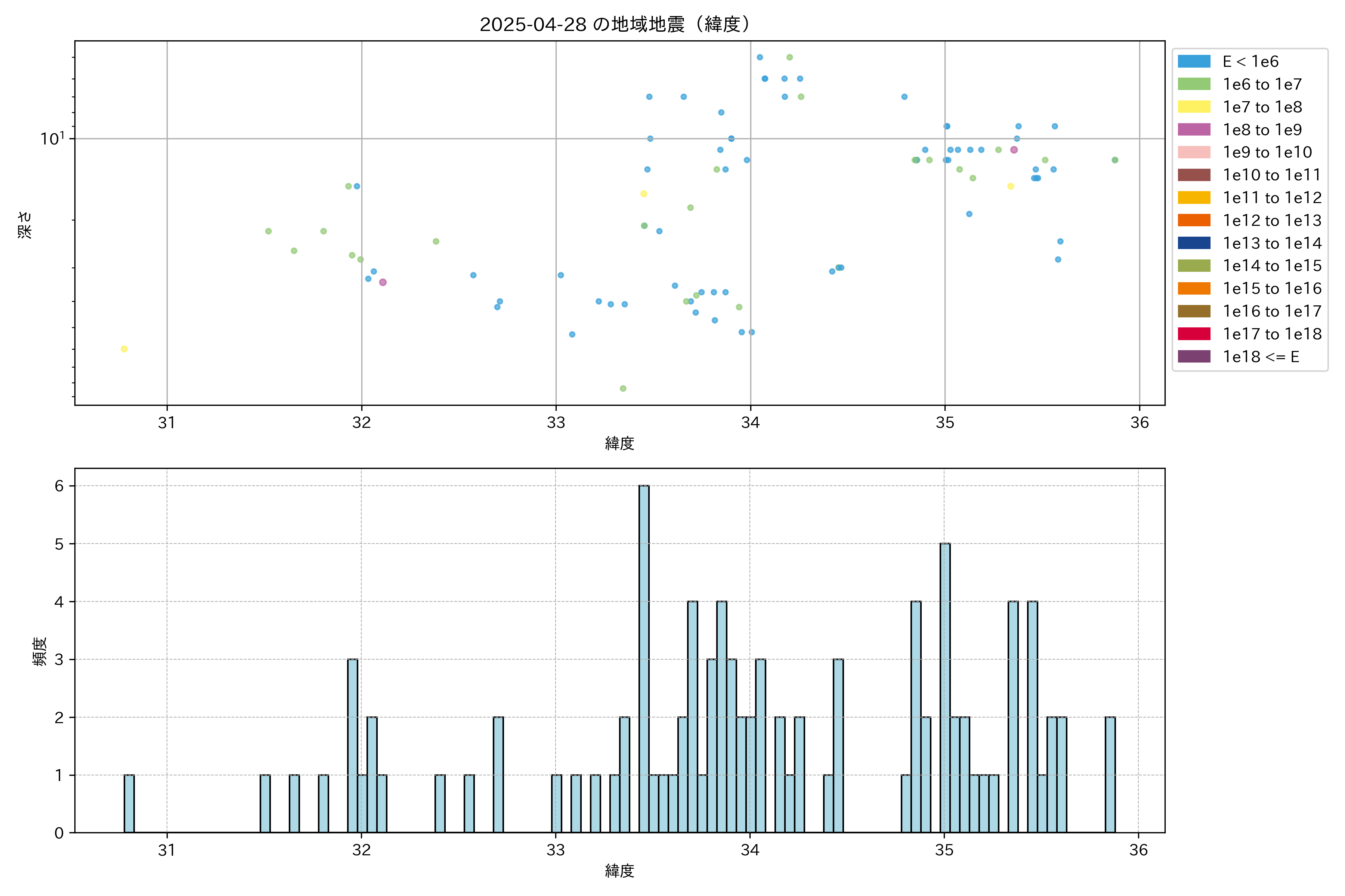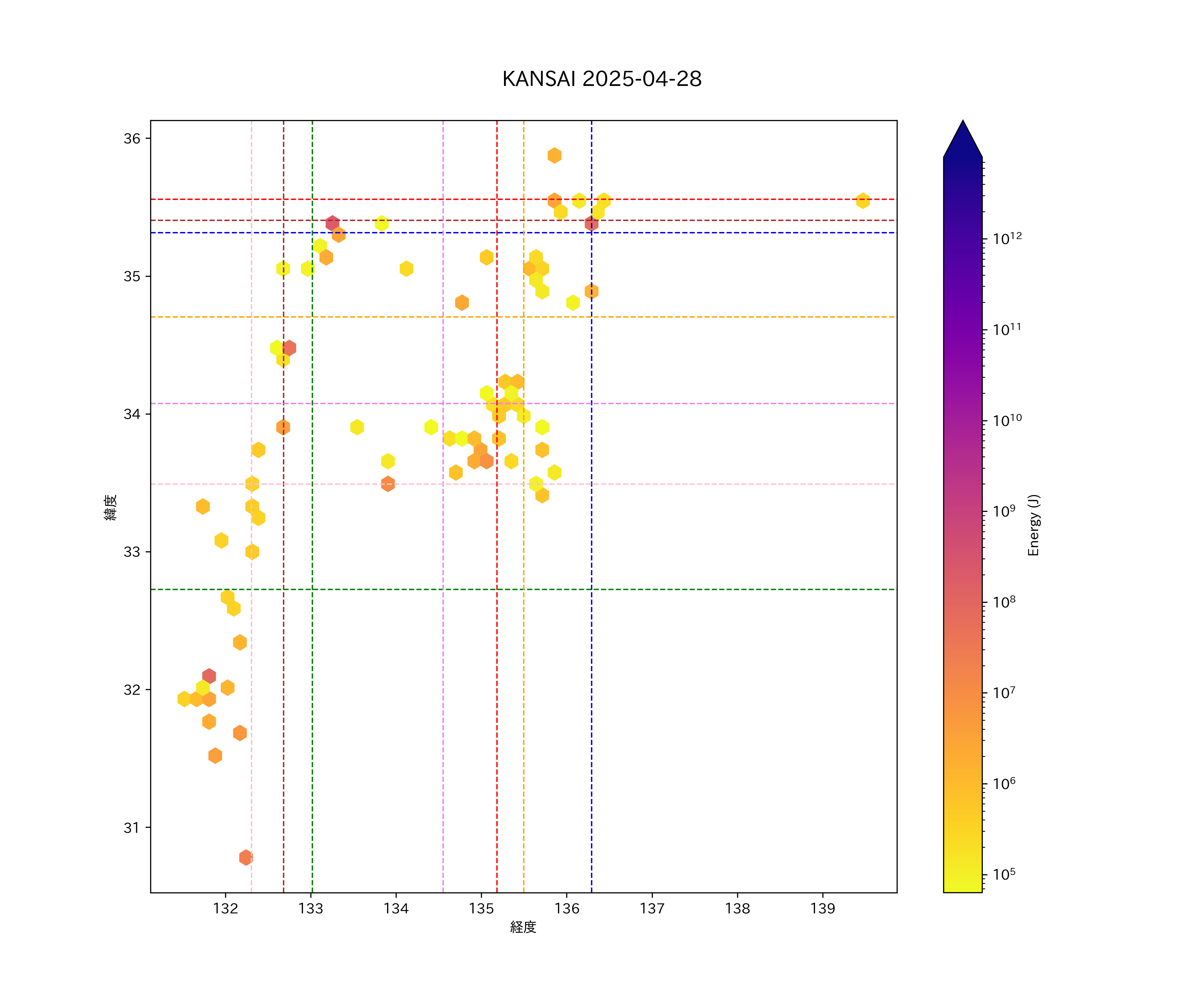 2025年04月28日近畿・中国・四国エリア震源マップ