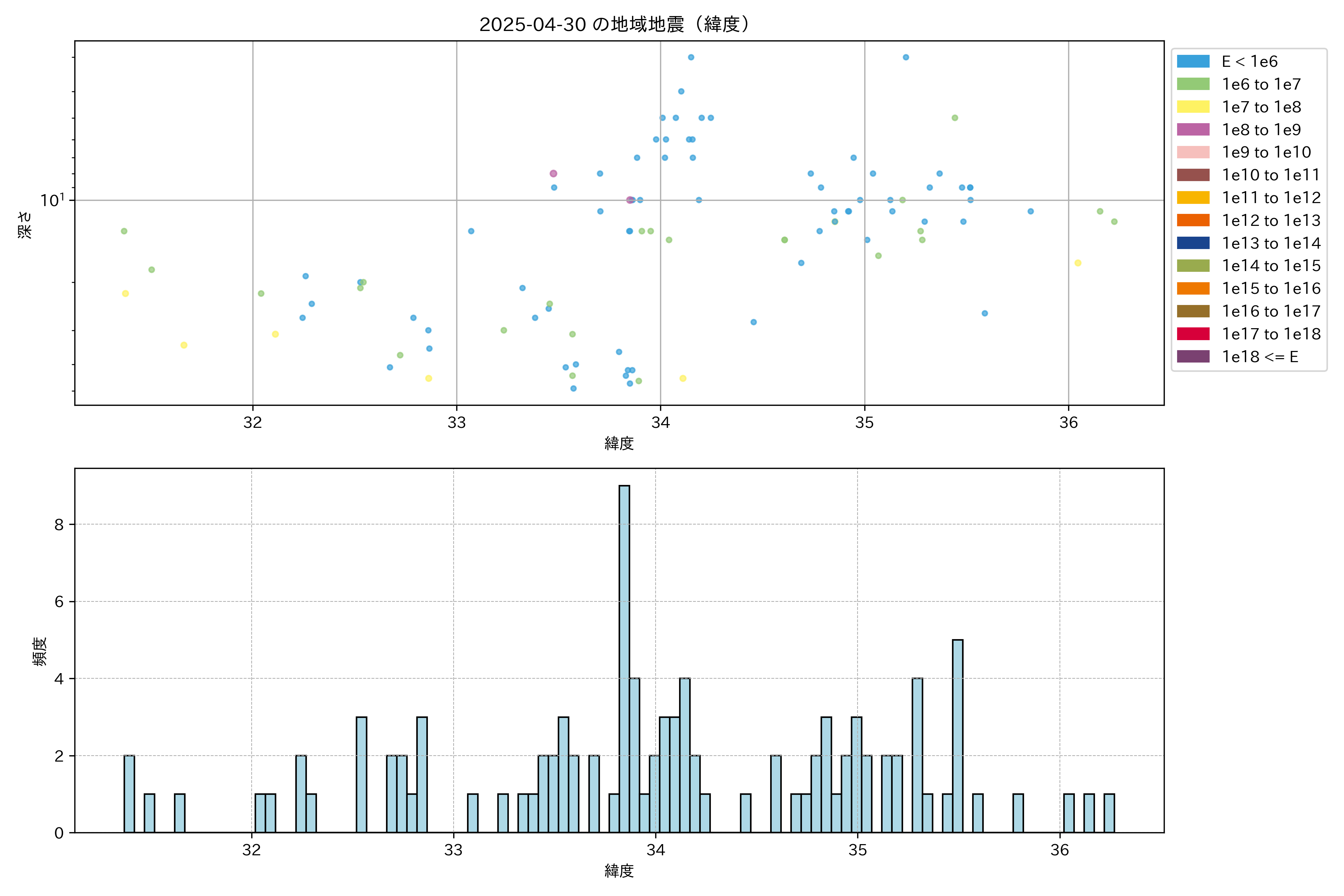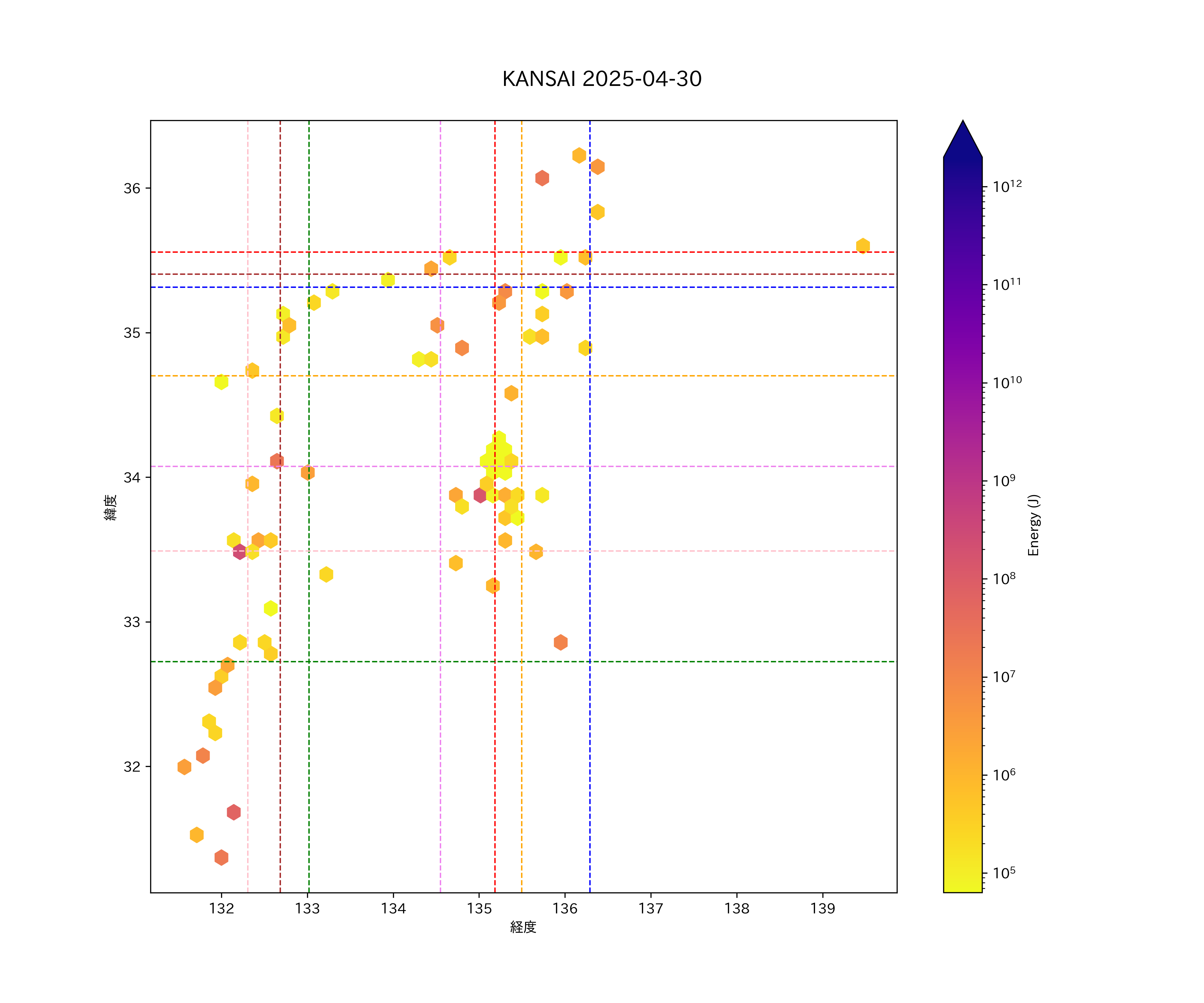 2025年04月30日近畿・中国・四国エリア震源マップ