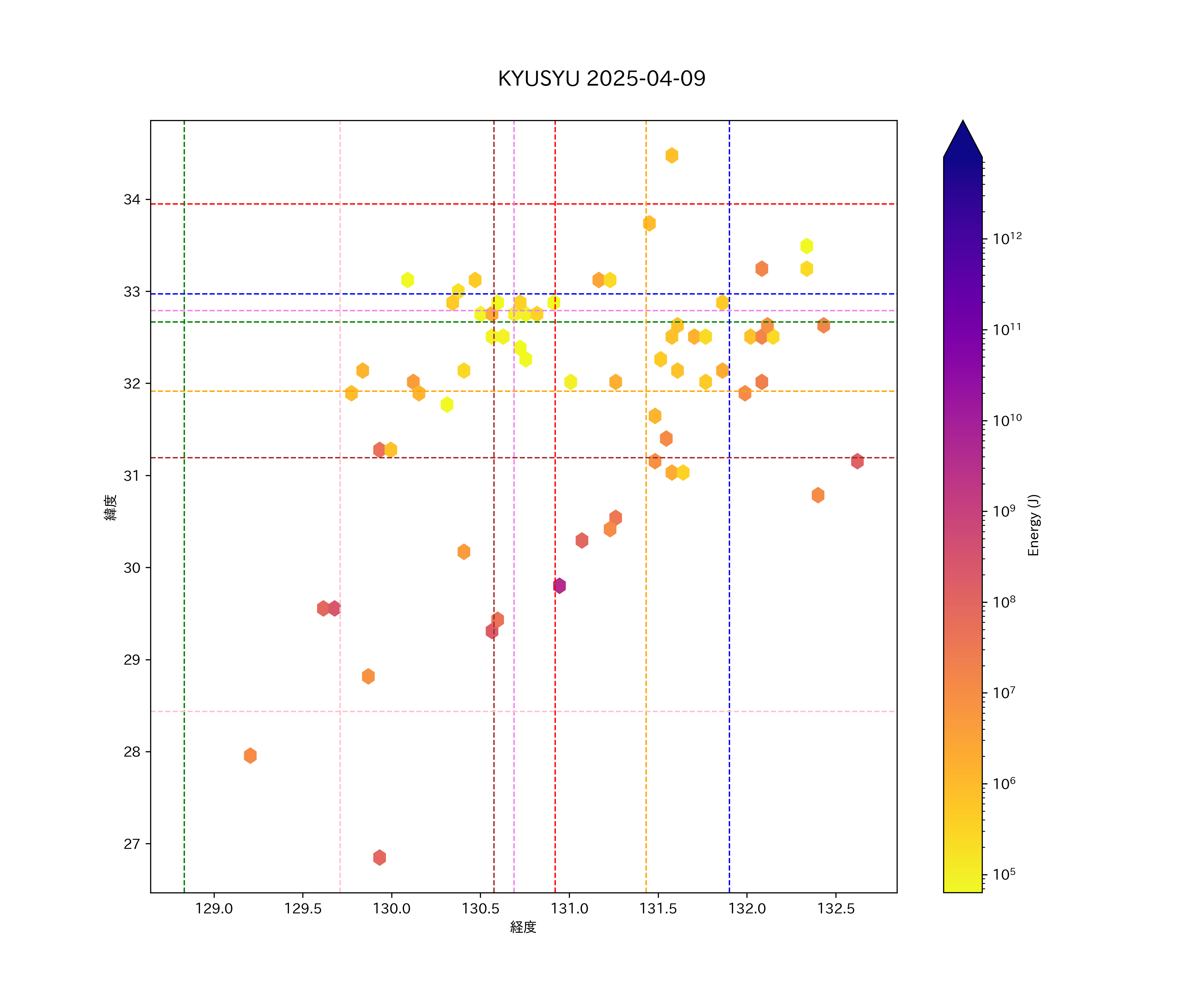 2025年04月09日九州エリア震源マップ