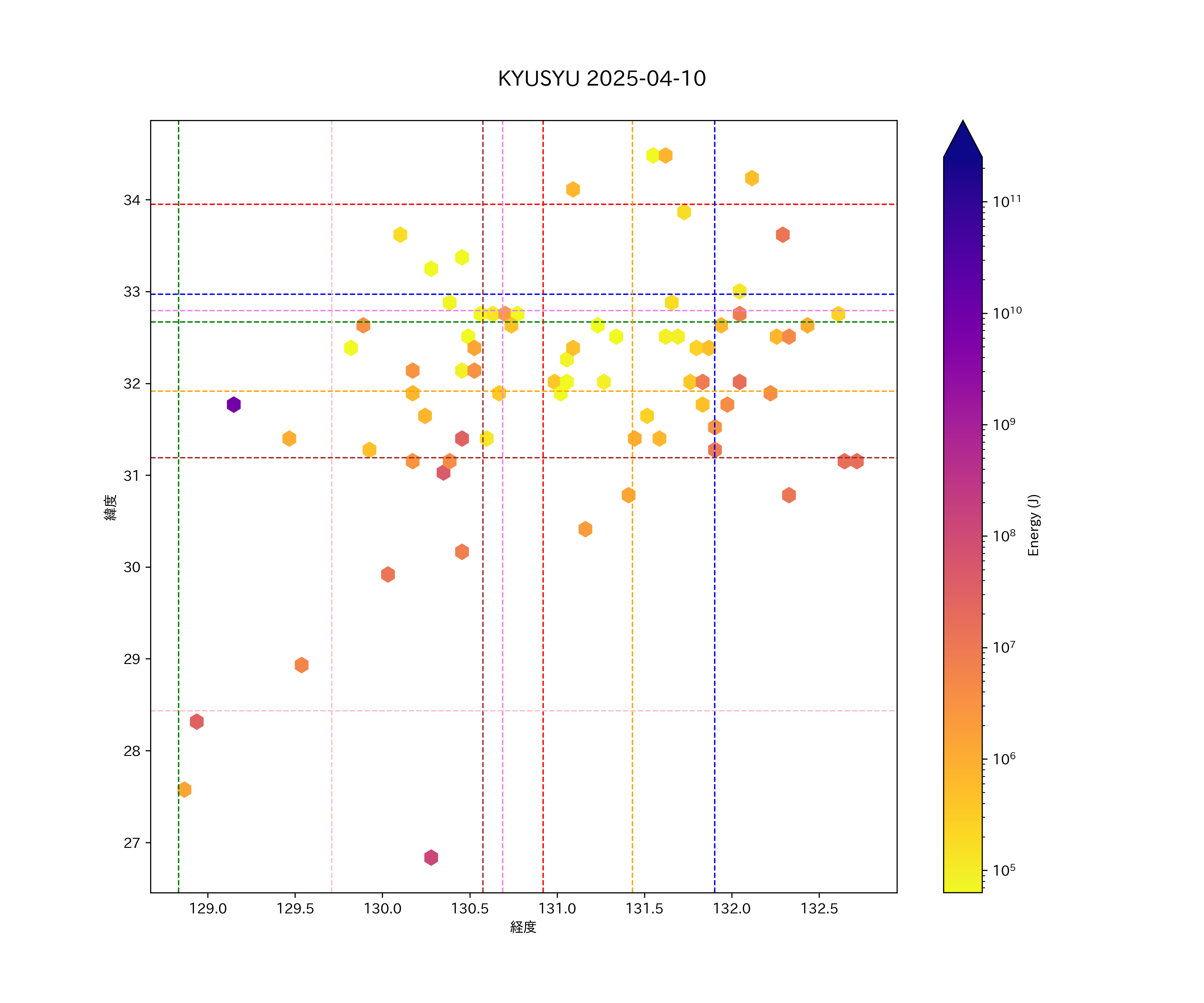 2025年04月10日九州エリア震源マップ