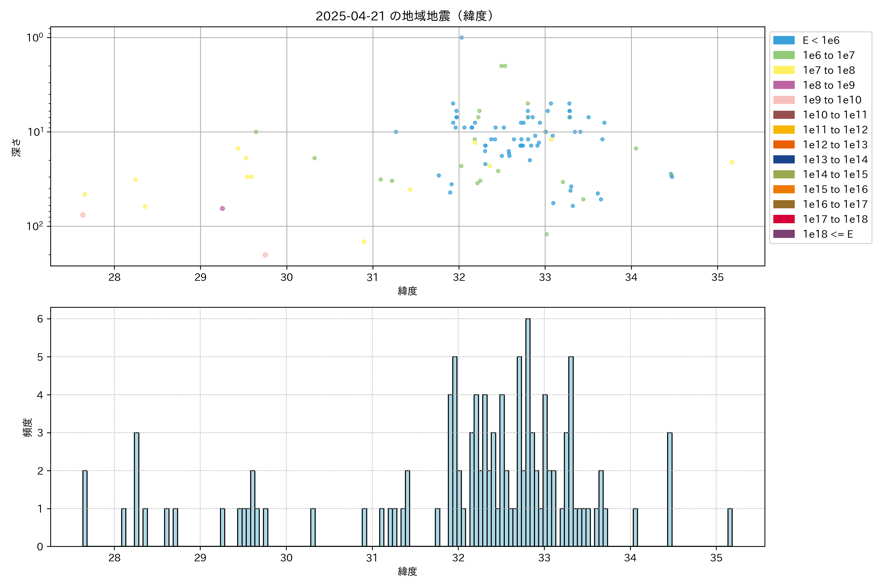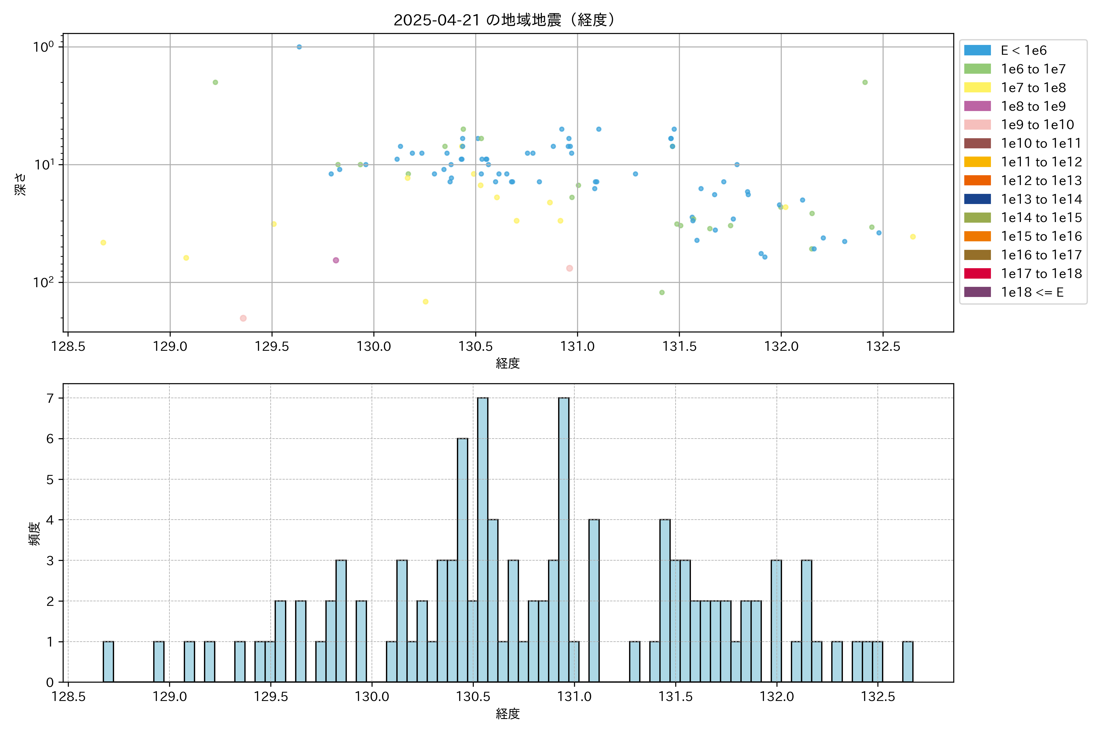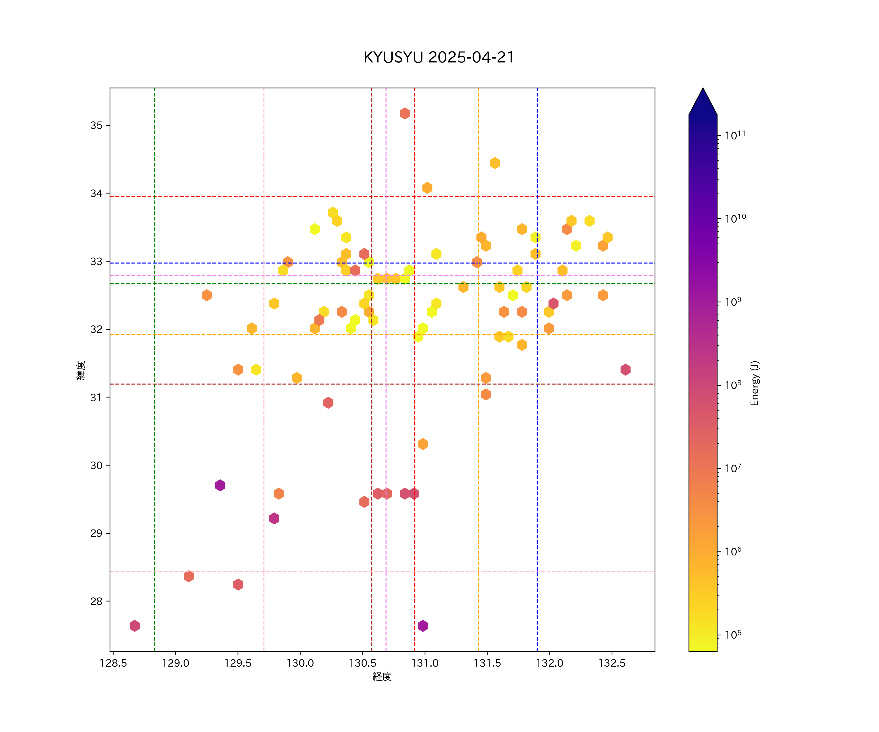 2025年04月21日九州エリア震源マップ