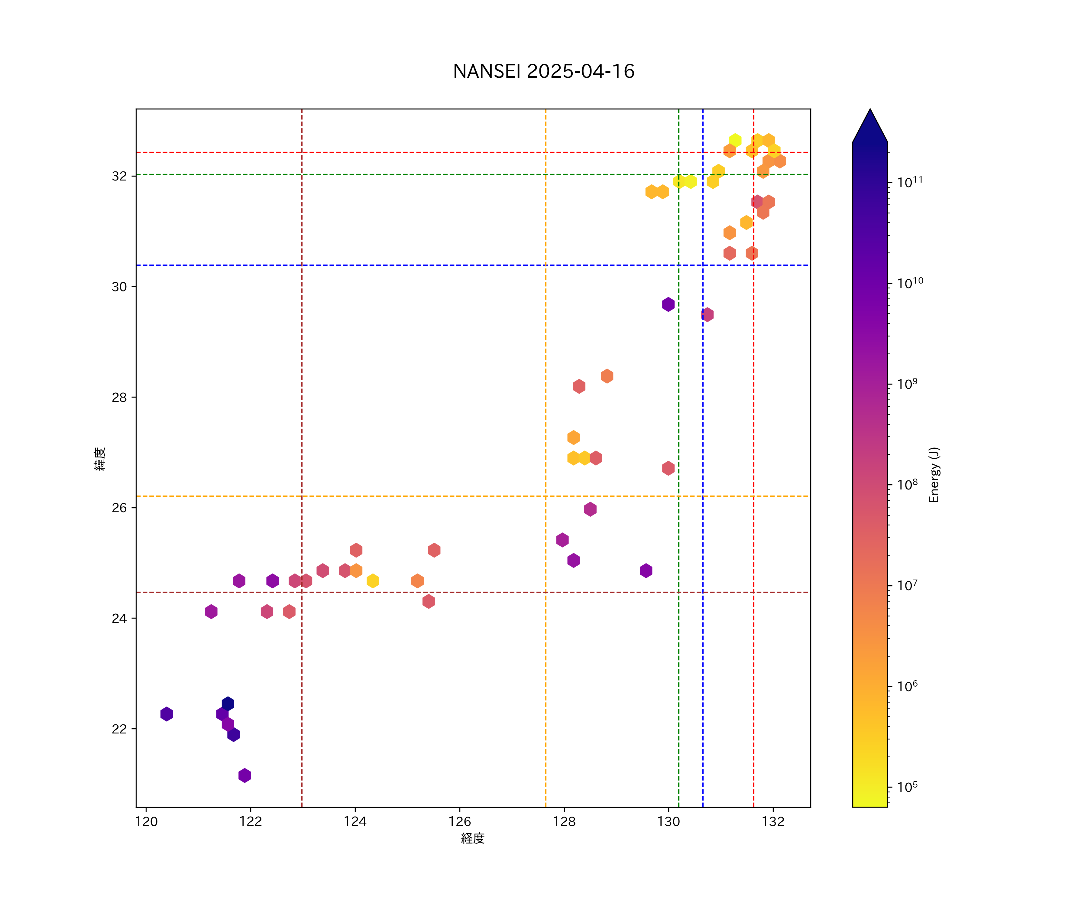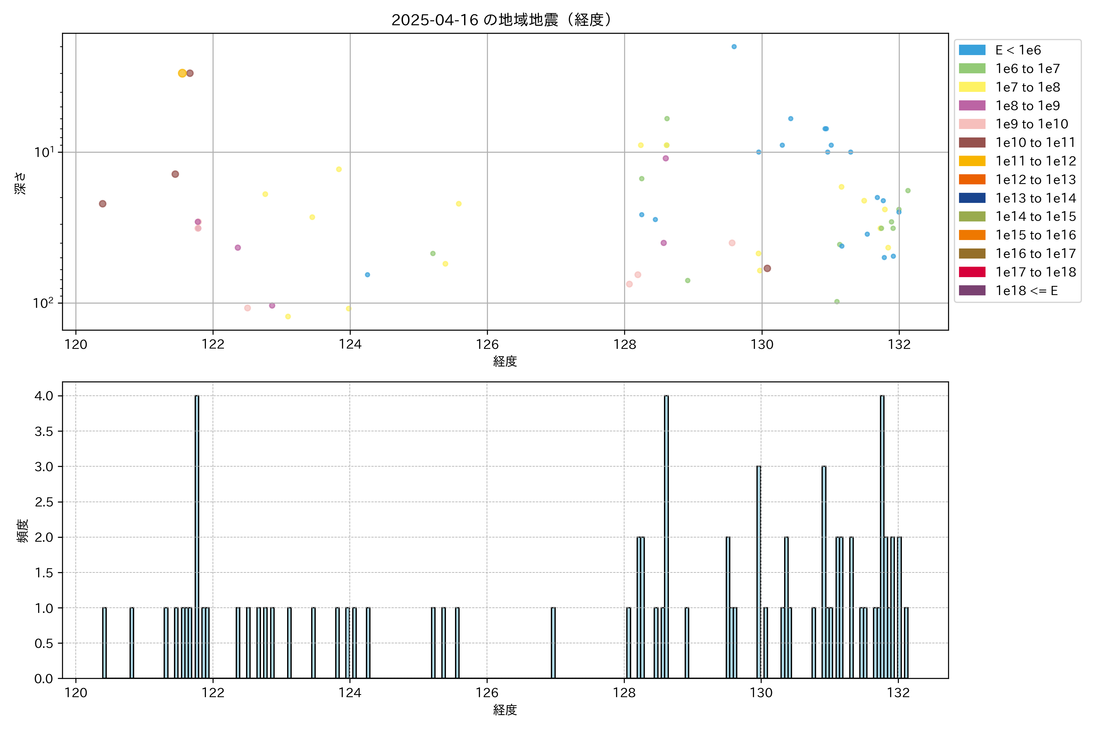 2025年04月16日南西諸島エリア震源マップ