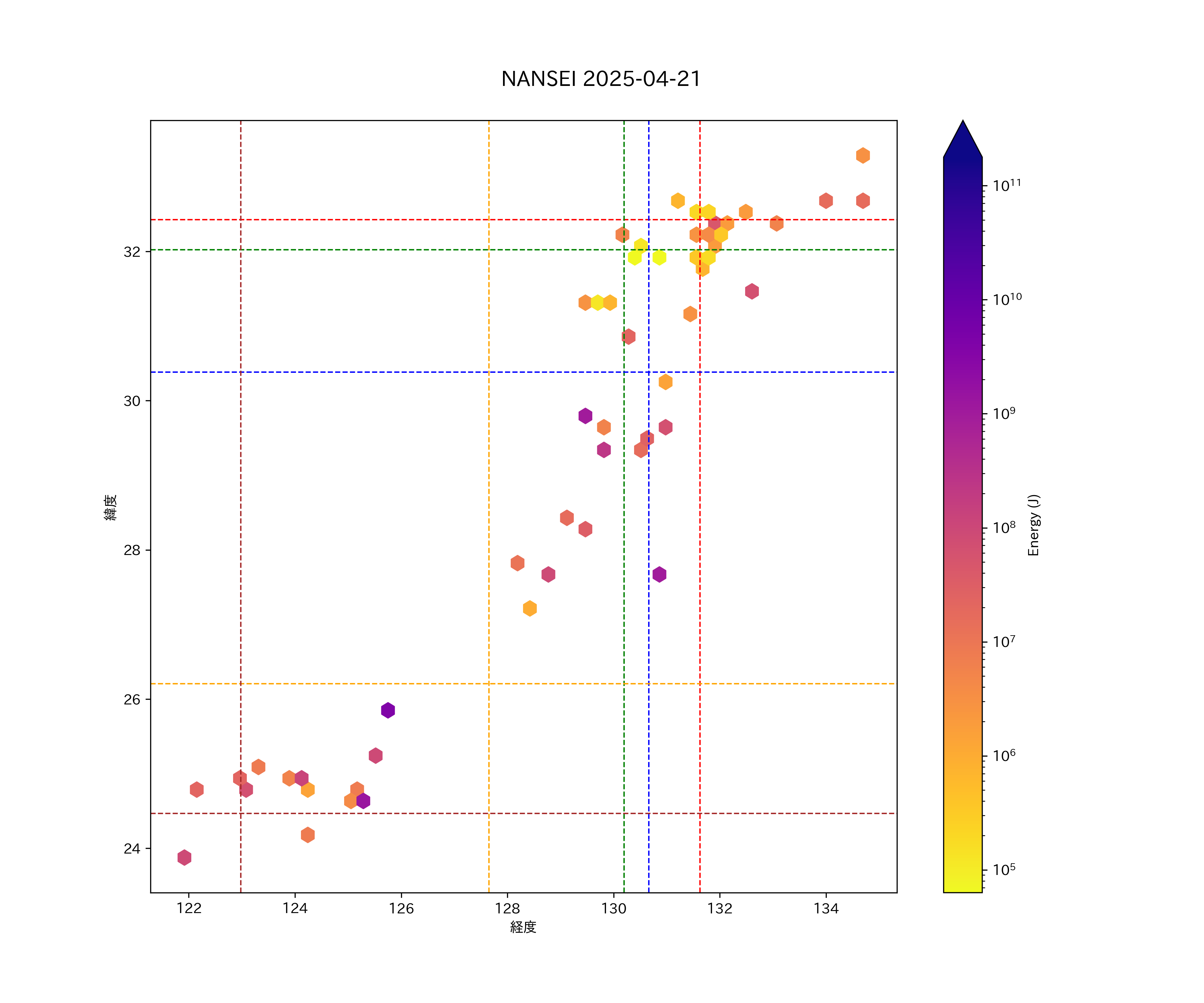 2025年04月21日南西諸島エリア震源マップ