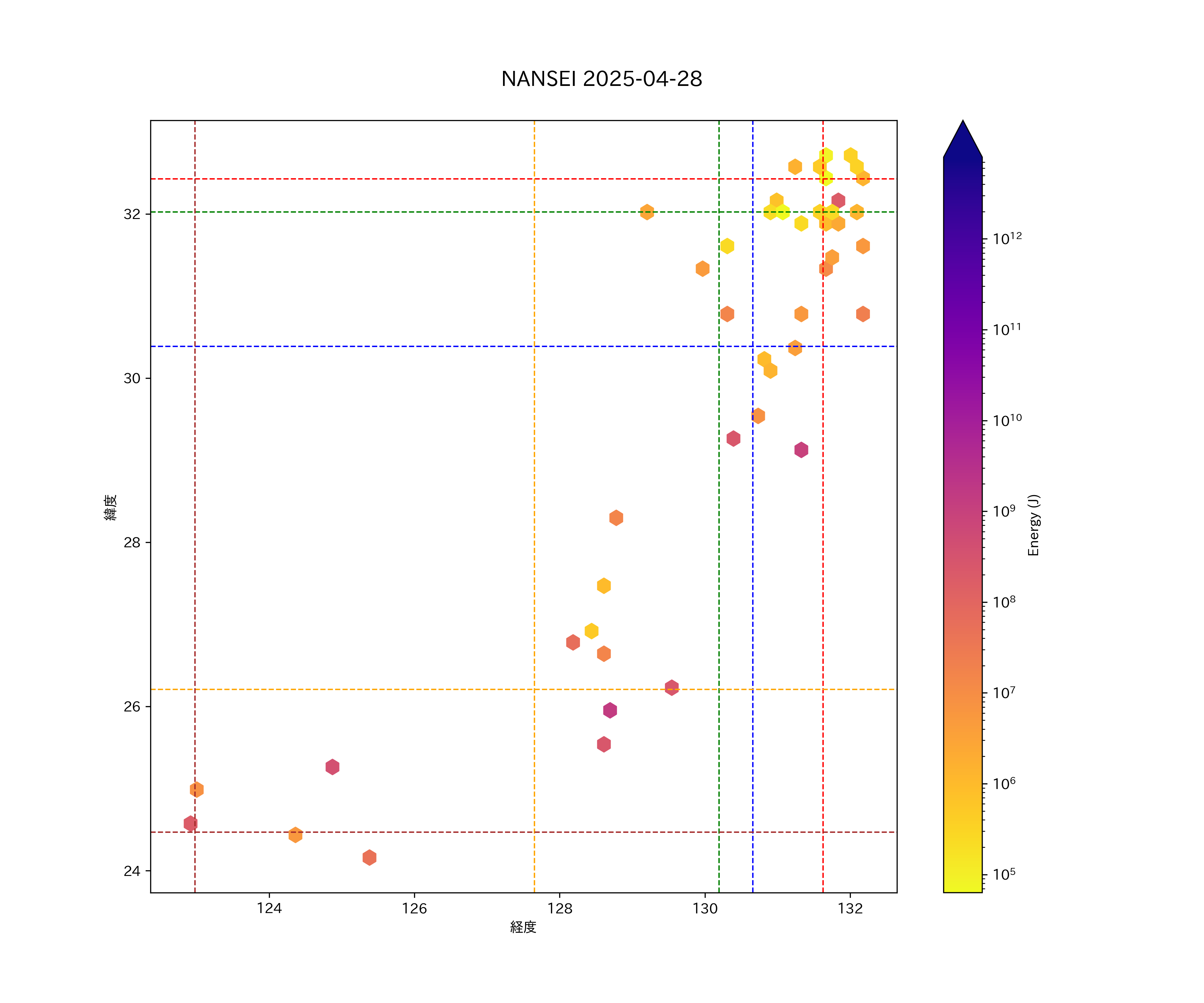 2025年04月28日南西諸島エリア震源マップ