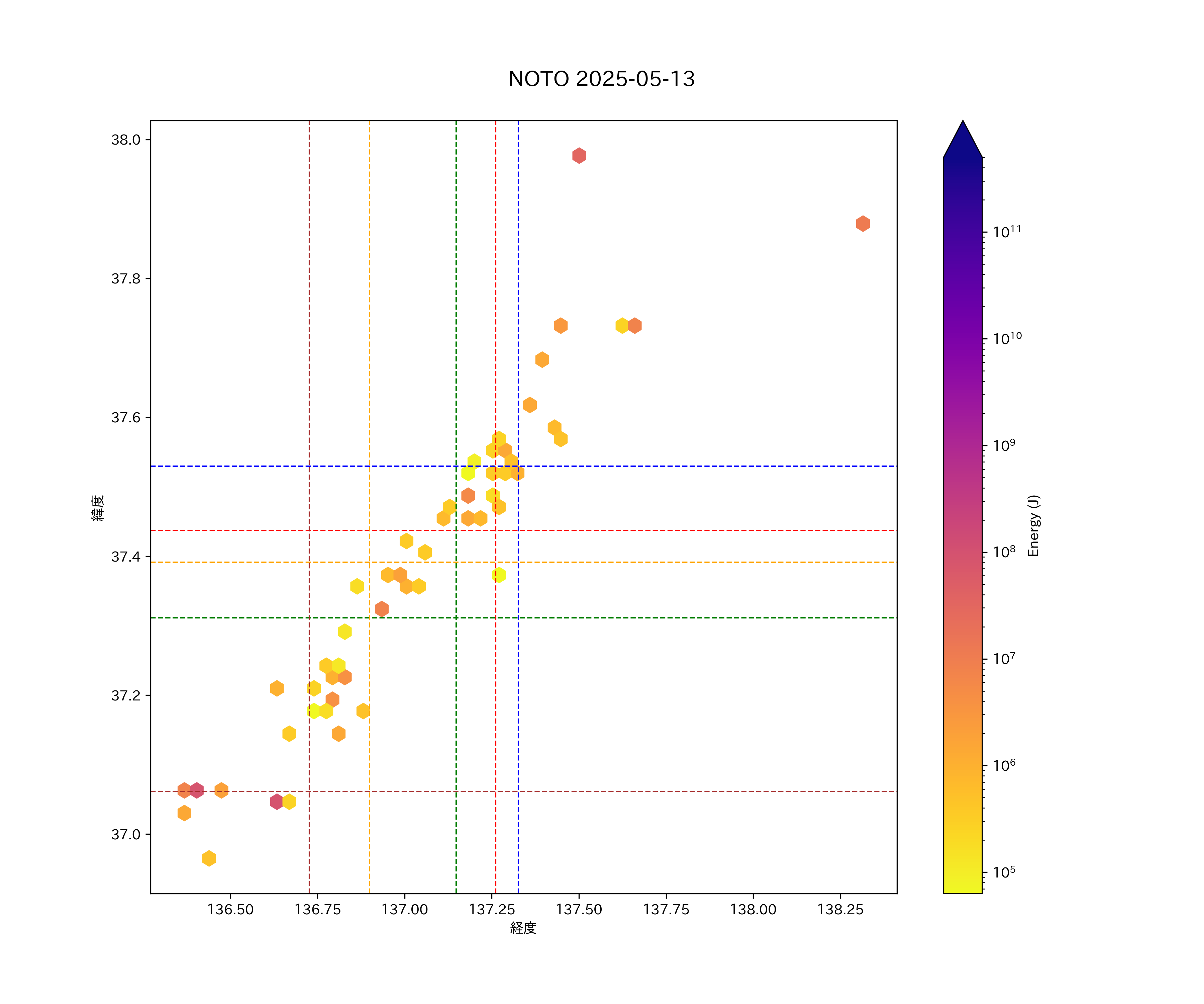 2025年05月13日能登エリア震源マップ