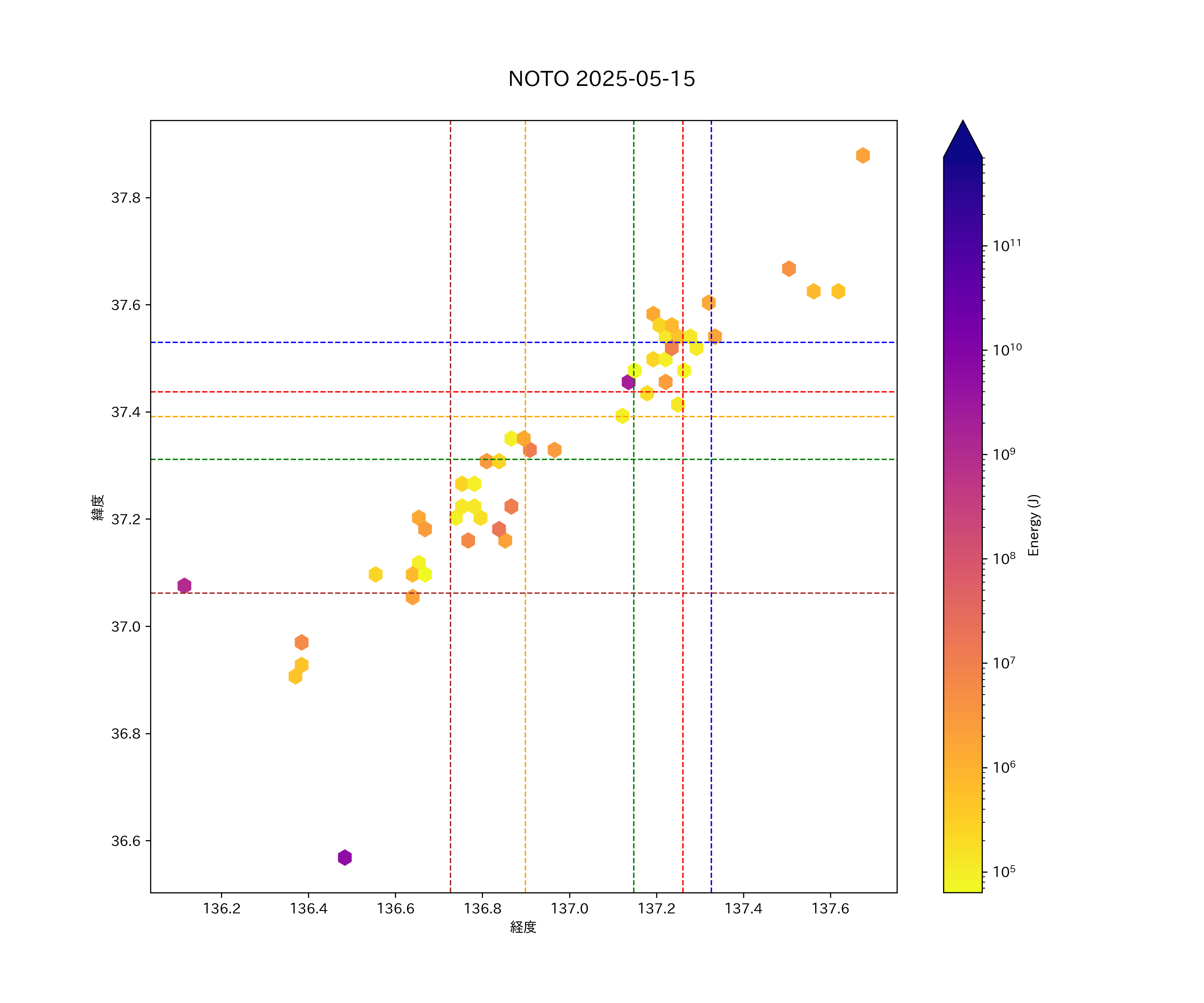 2025年05月15日能登エリア震源マップ