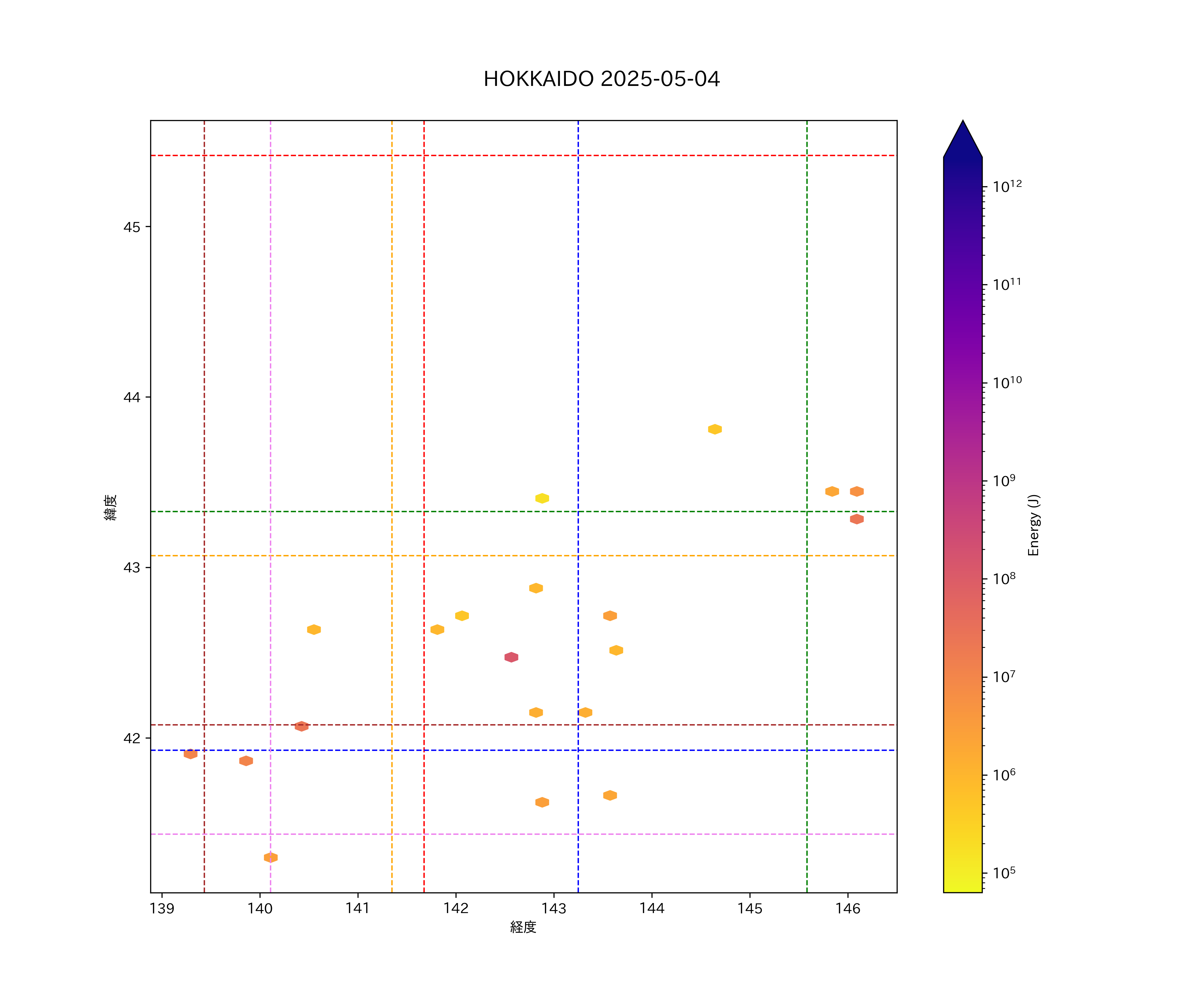 2025年05月04日北海道エリア震源マップ