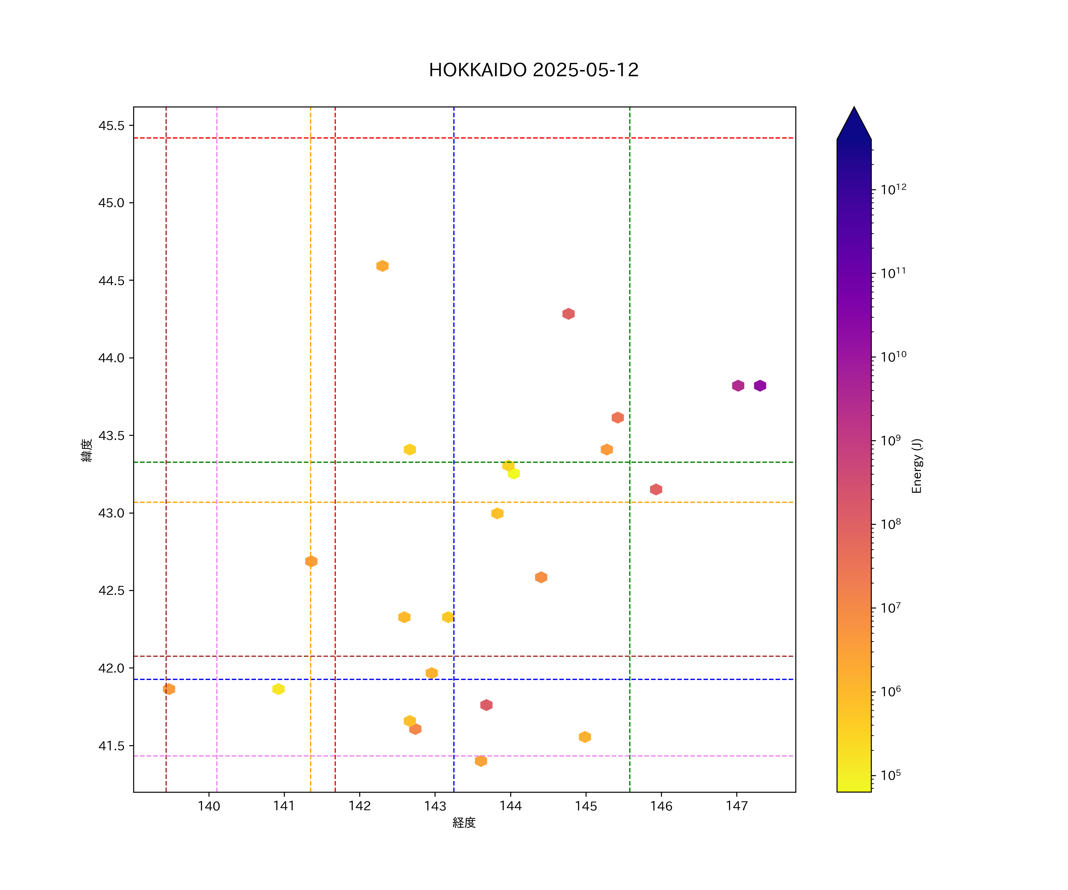 2025年05月12日北海道エリア震源マップ