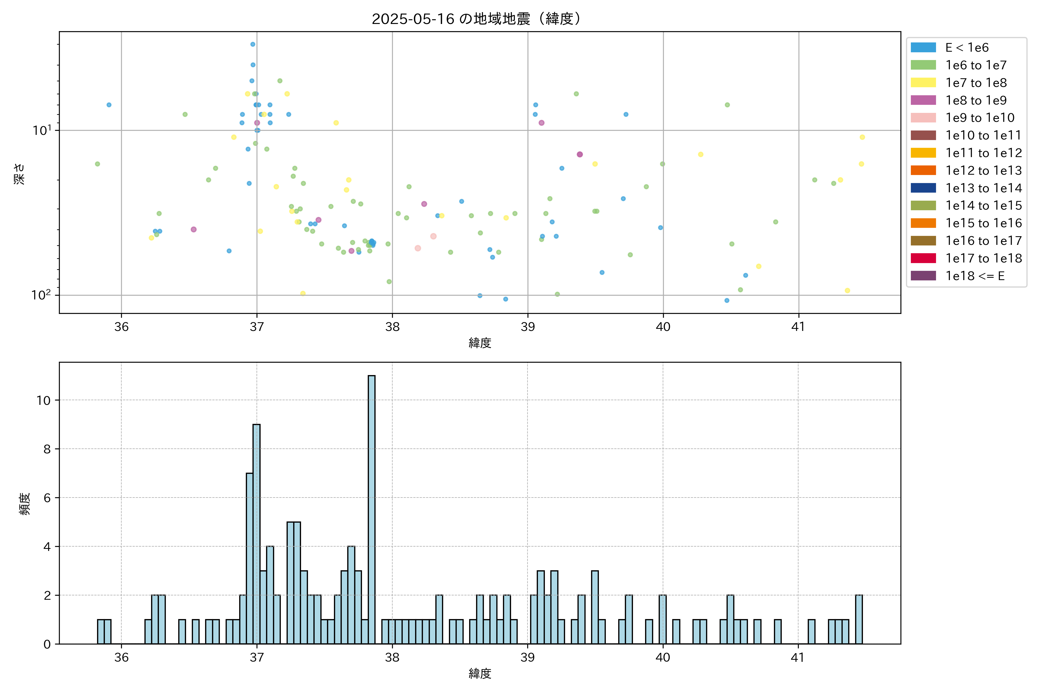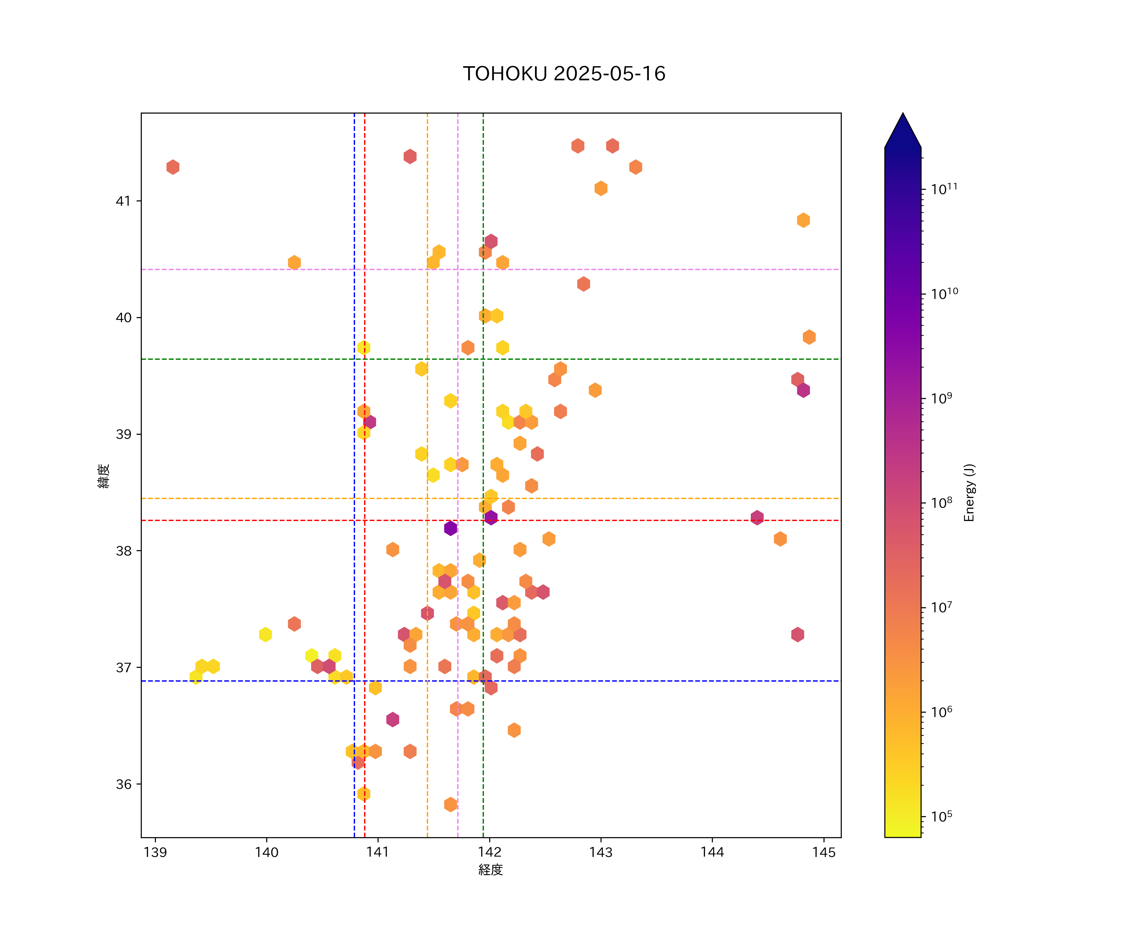 2025年05月16日東北太平洋側エリア震源マップ