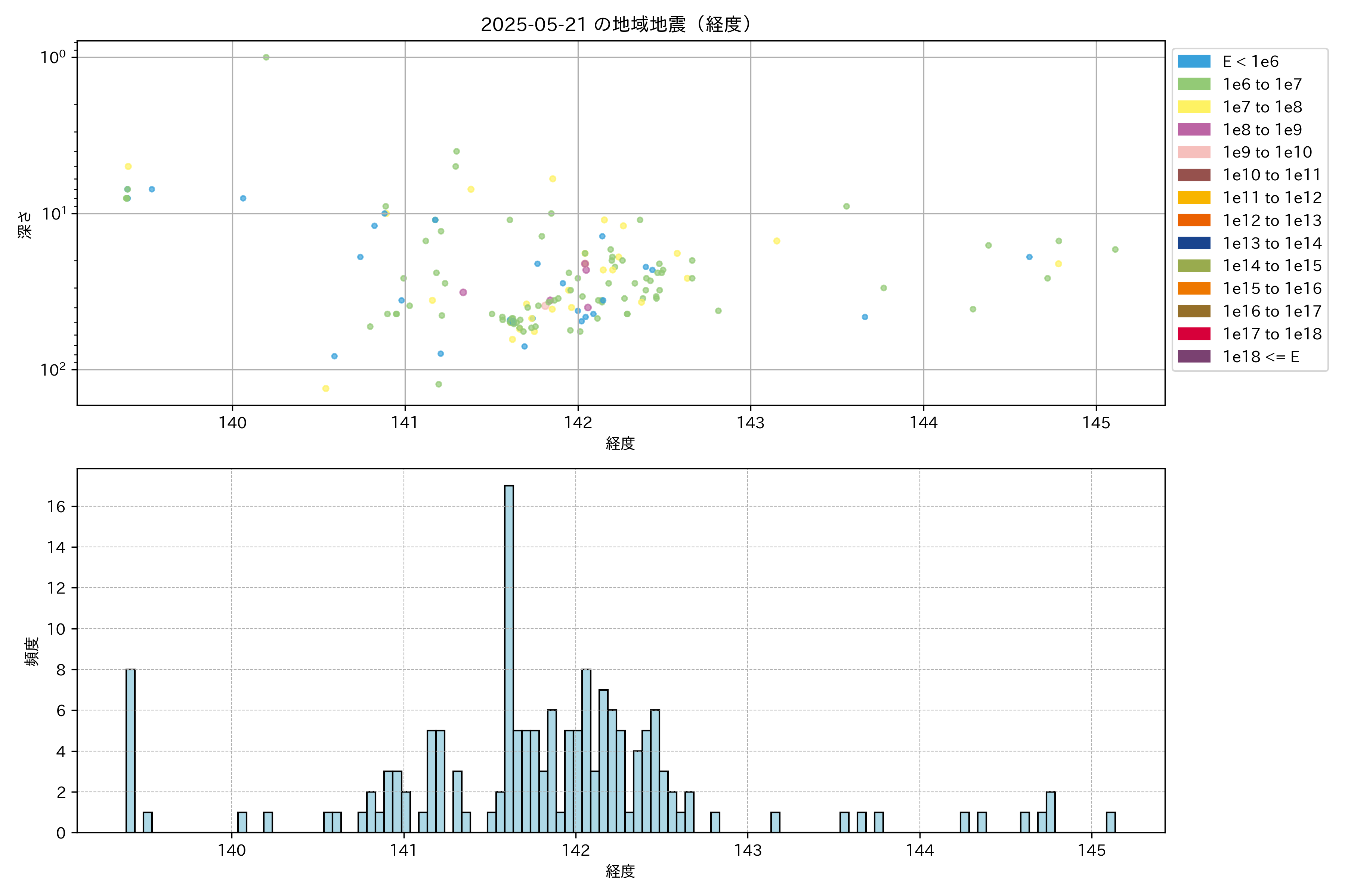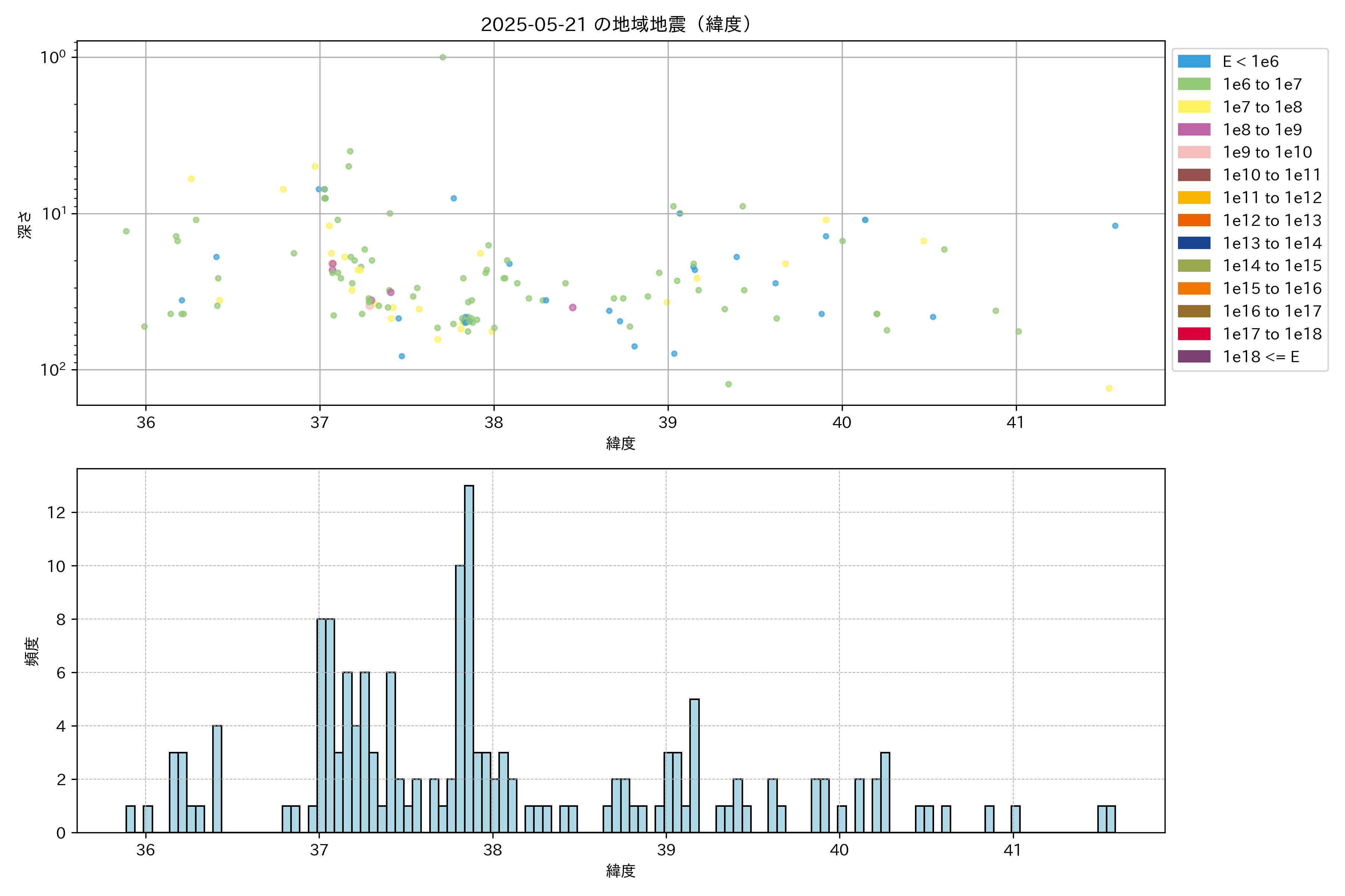 2025年05月21日東北太平洋側エリア震源マップ