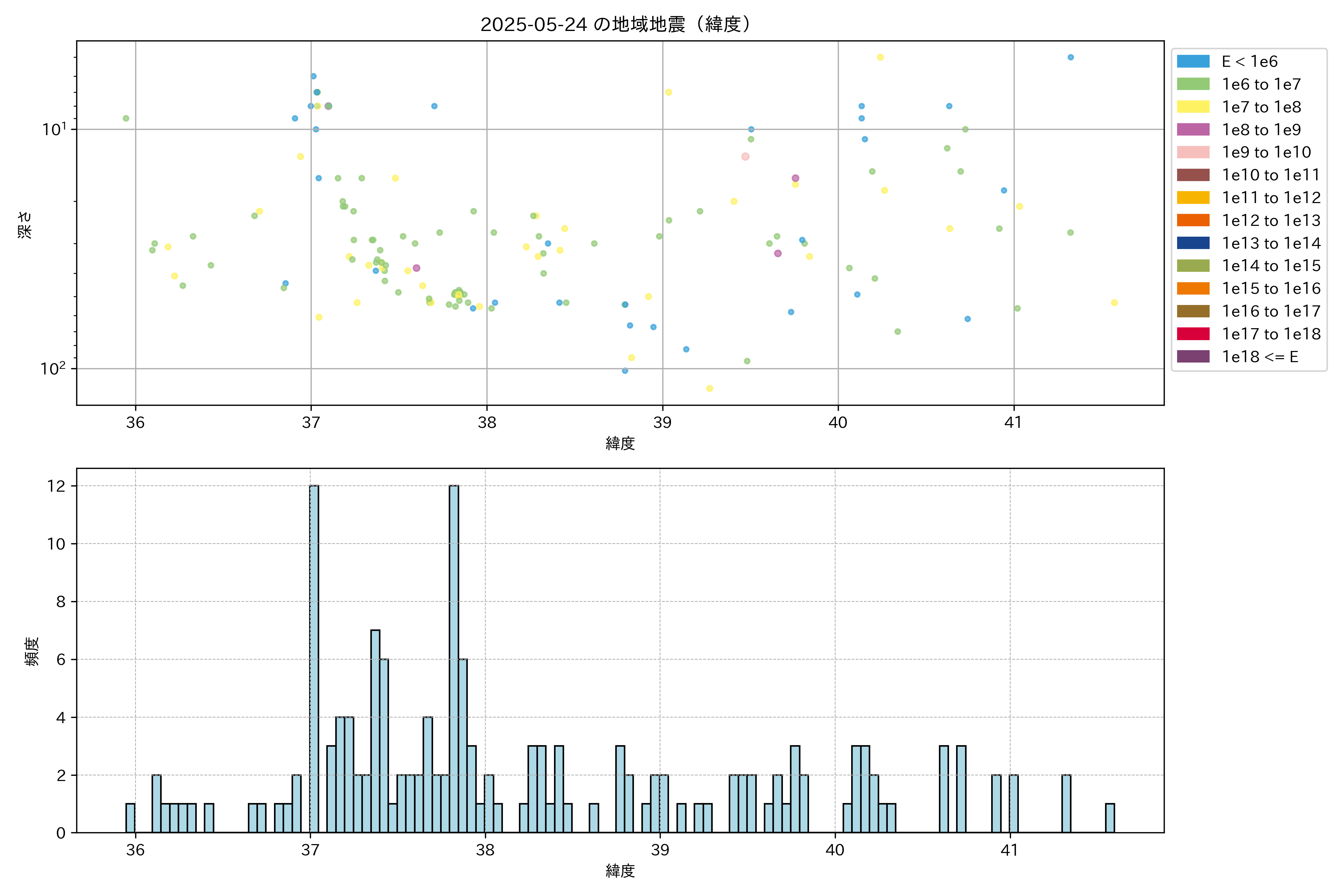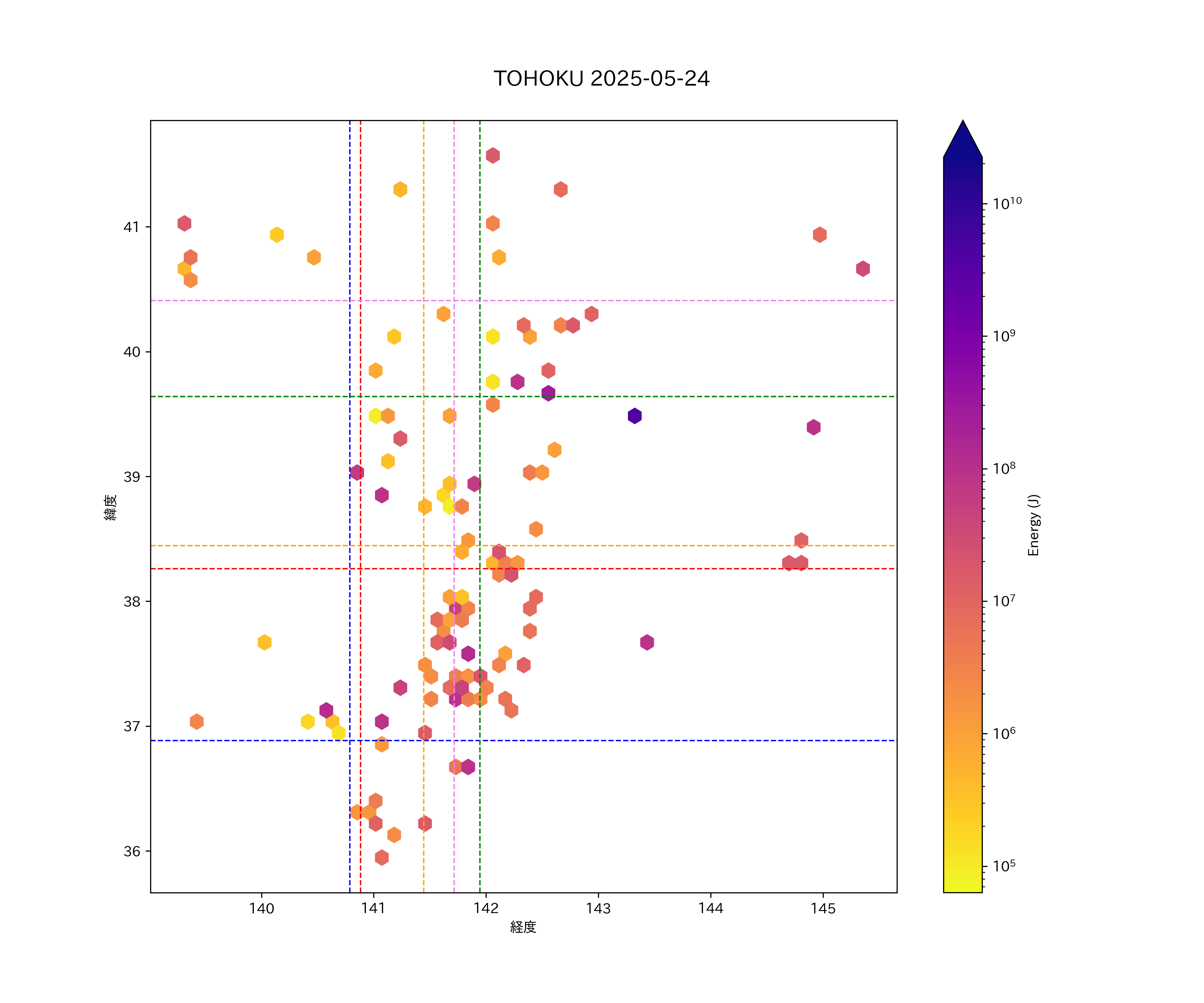 2025年05月24日東北太平洋側エリア震源マップ