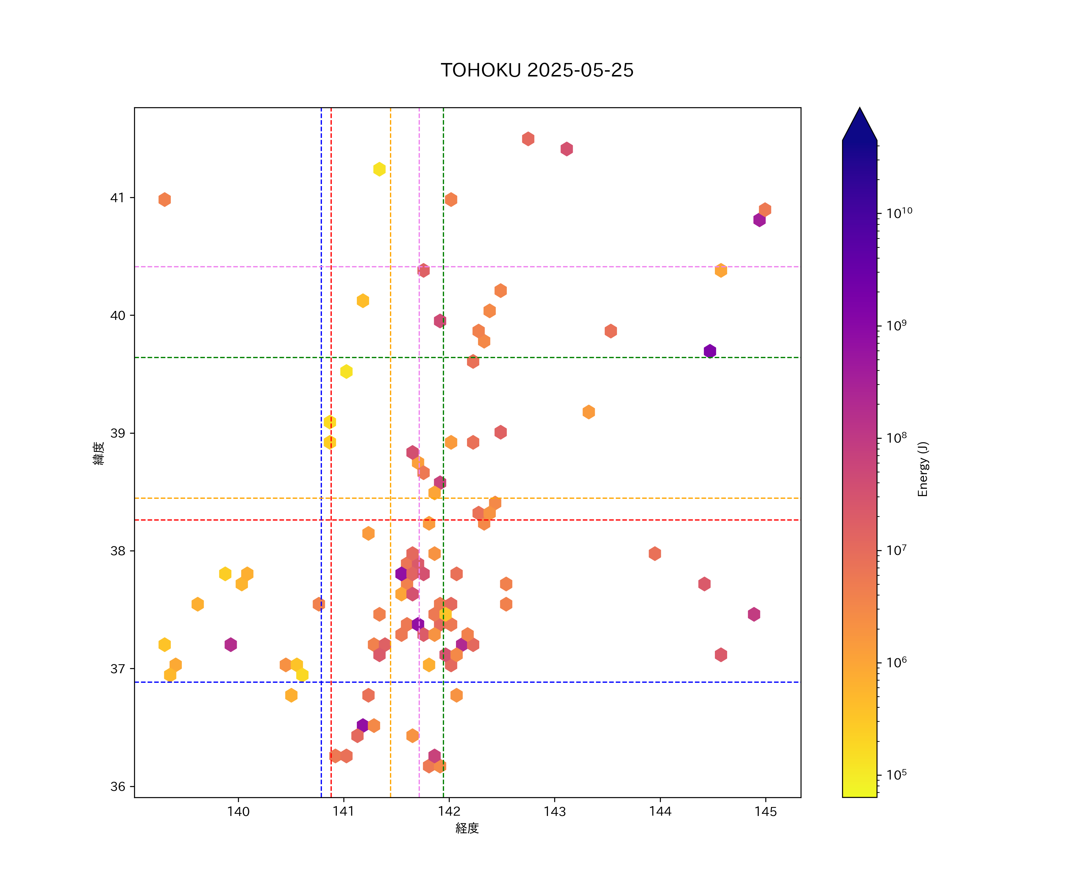 2025年05月25日東北太平洋側エリア震源マップ