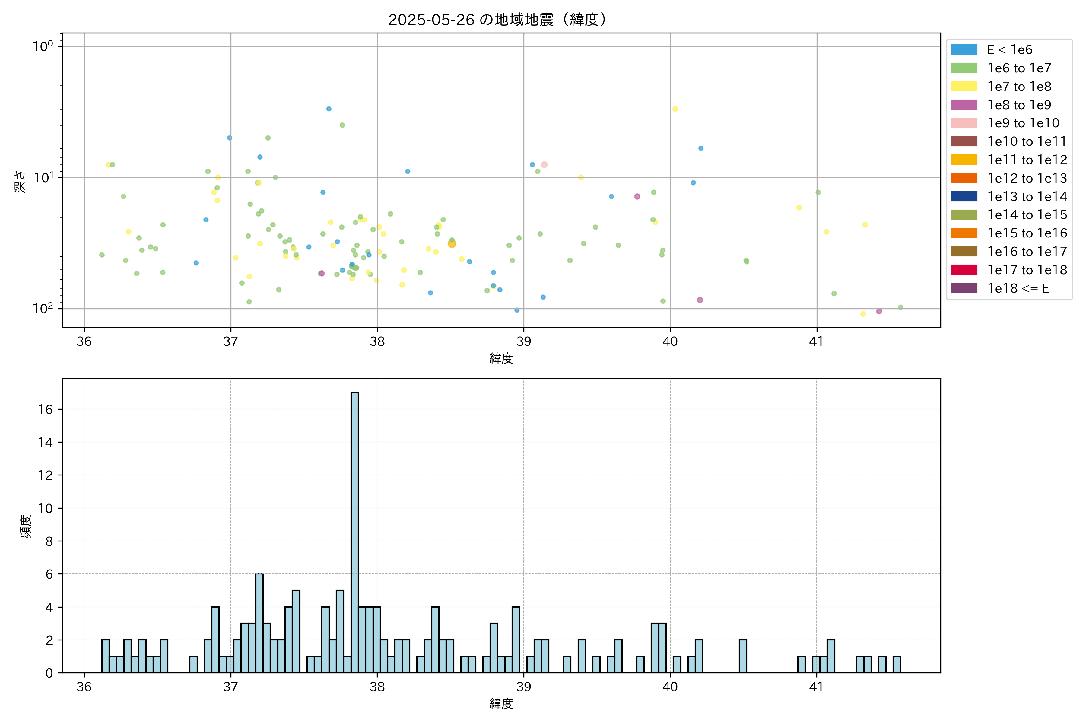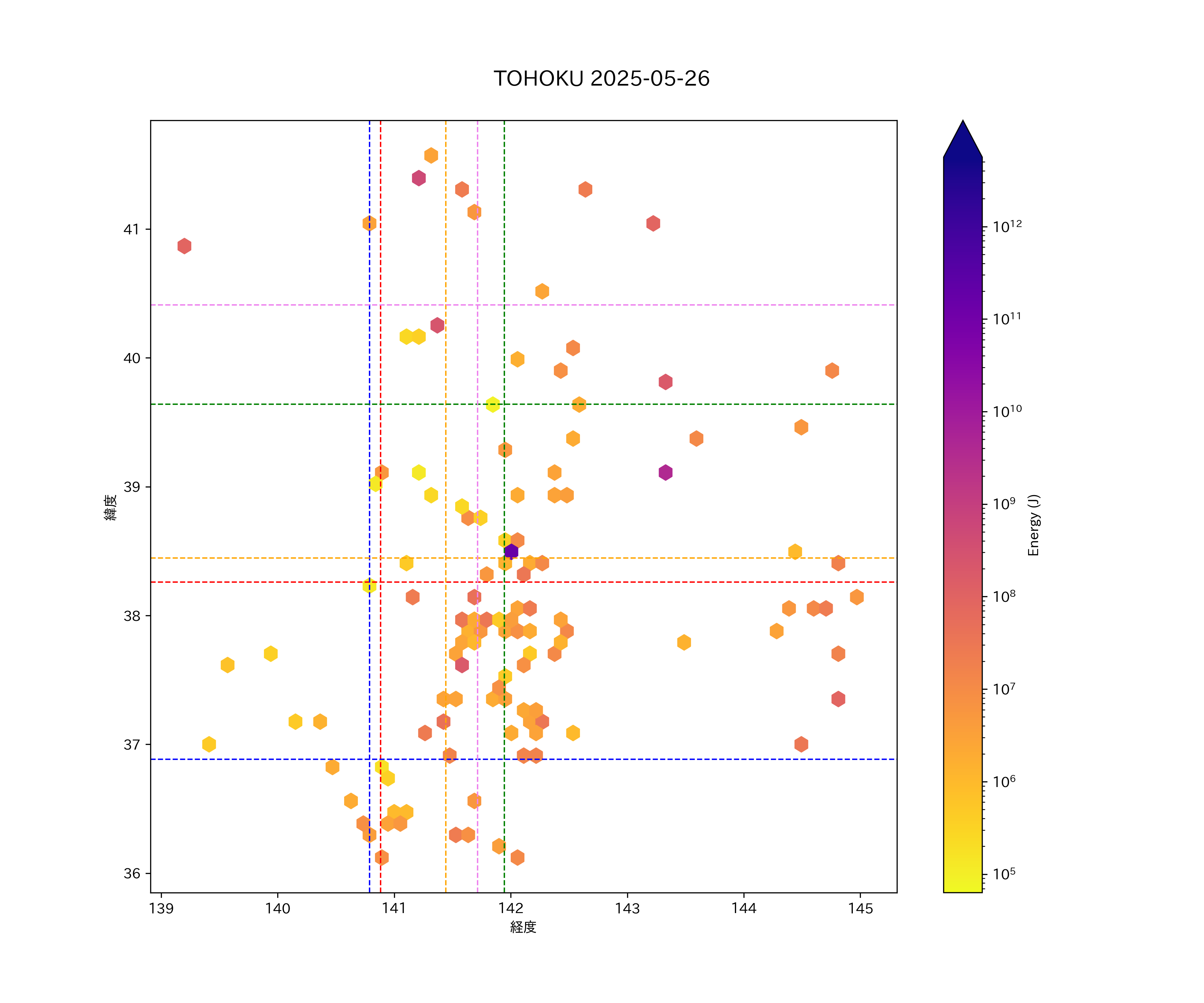 2025年05月26日東北太平洋側エリア震源マップ