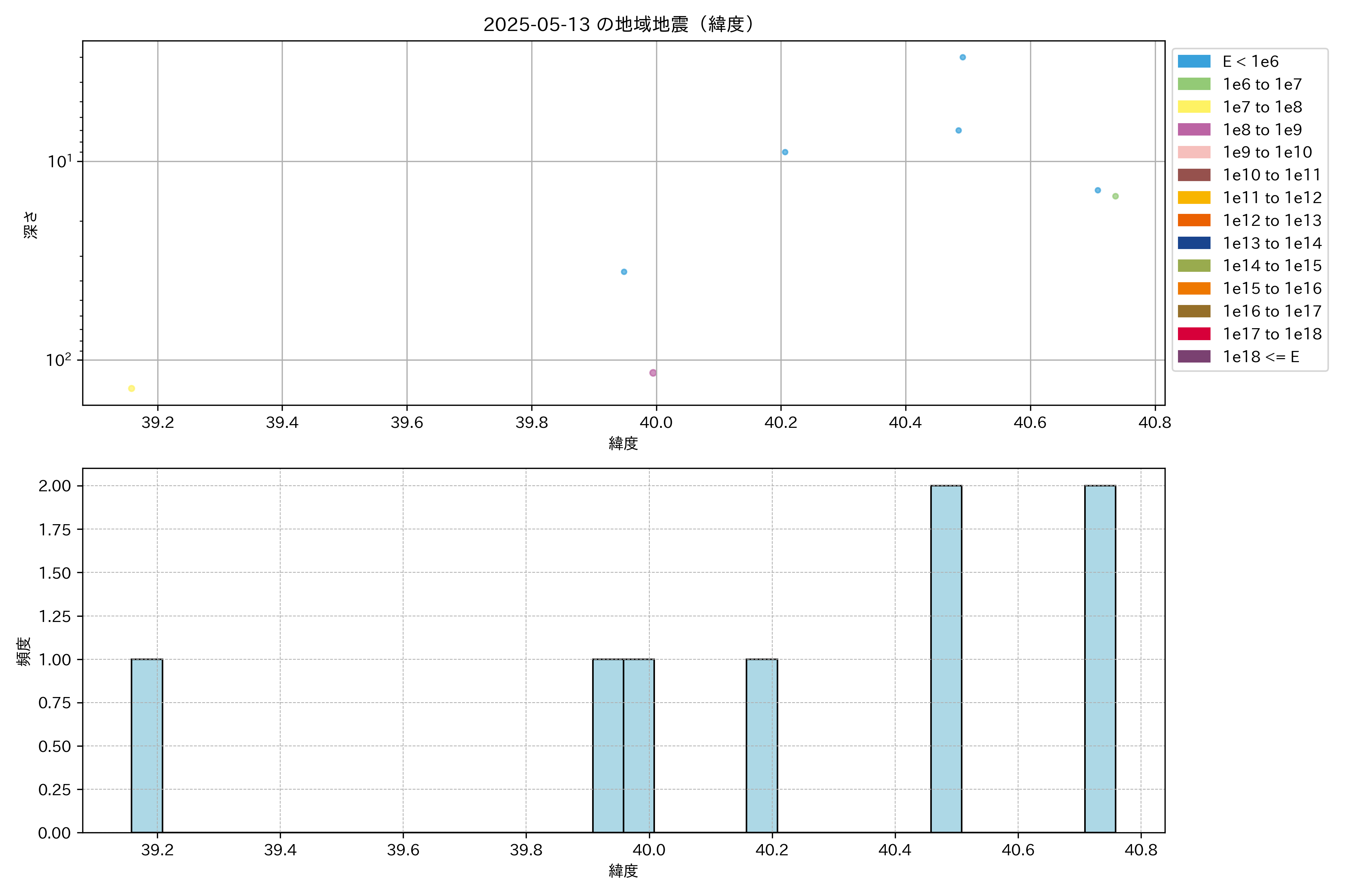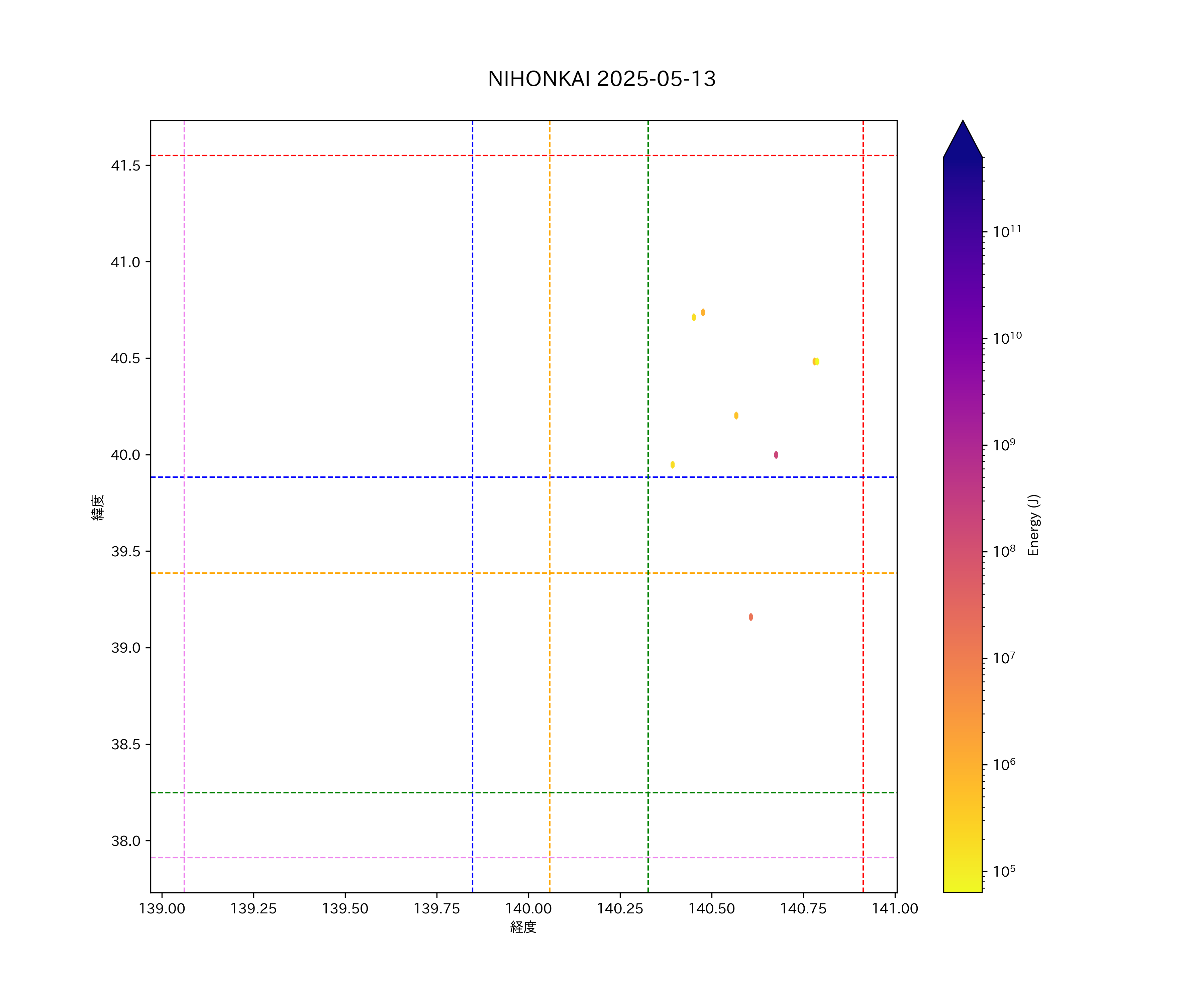 2025年05月13日東北日本海側エリア震源マップ