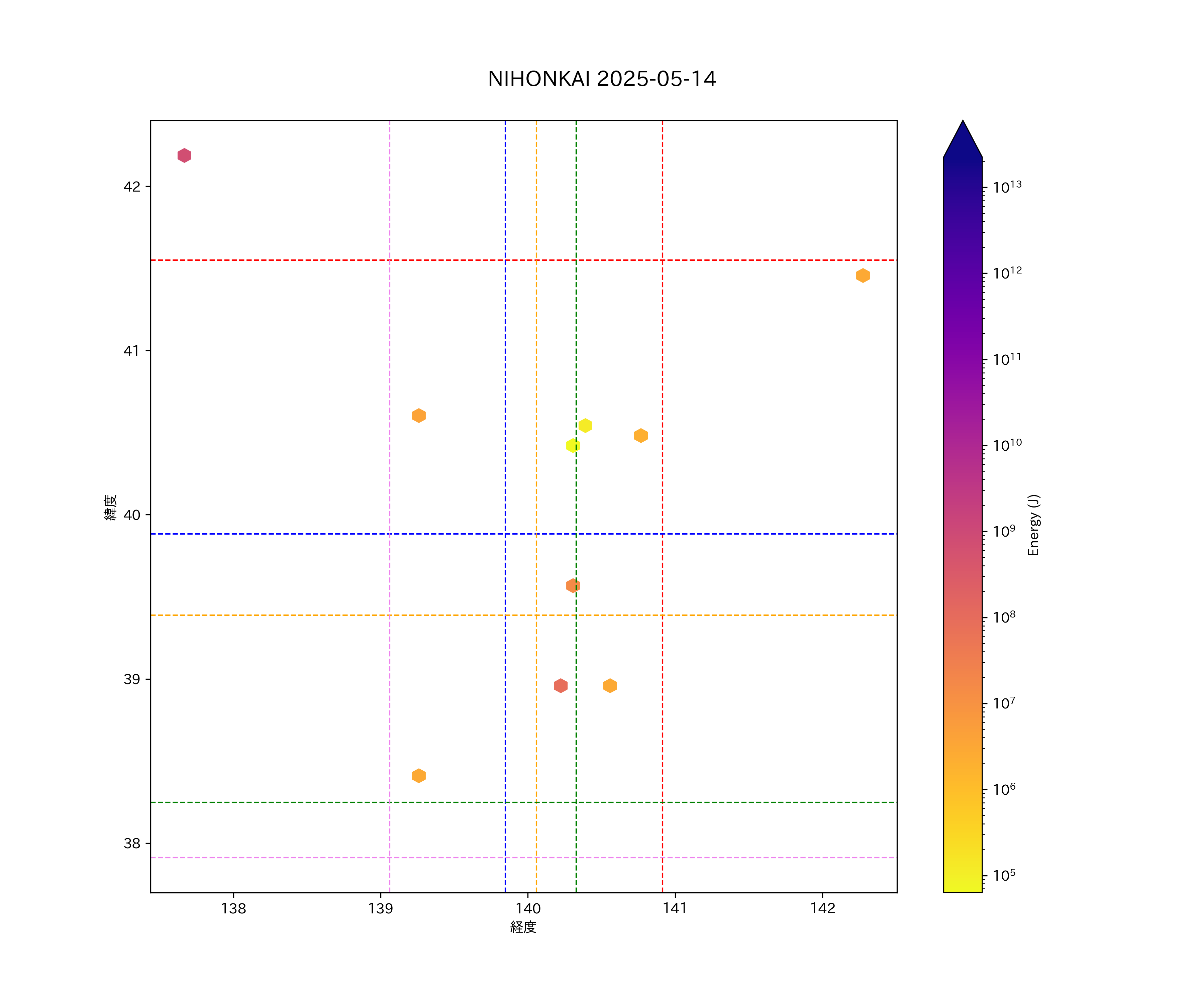 2025年05月14日東北日本海側エリア震源マップ