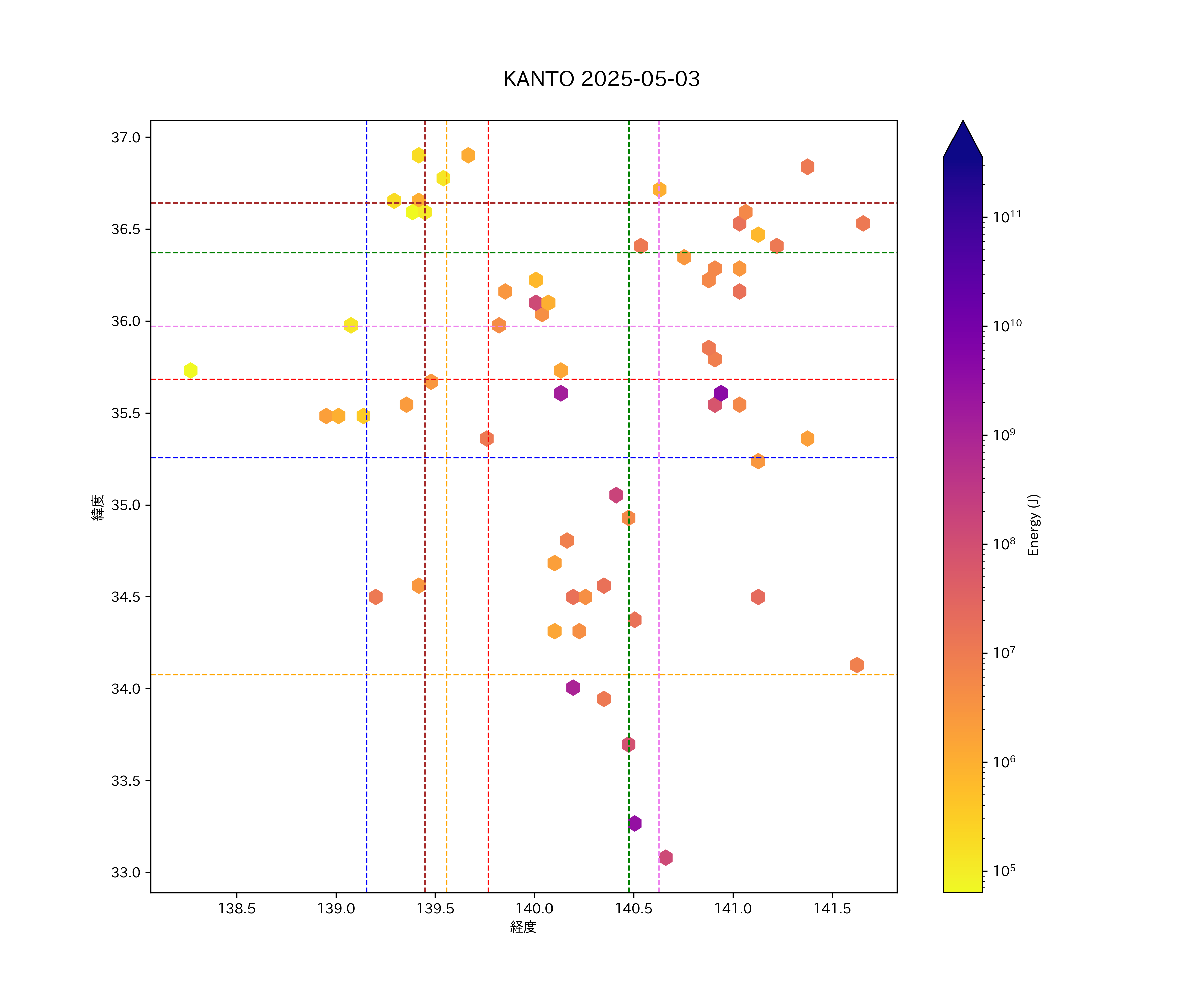 2025年05月03日関東エリア震源マップ