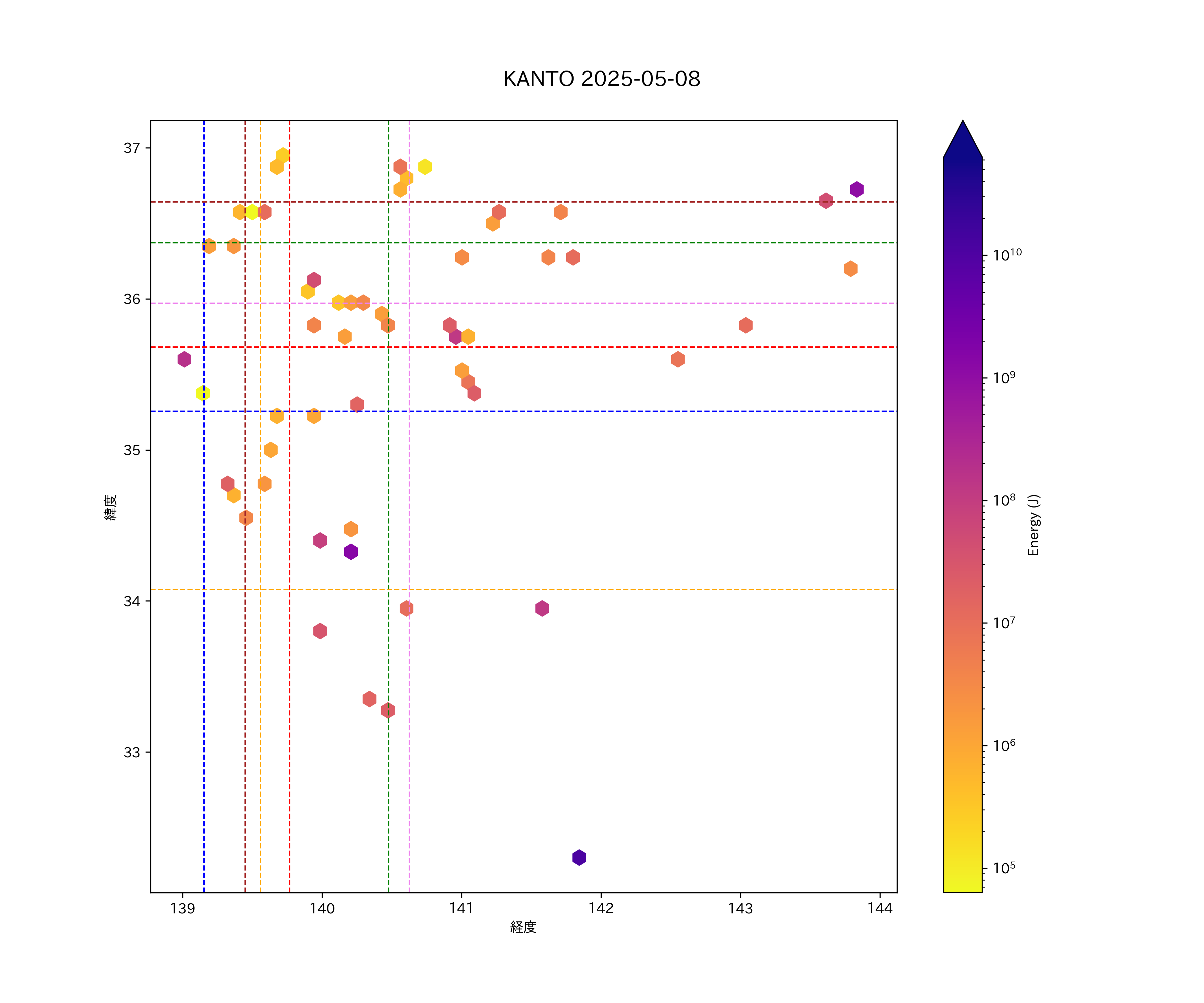 2025年05月08日関東エリア震源マップ
