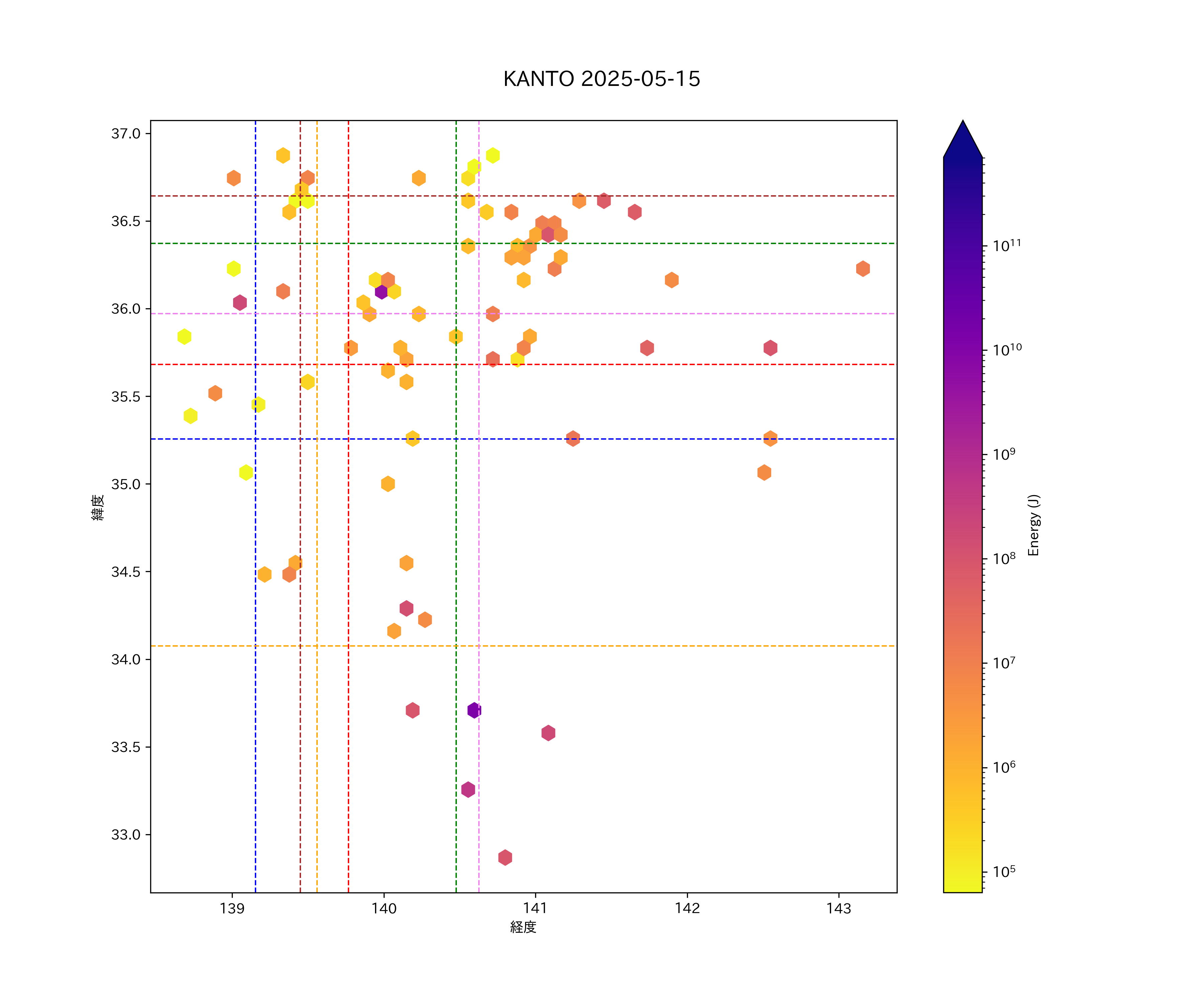 2025年05月15日関東エリア震源マップ