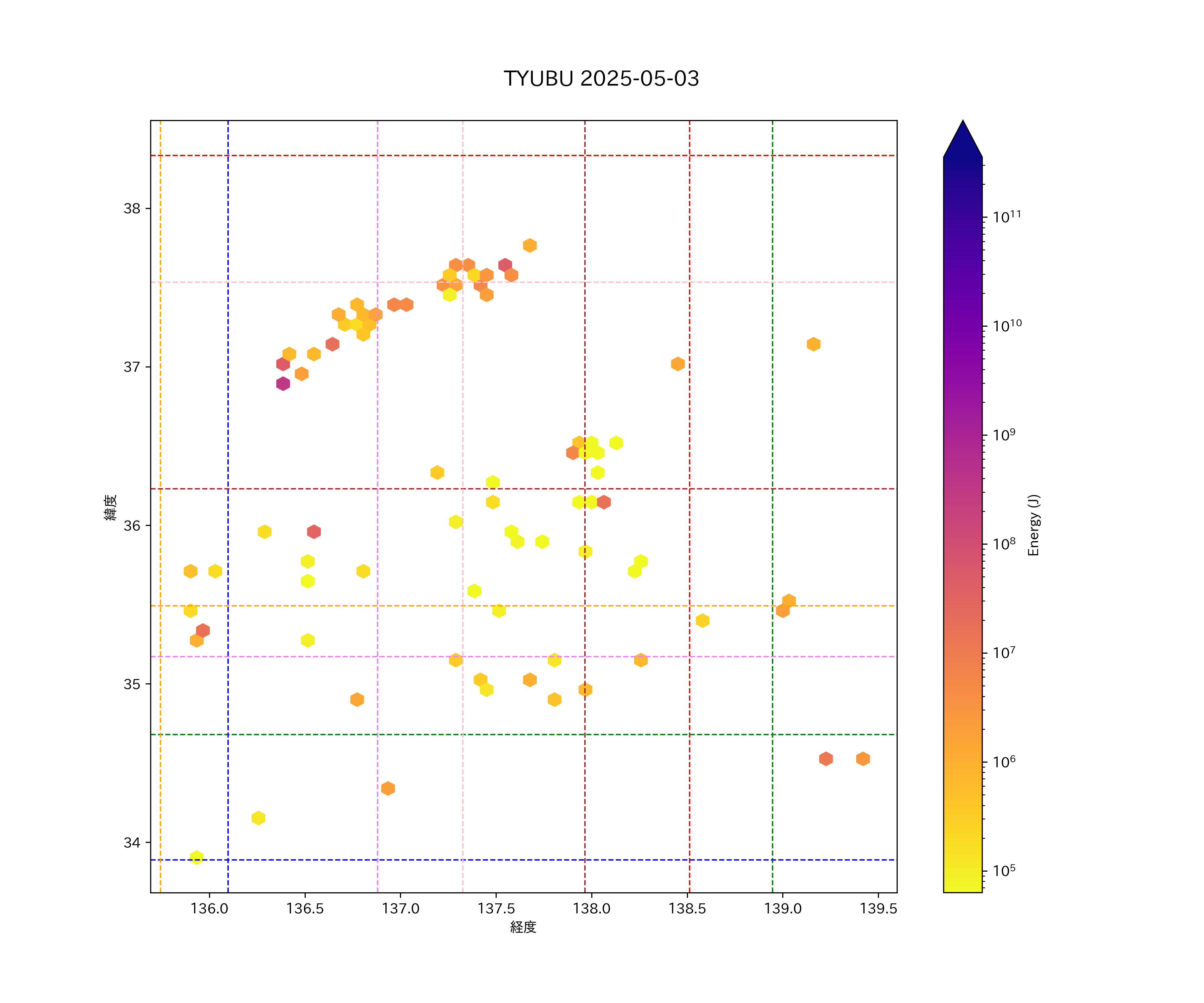 2025年05月03日中部エリア震源マップ