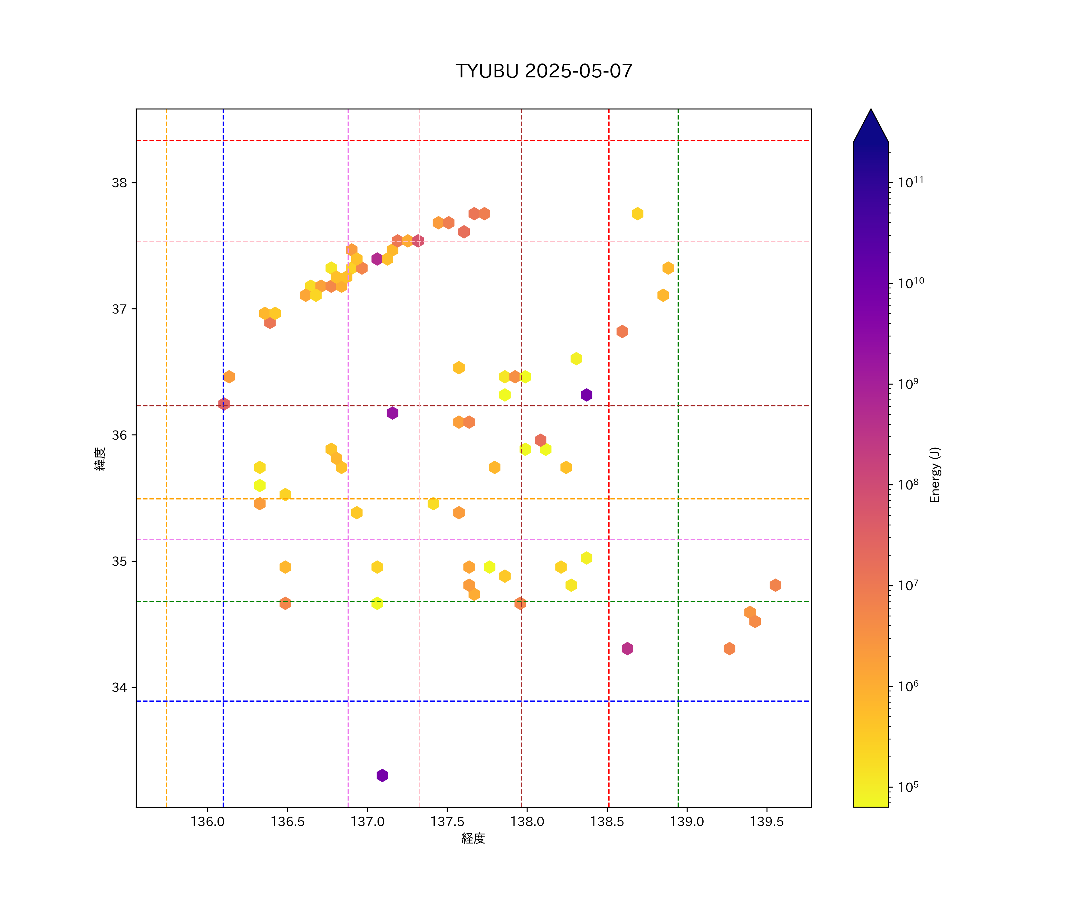 2025年05月07日中部エリア震源マップ