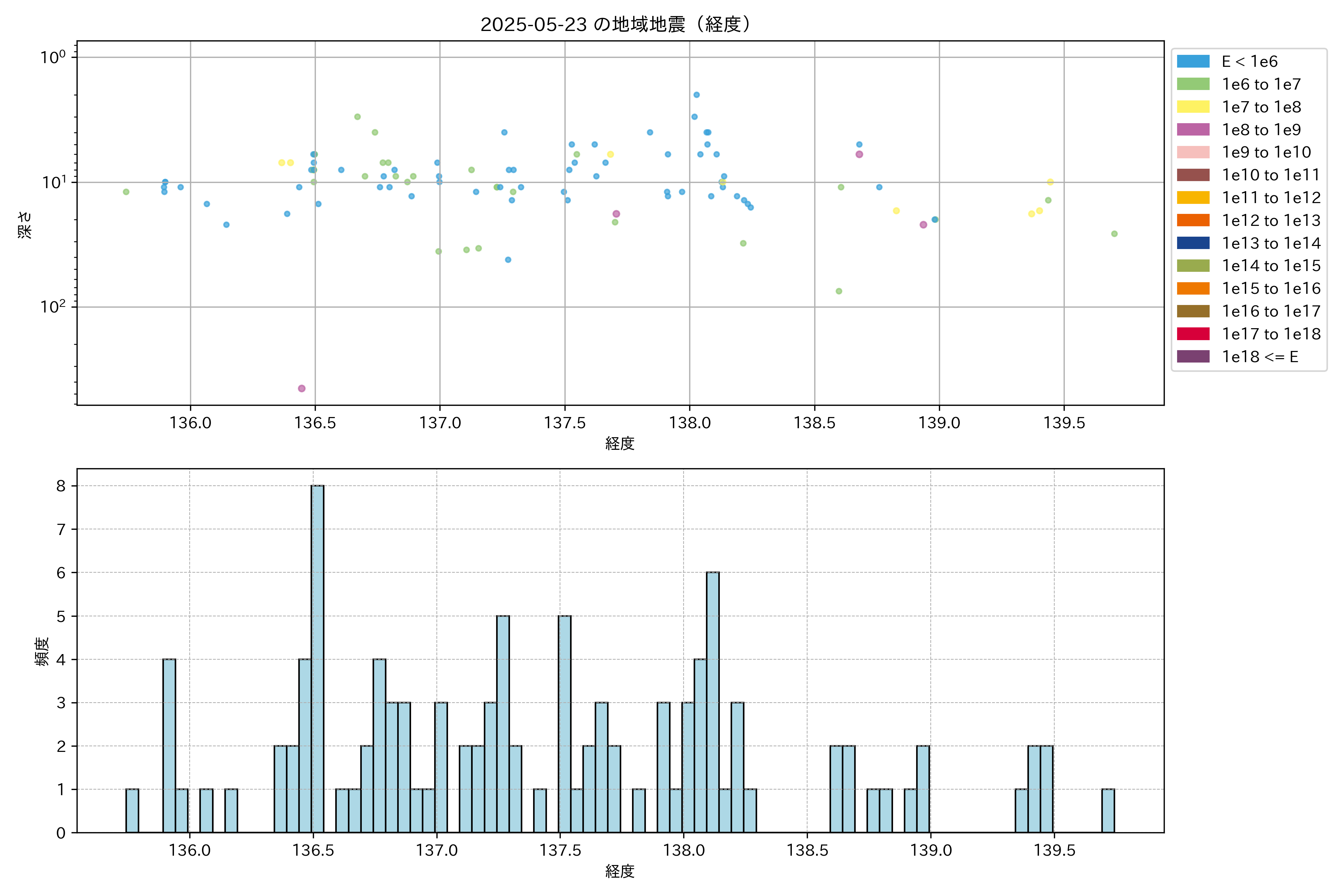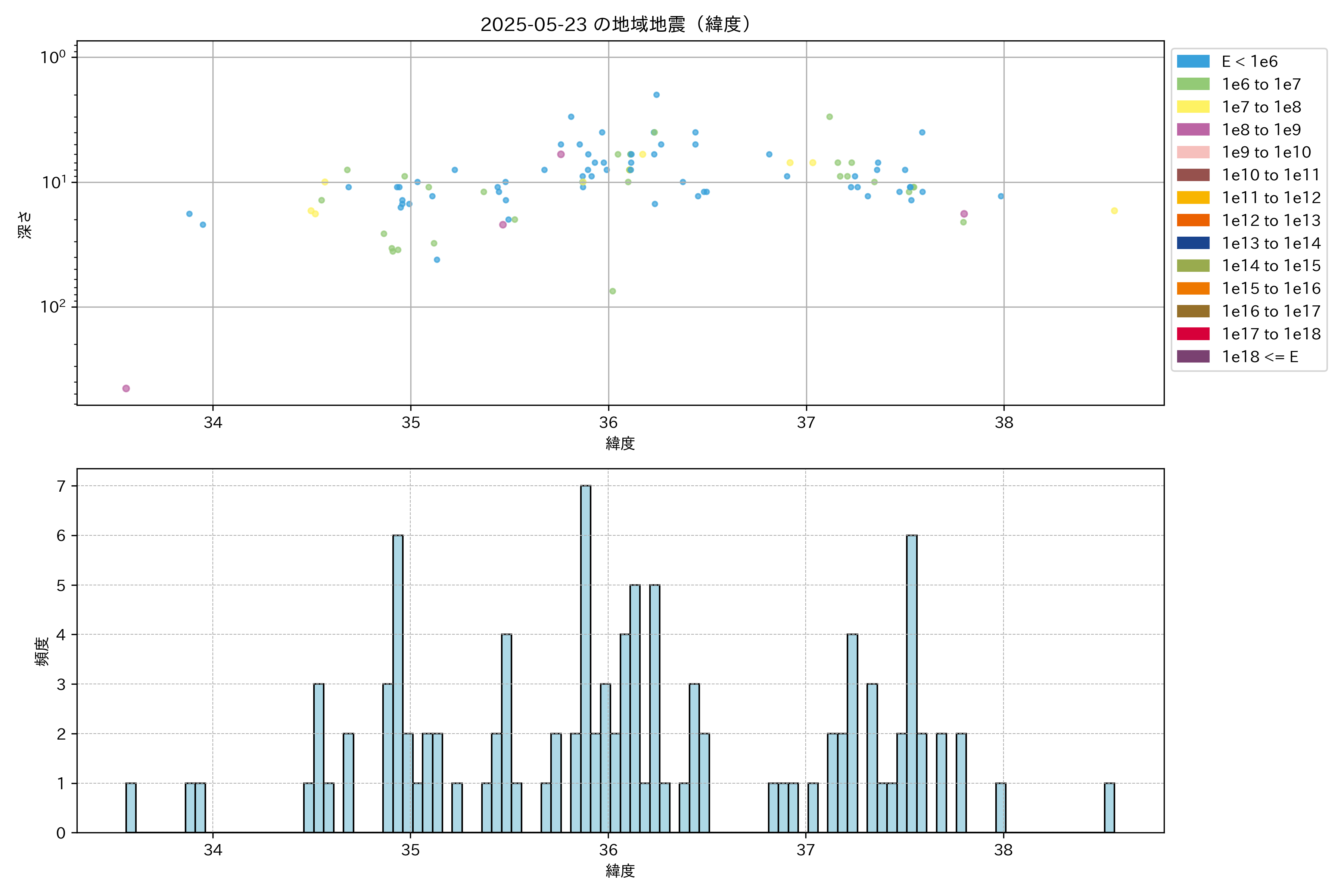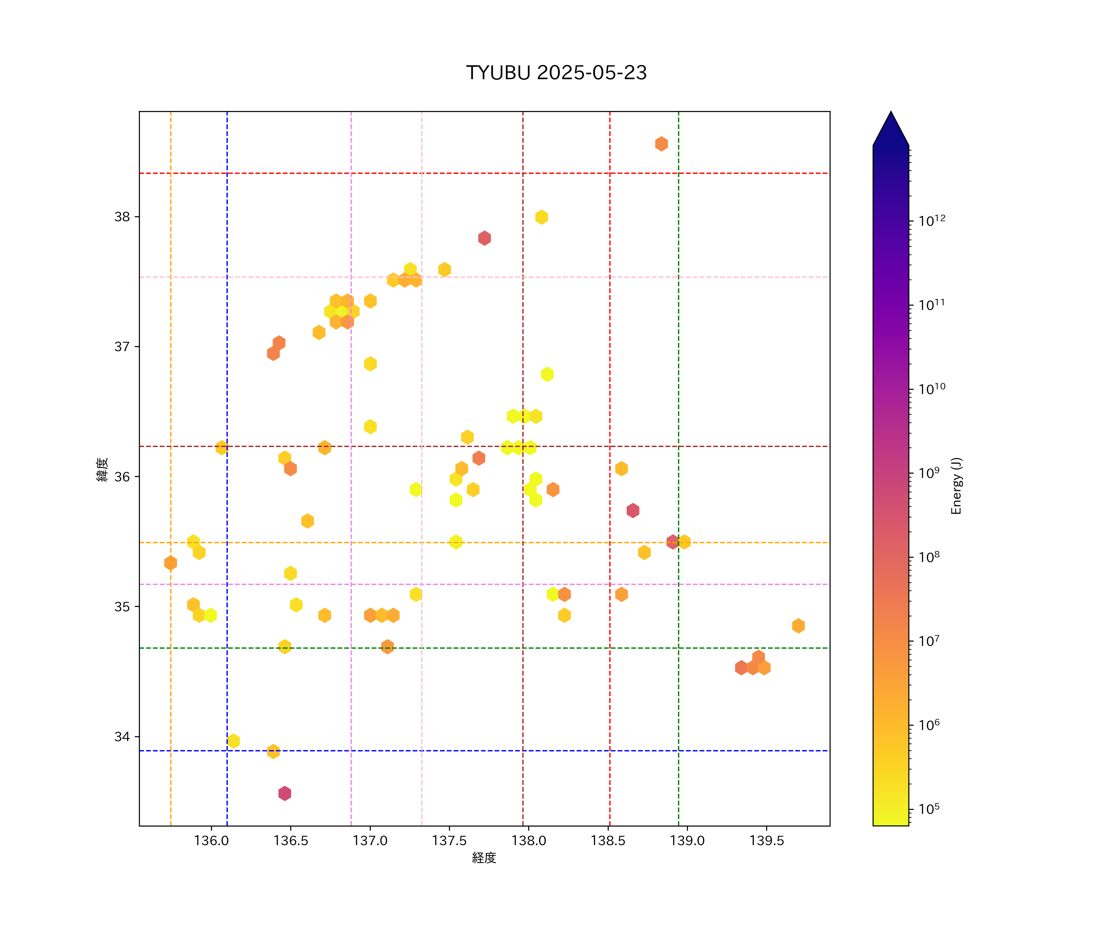 2025年05月23日中部エリア震源マップ