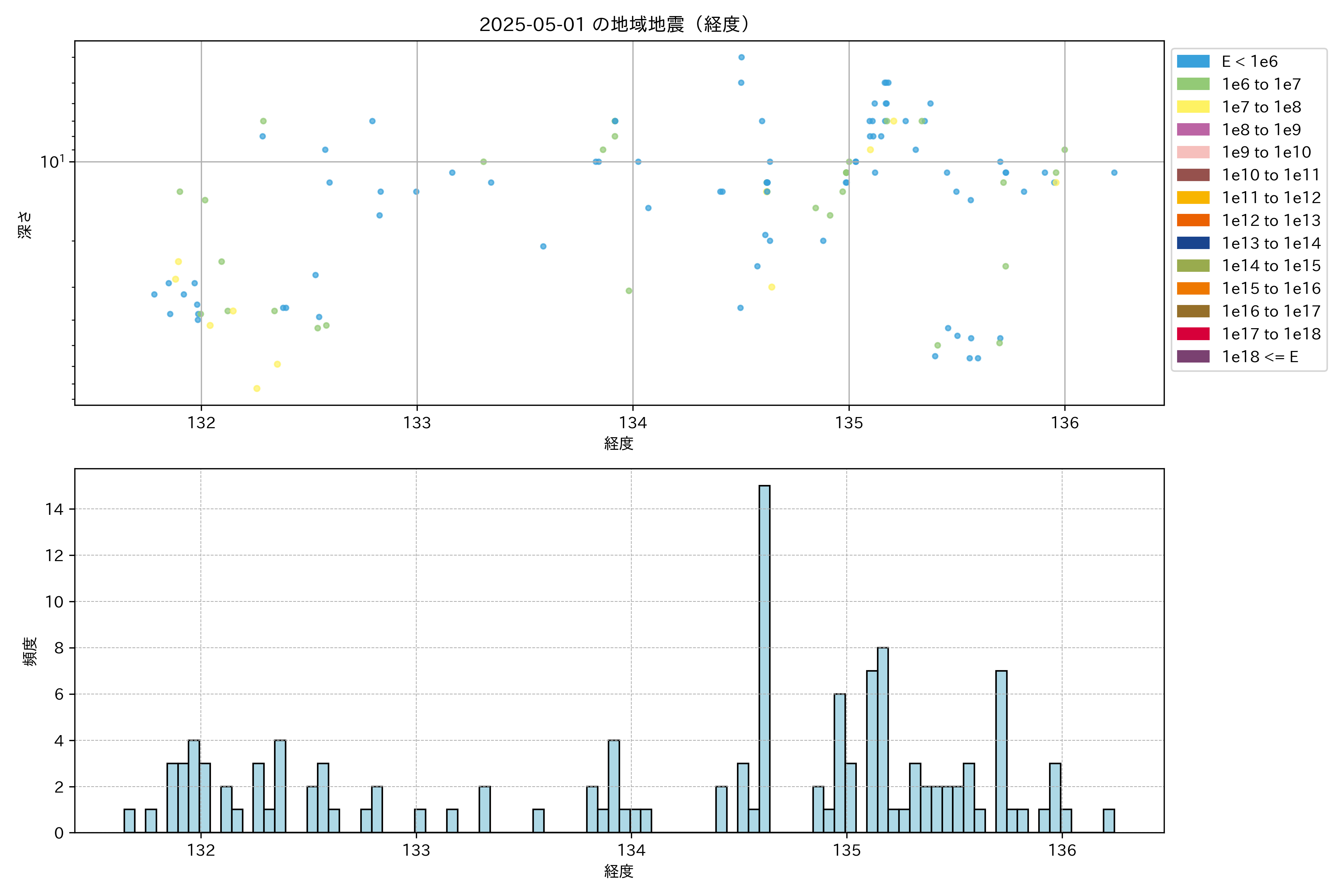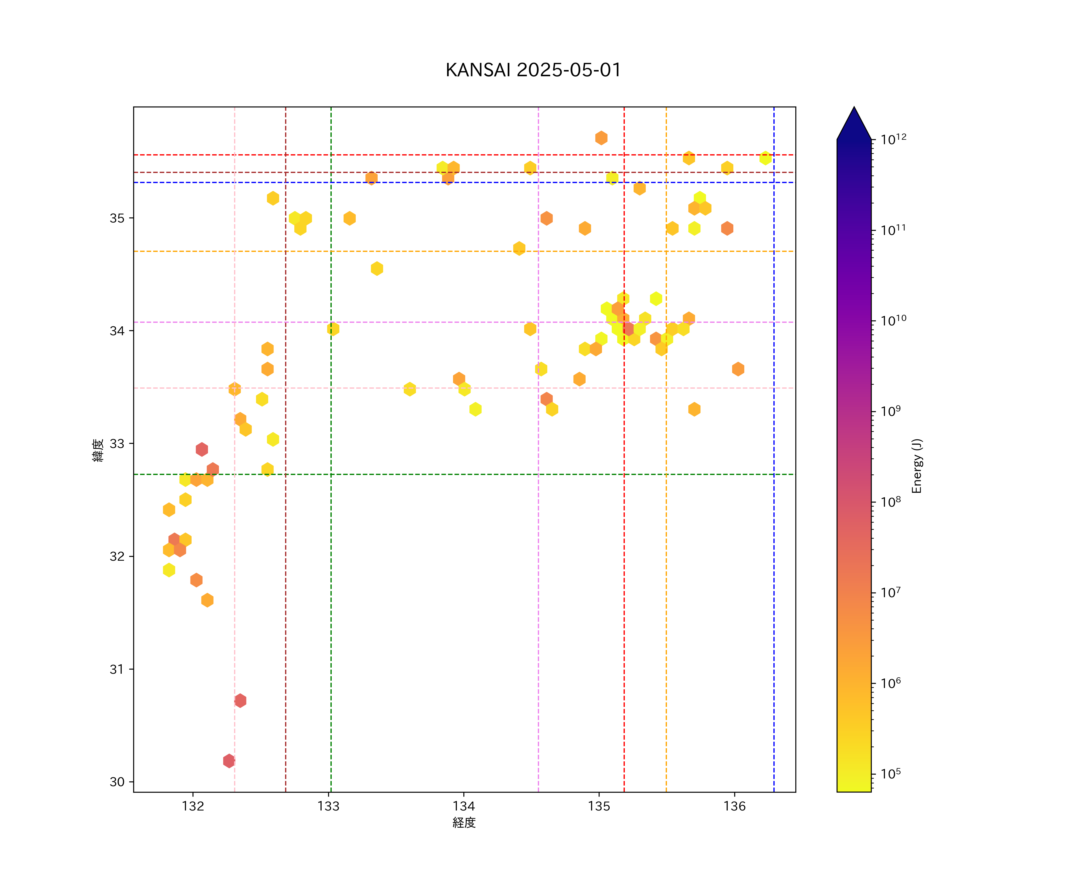 2025年05月01日近畿・中国・四国エリア震源マップ