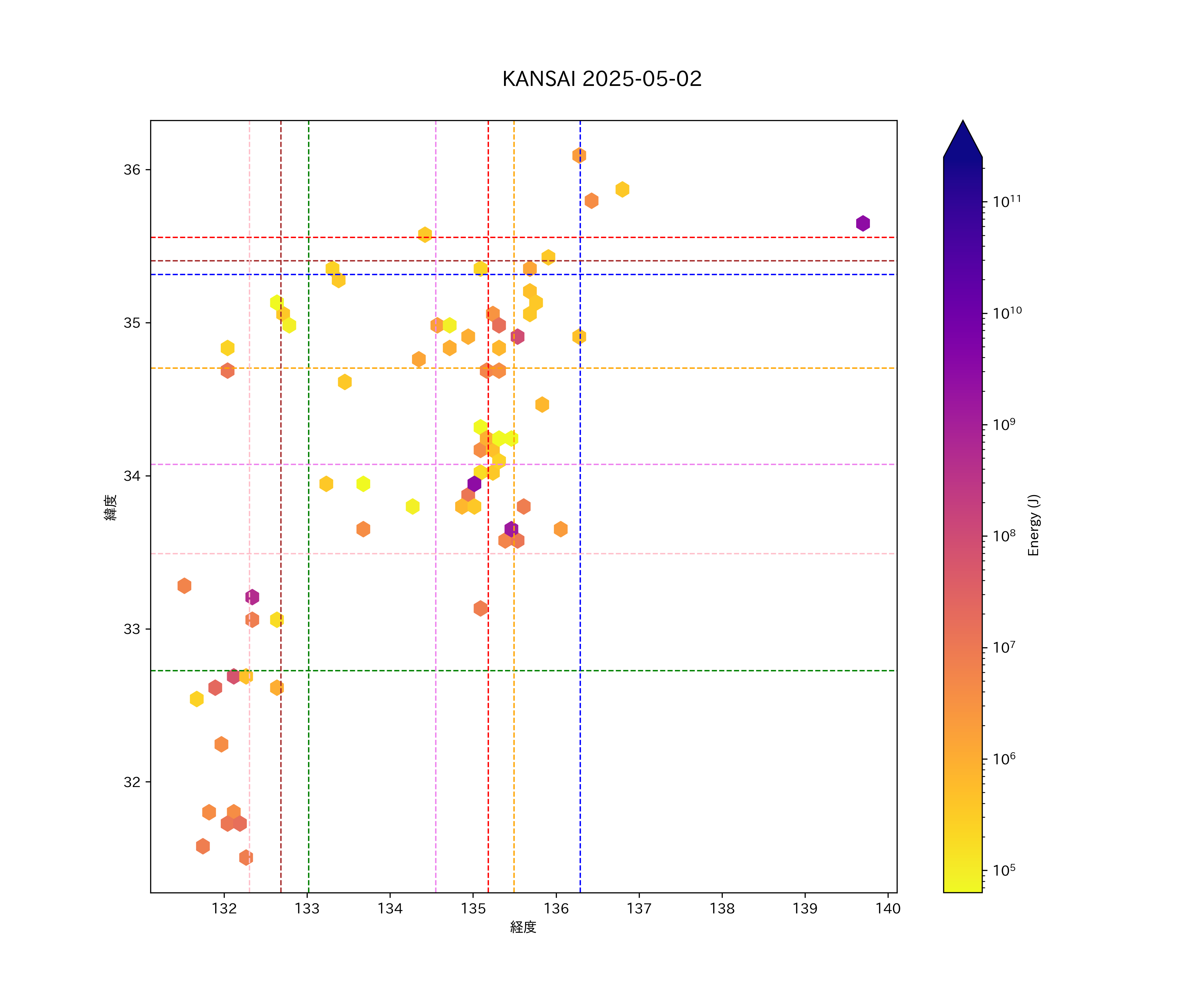 2025年05月02日近畿・中国・四国エリア震源マップ