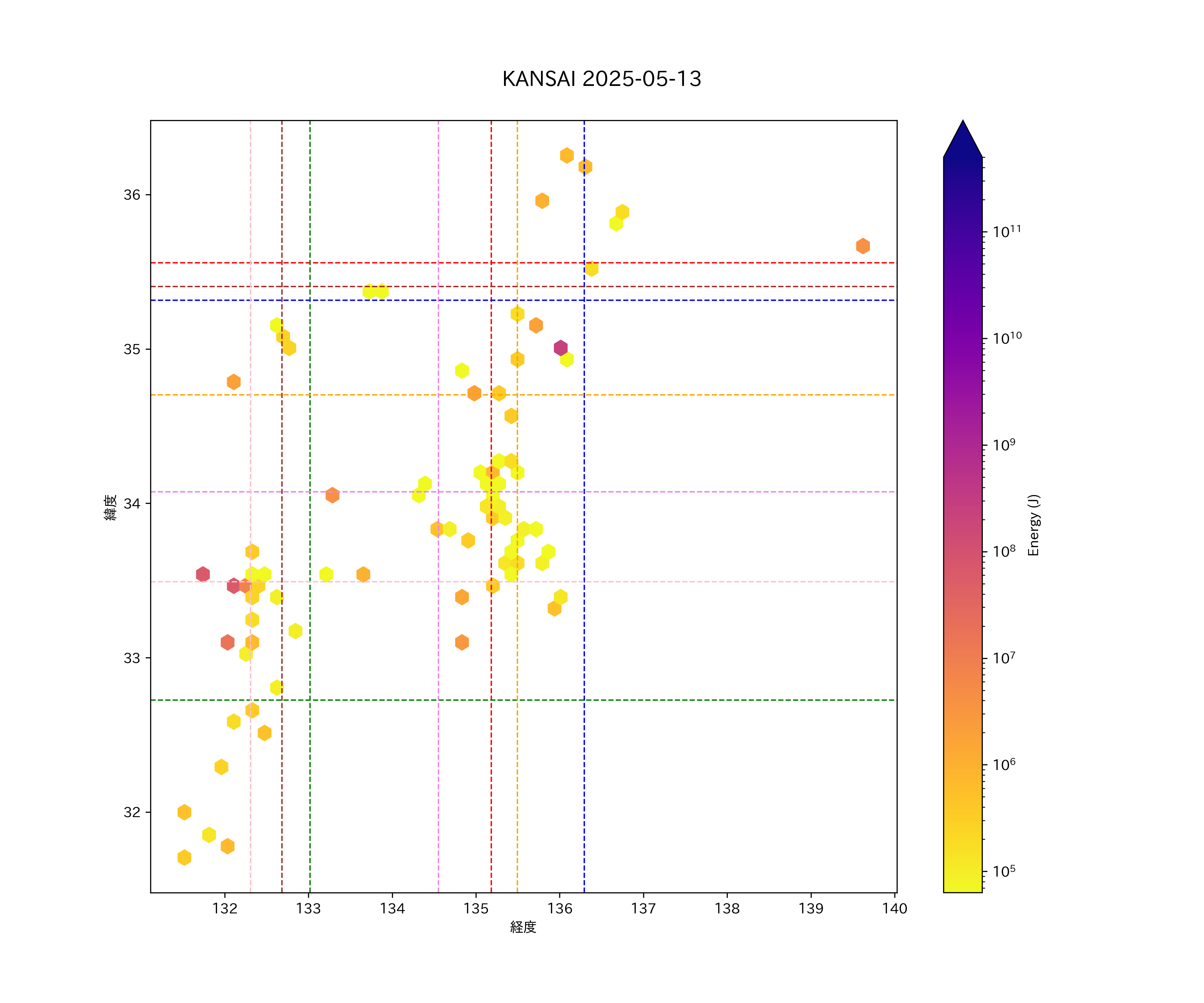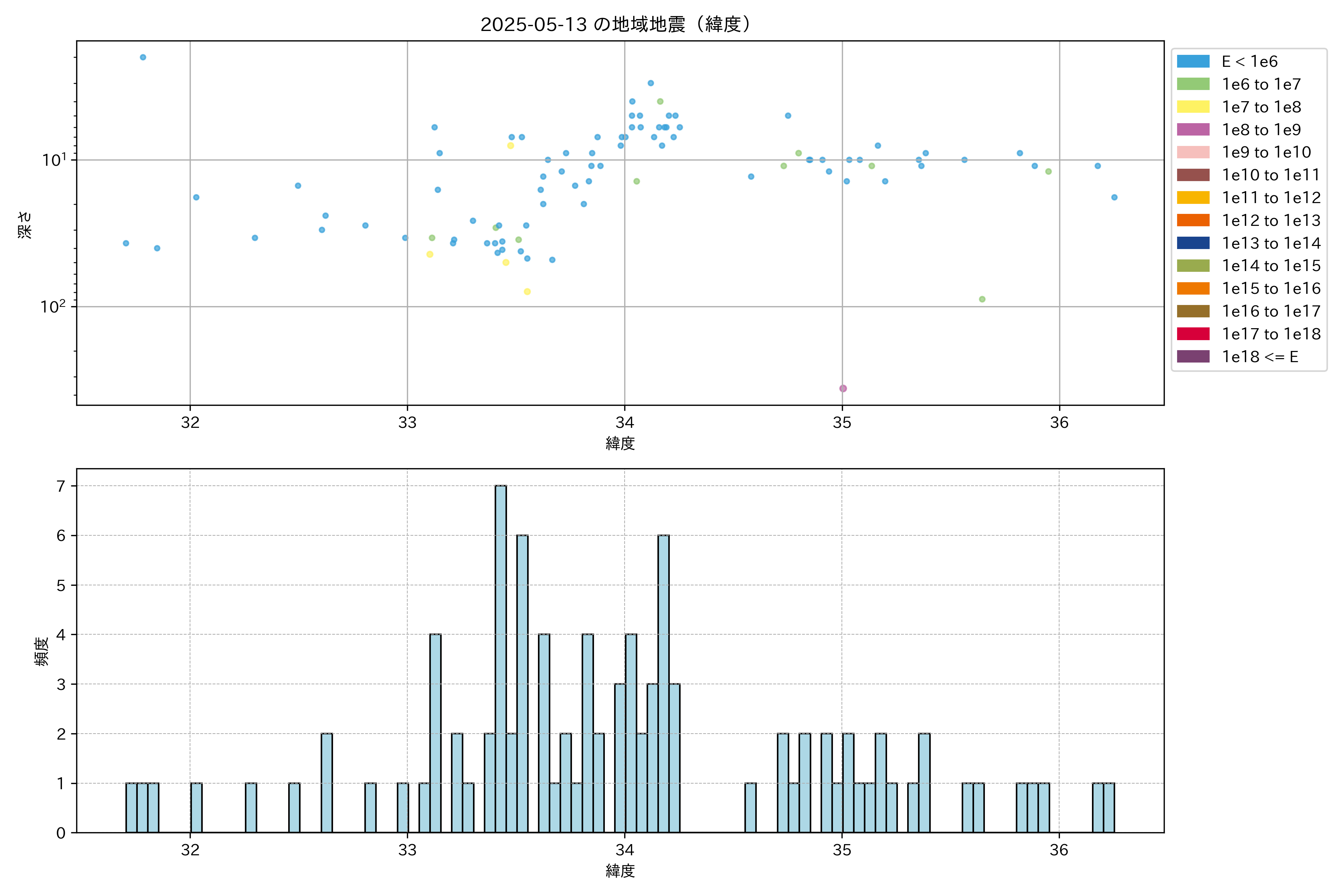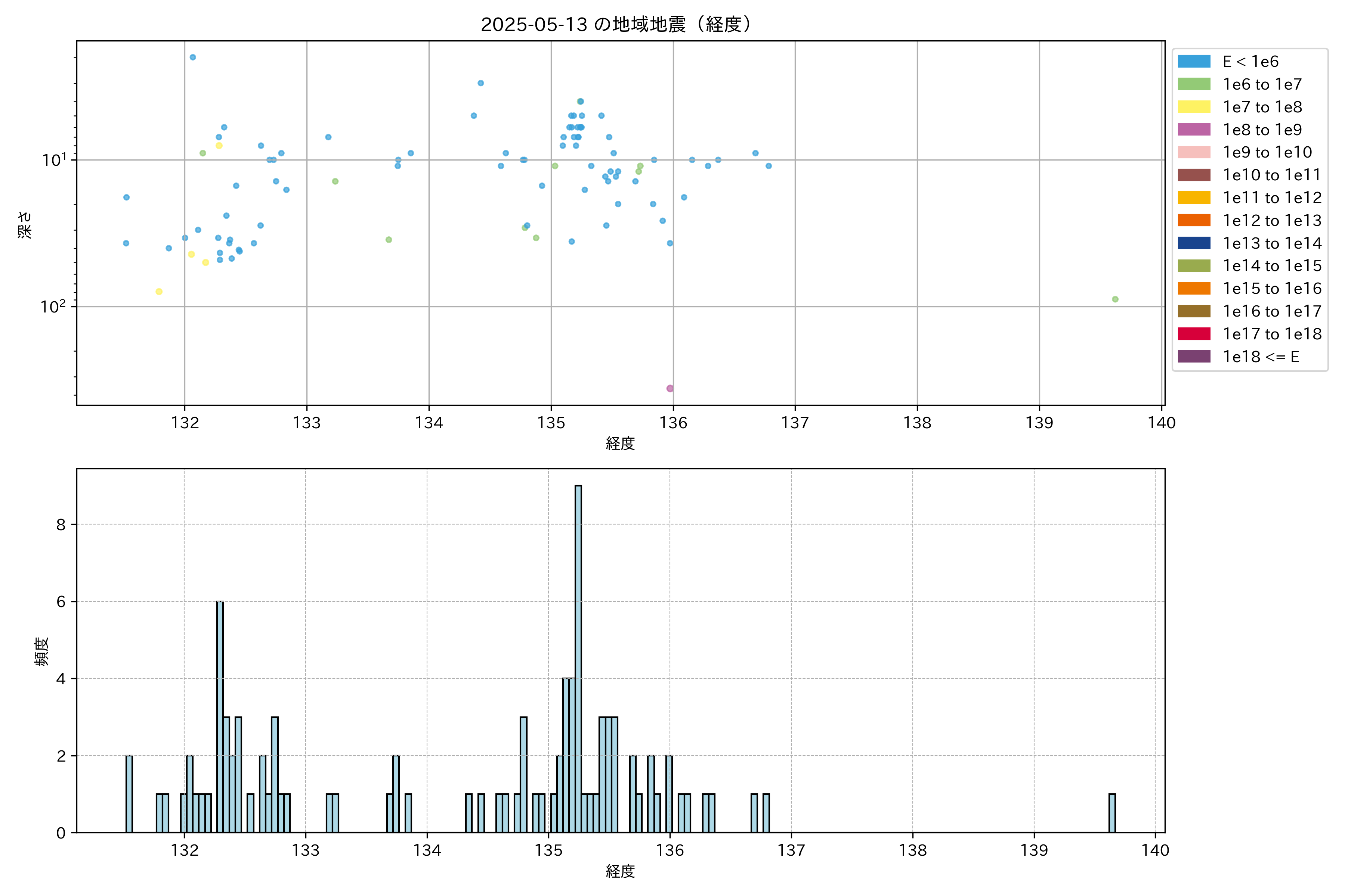 2025年05月13日近畿・中国・四国エリア震源マップ
