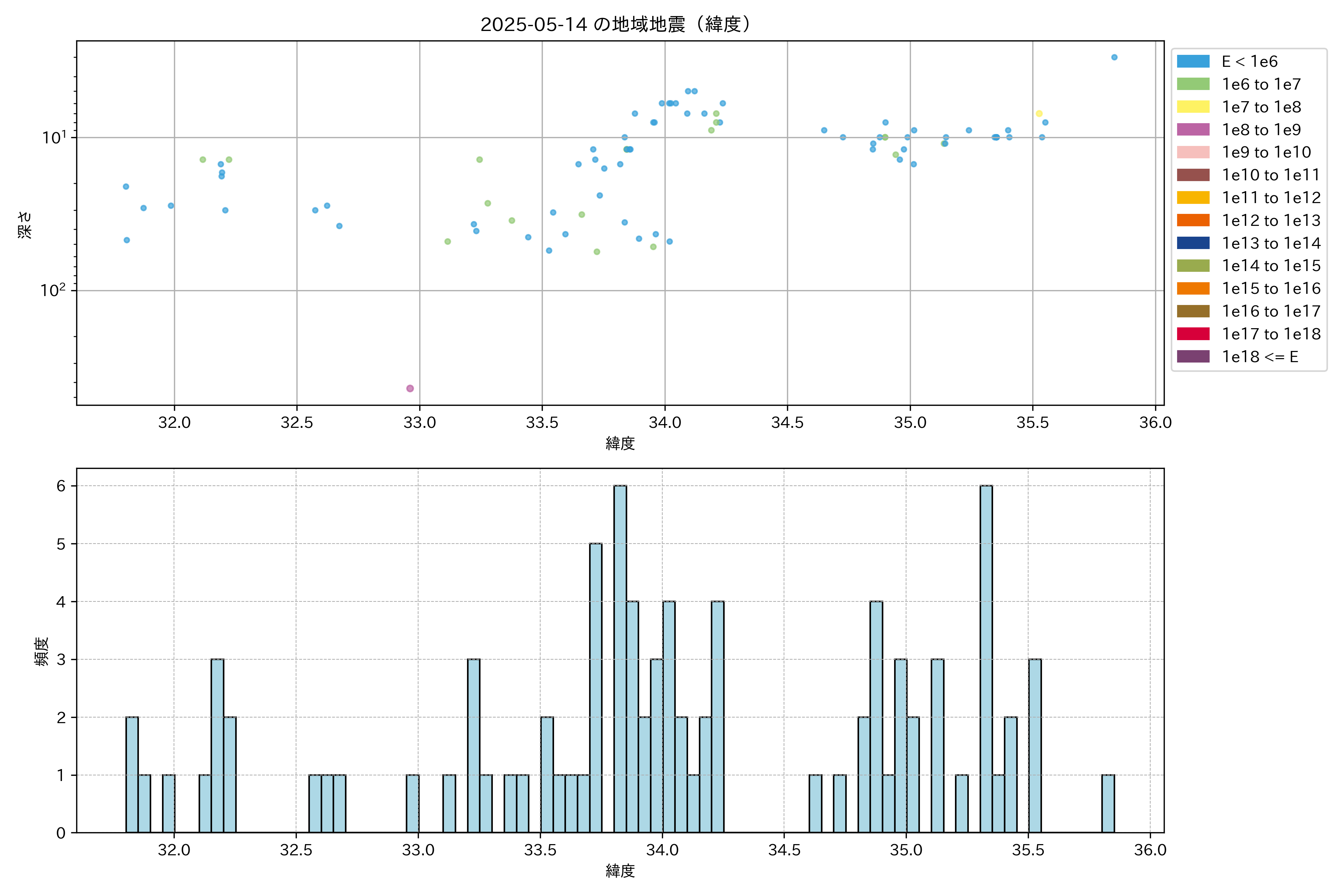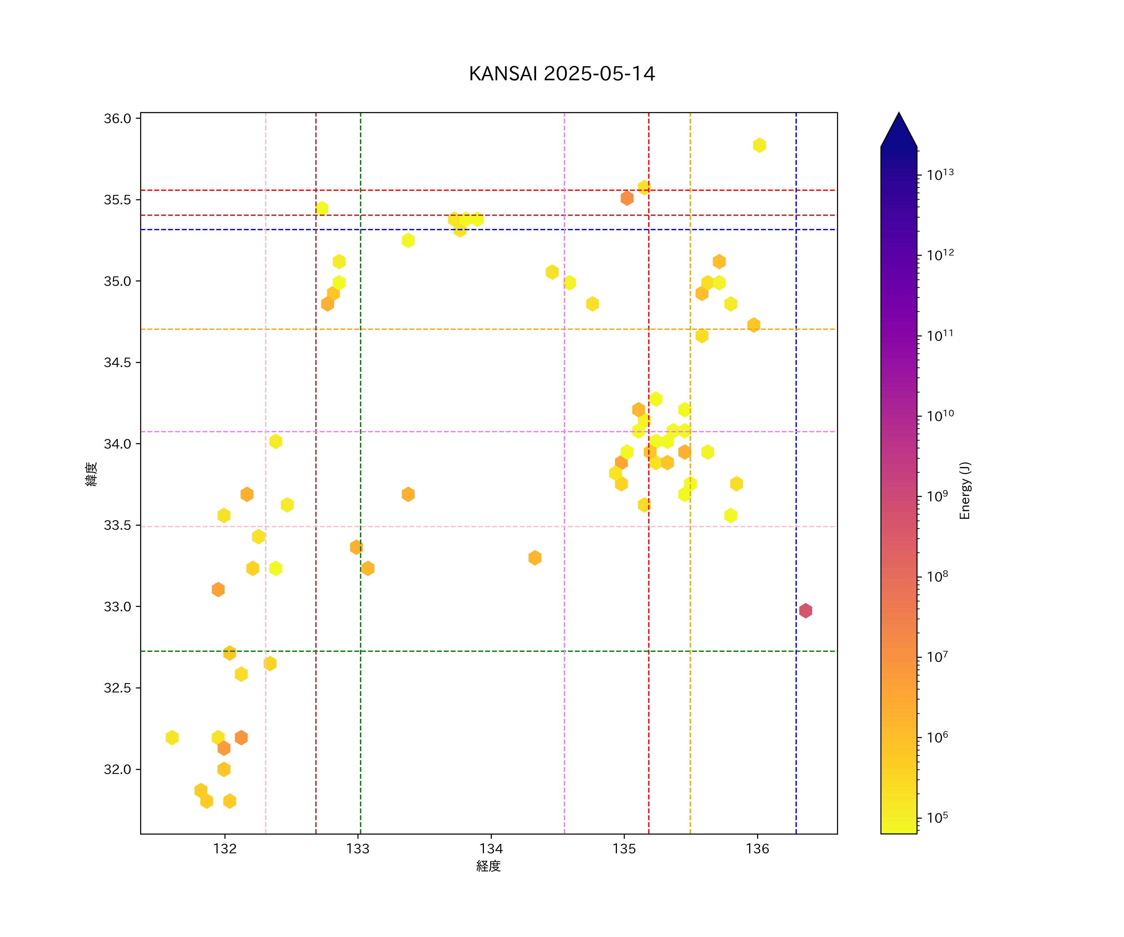 2025年05月14日近畿・中国・四国エリア震源マップ