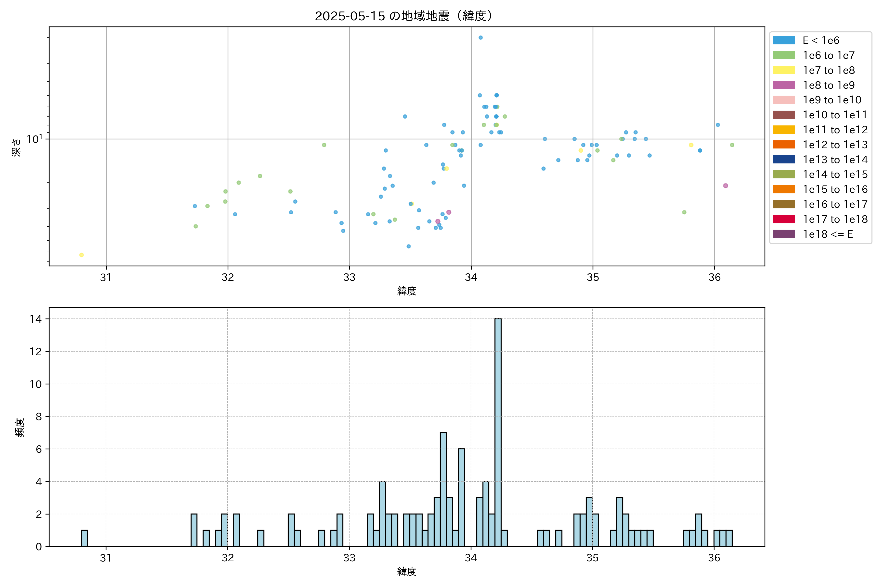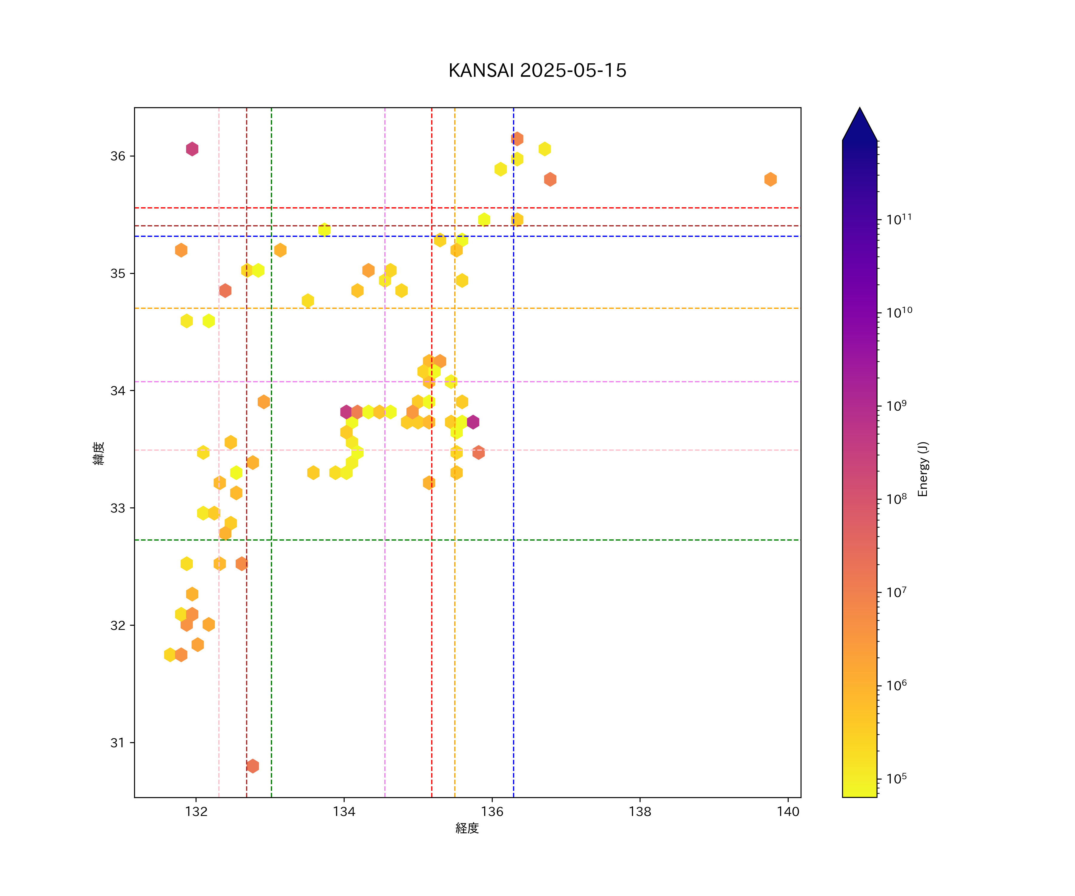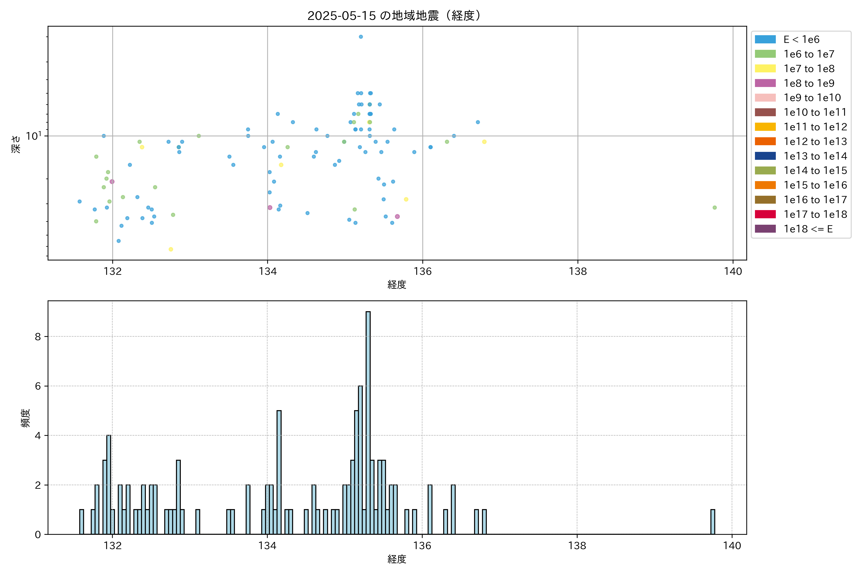 2025年05月15日近畿・中国・四国エリア震源マップ