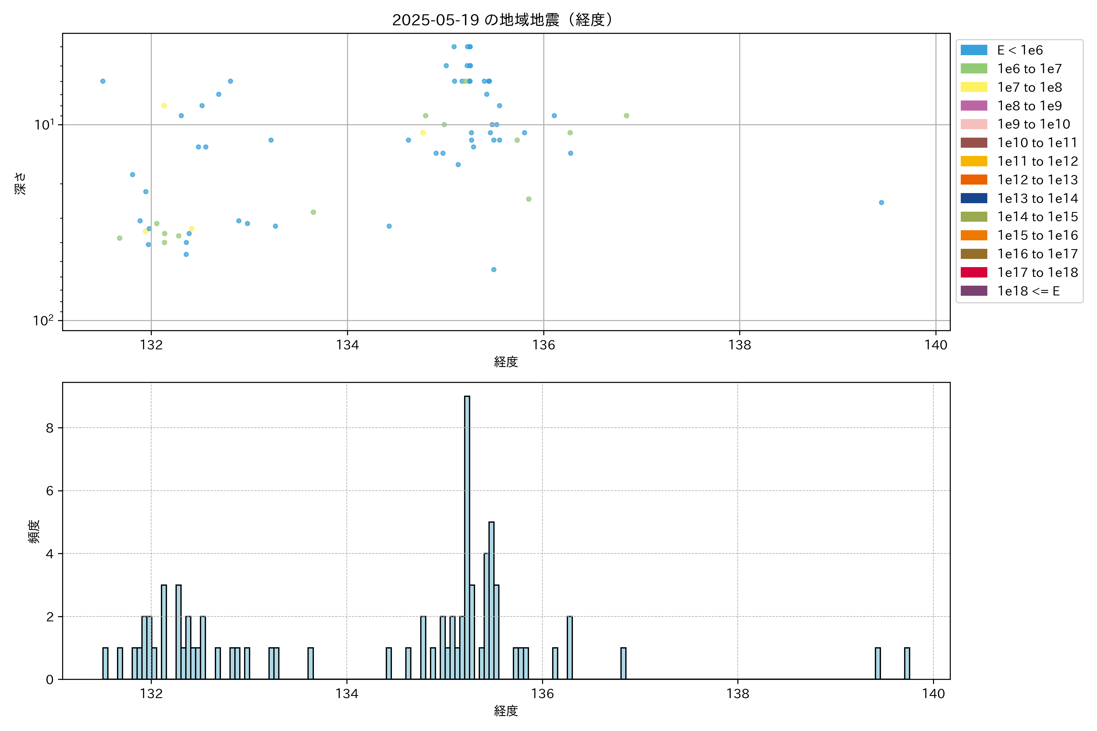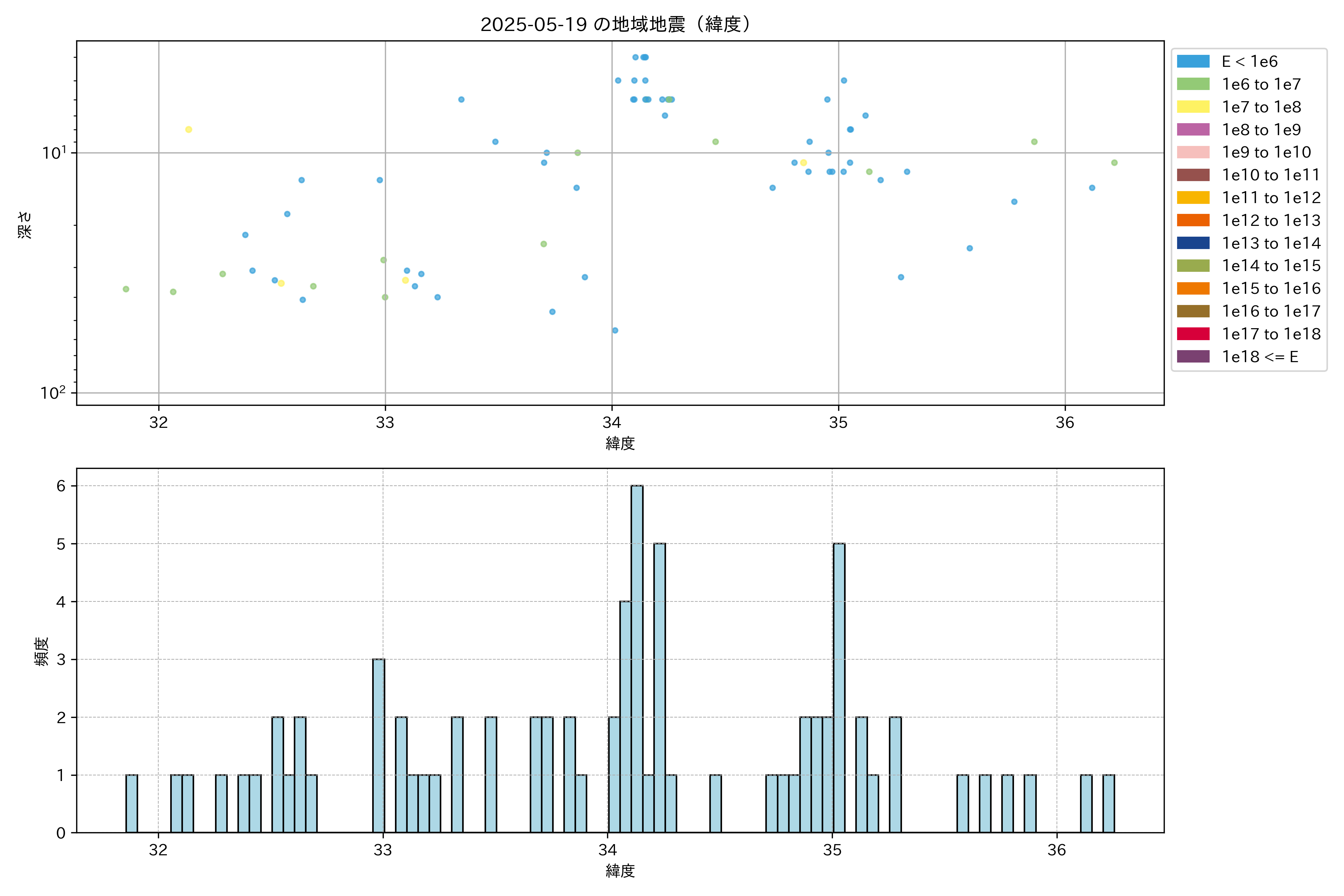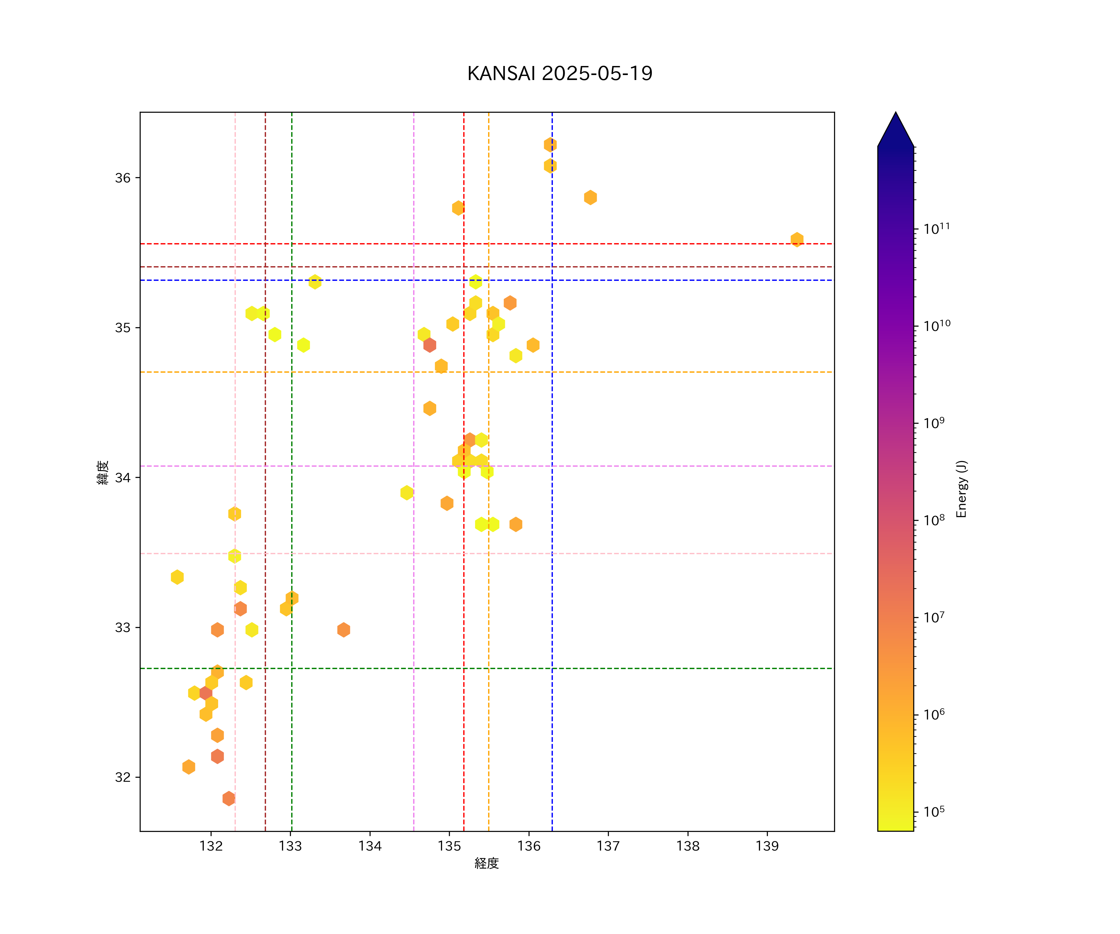 2025年05月19日近畿・中国・四国エリア震源マップ