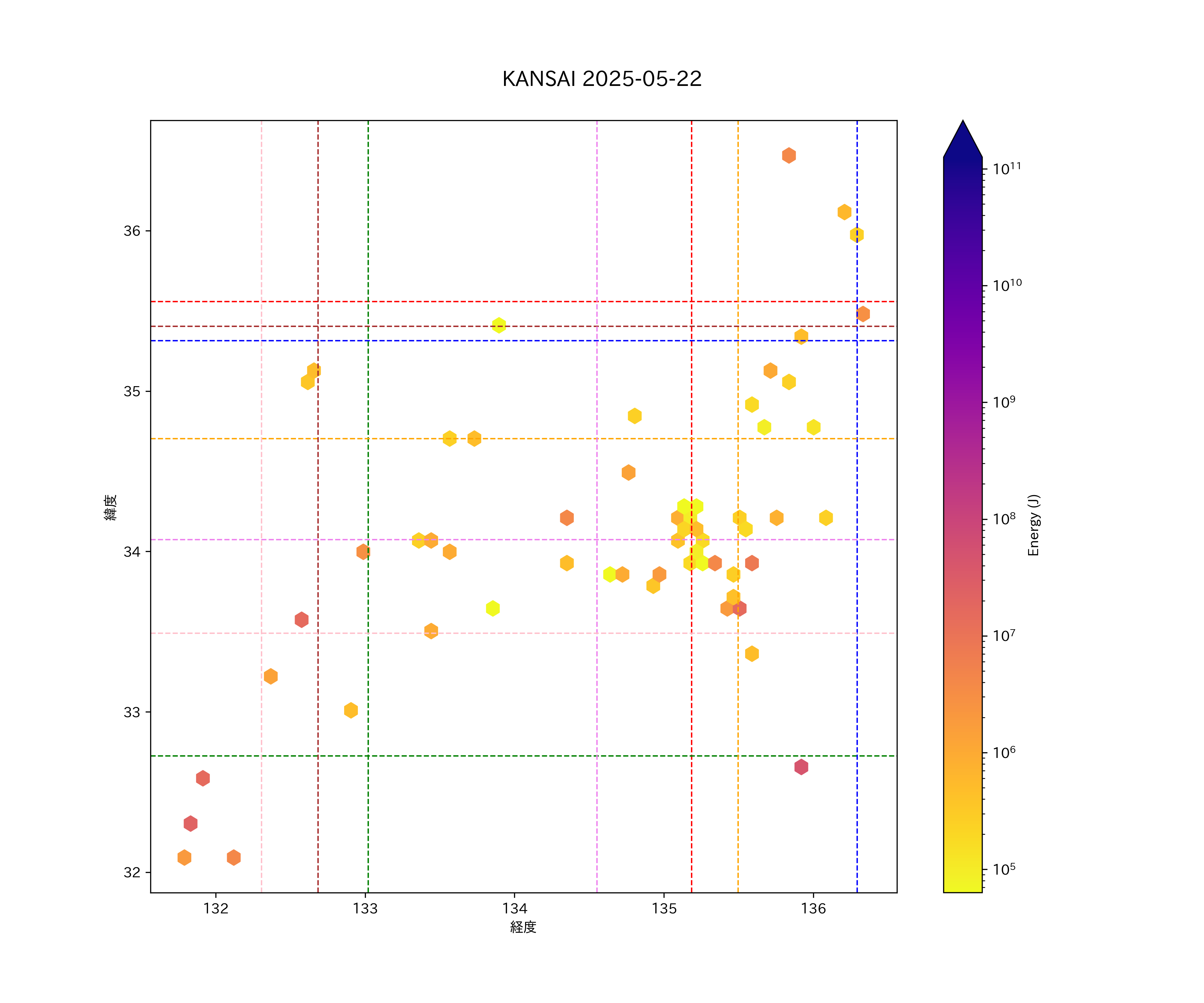 2025年05月22日近畿・中国・四国エリア震源マップ