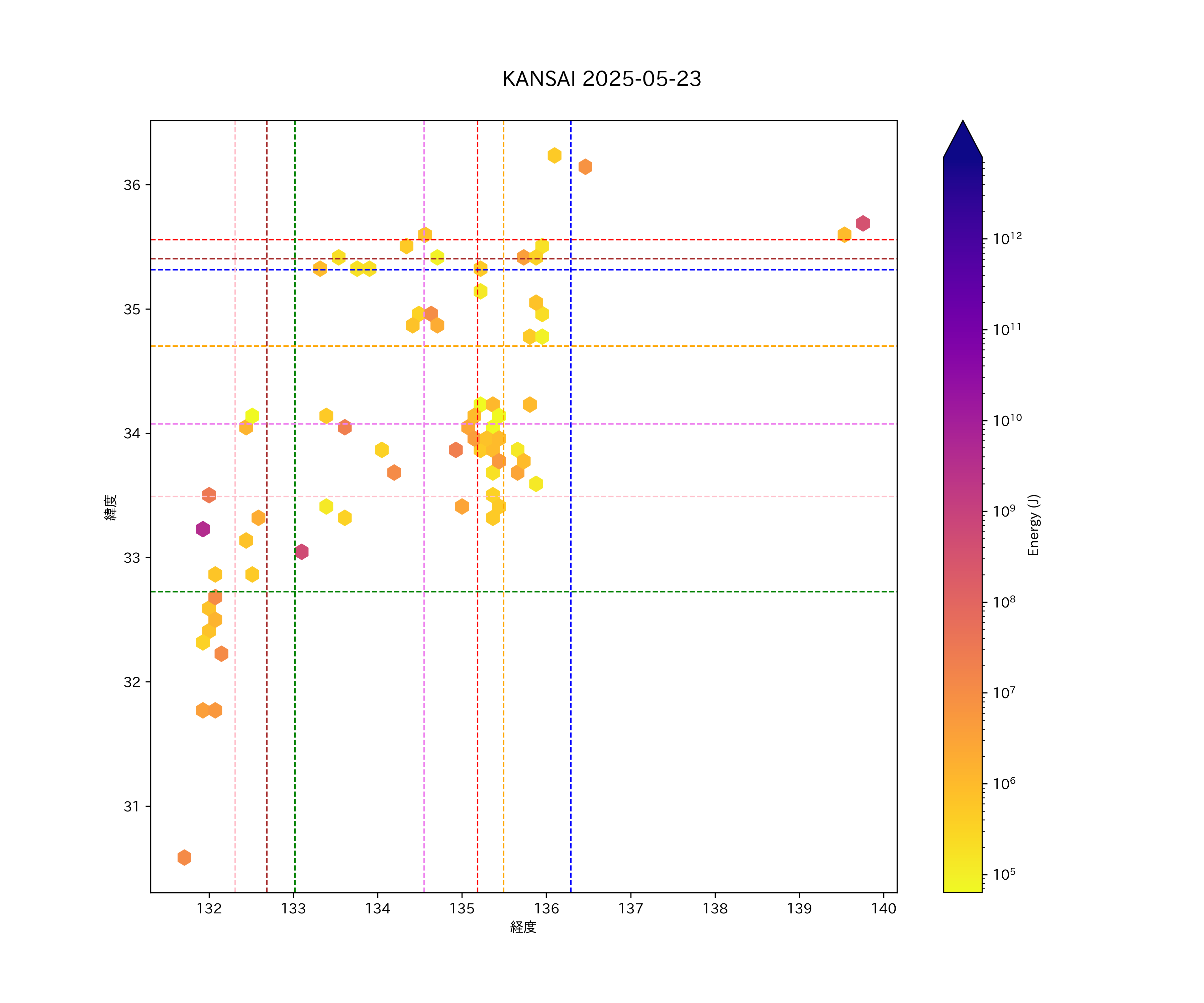 2025年05月23日近畿・中国・四国エリア震源マップ