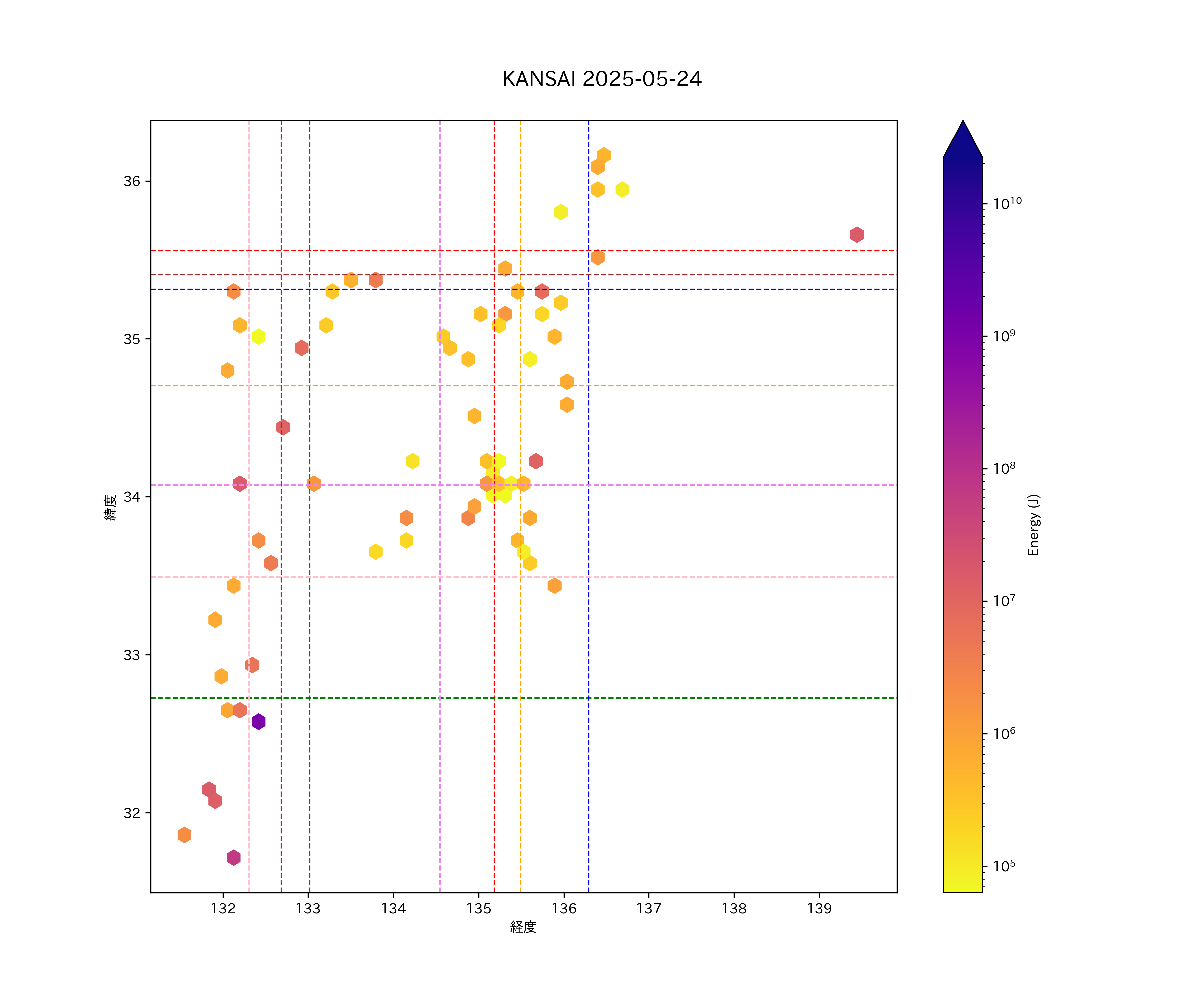 2025年05月24日近畿・中国・四国エリア震源マップ