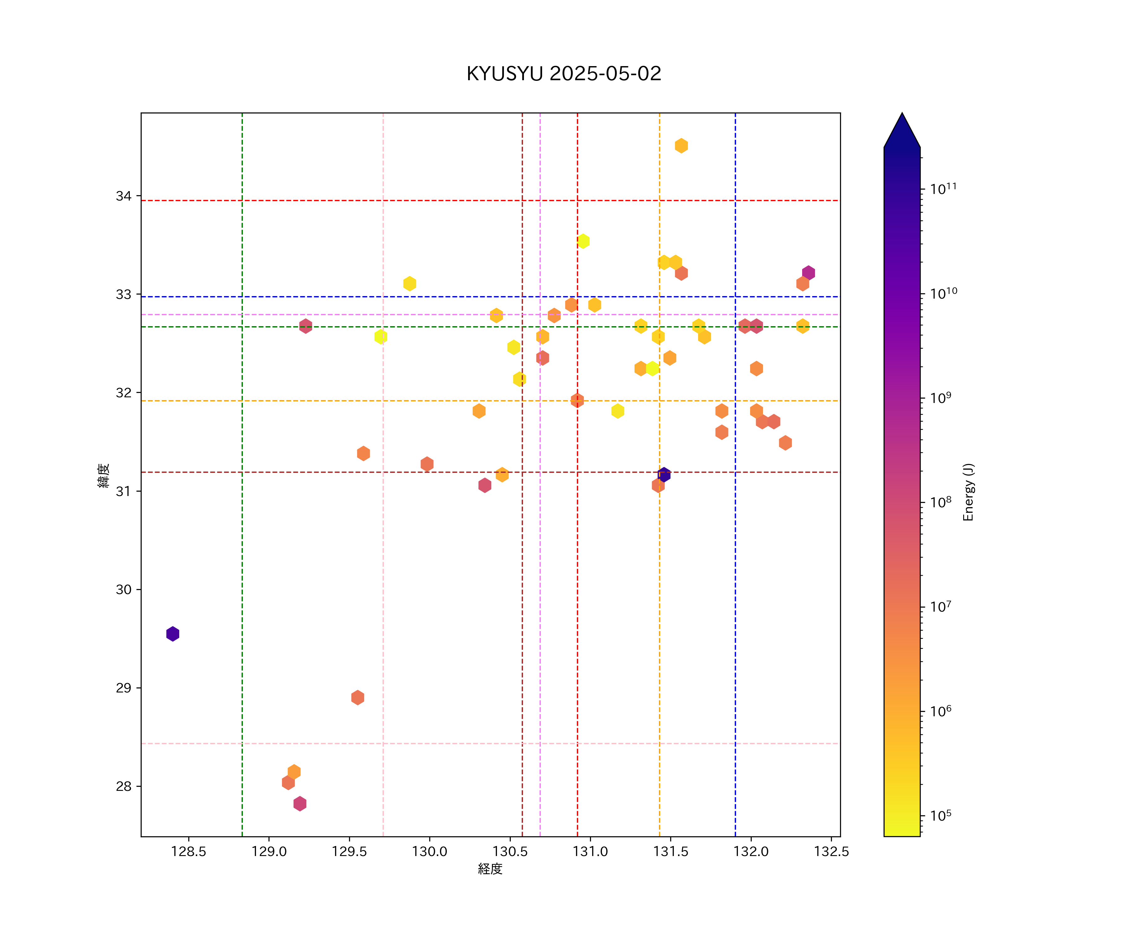 2025年05月02日九州エリア震源マップ