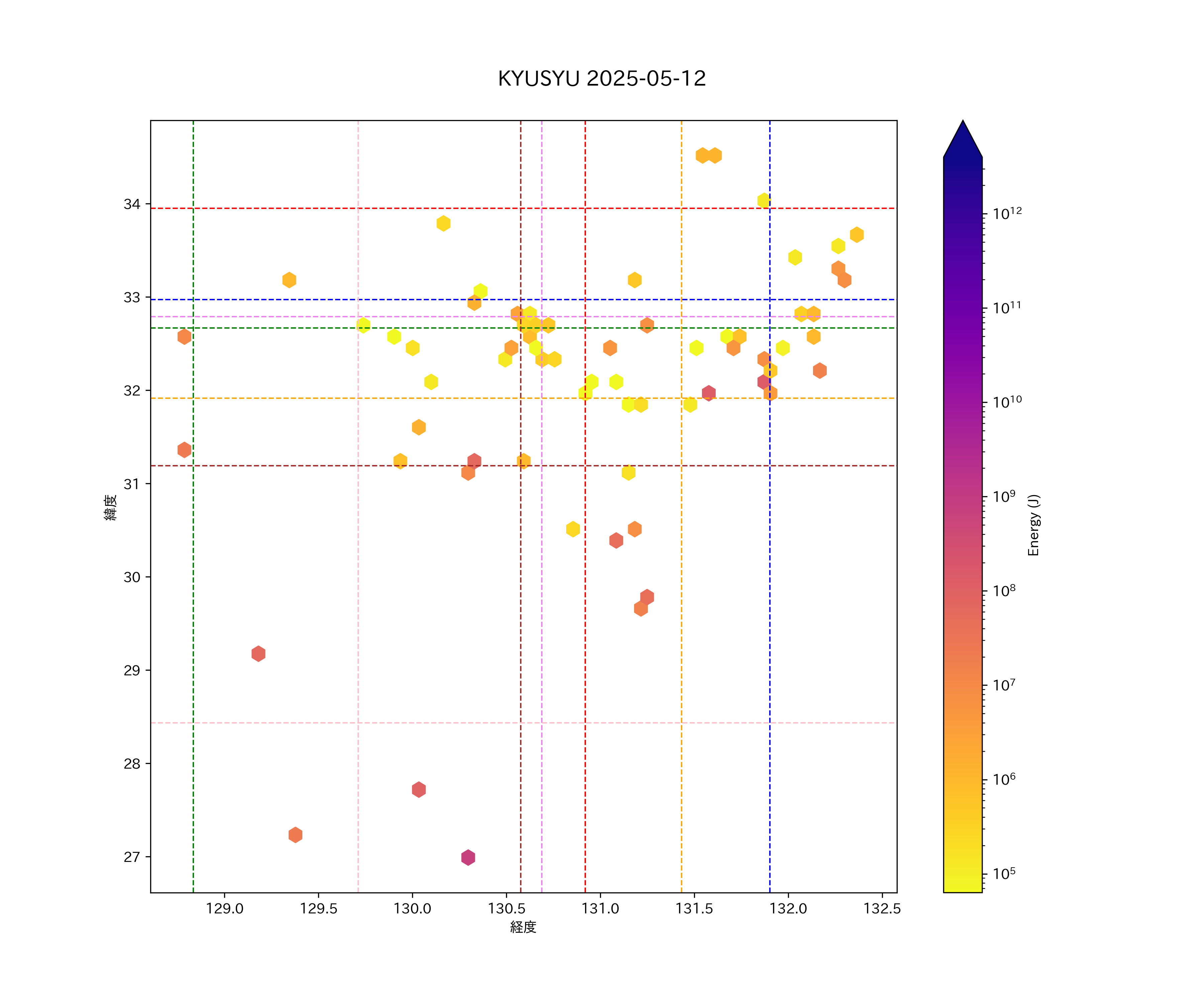 2025年05月12日九州エリア震源マップ