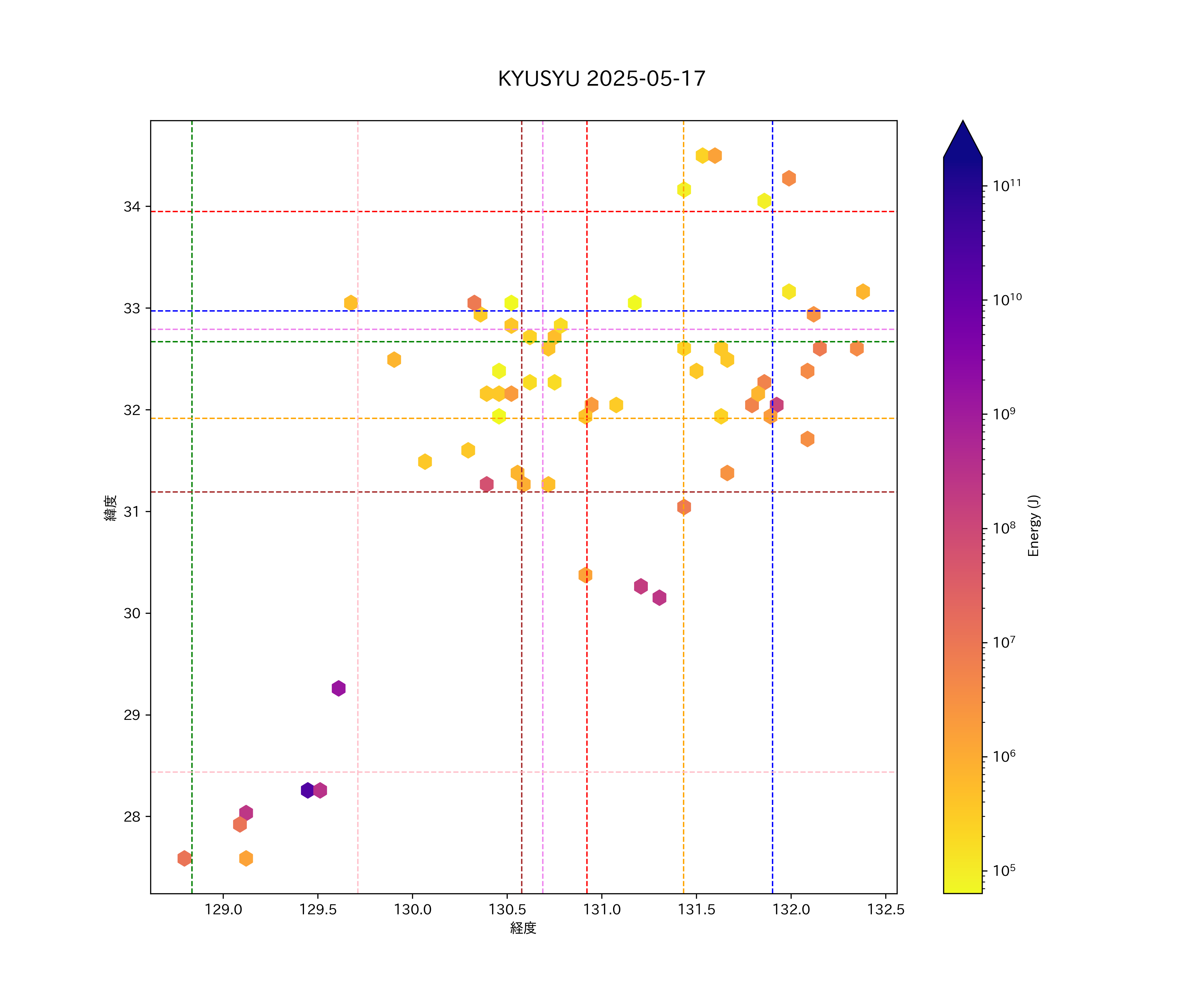 2025年05月17日九州エリア震源マップ