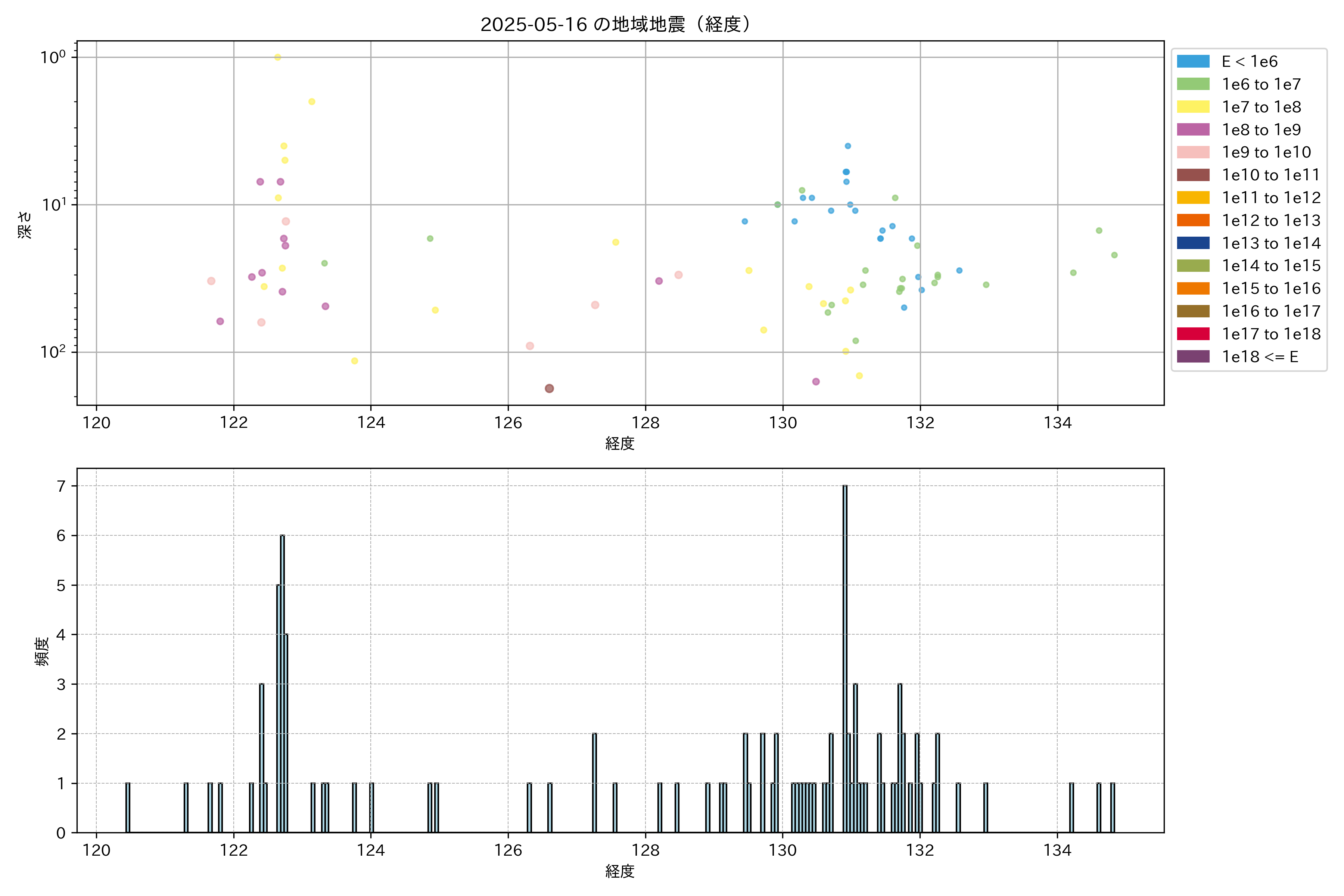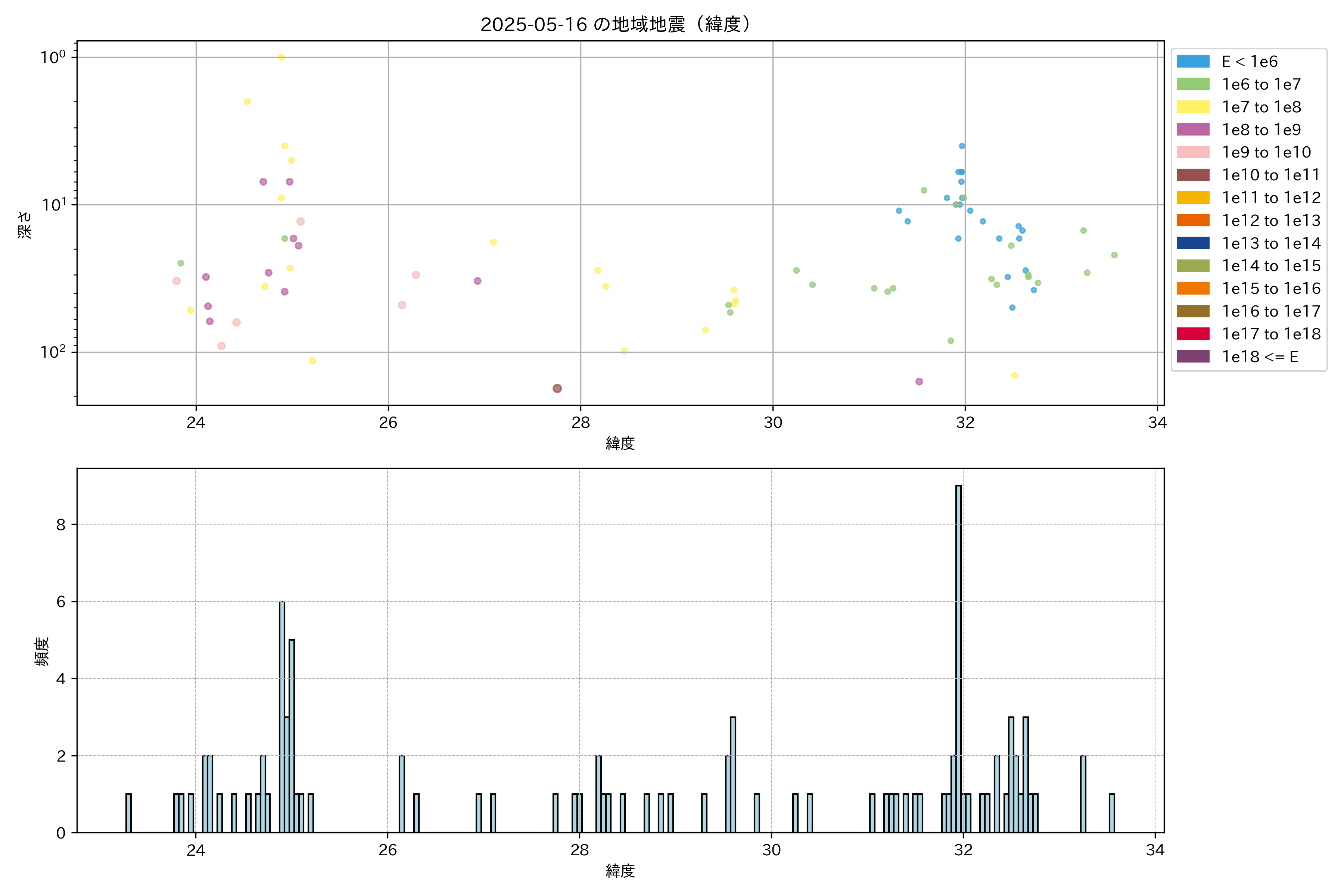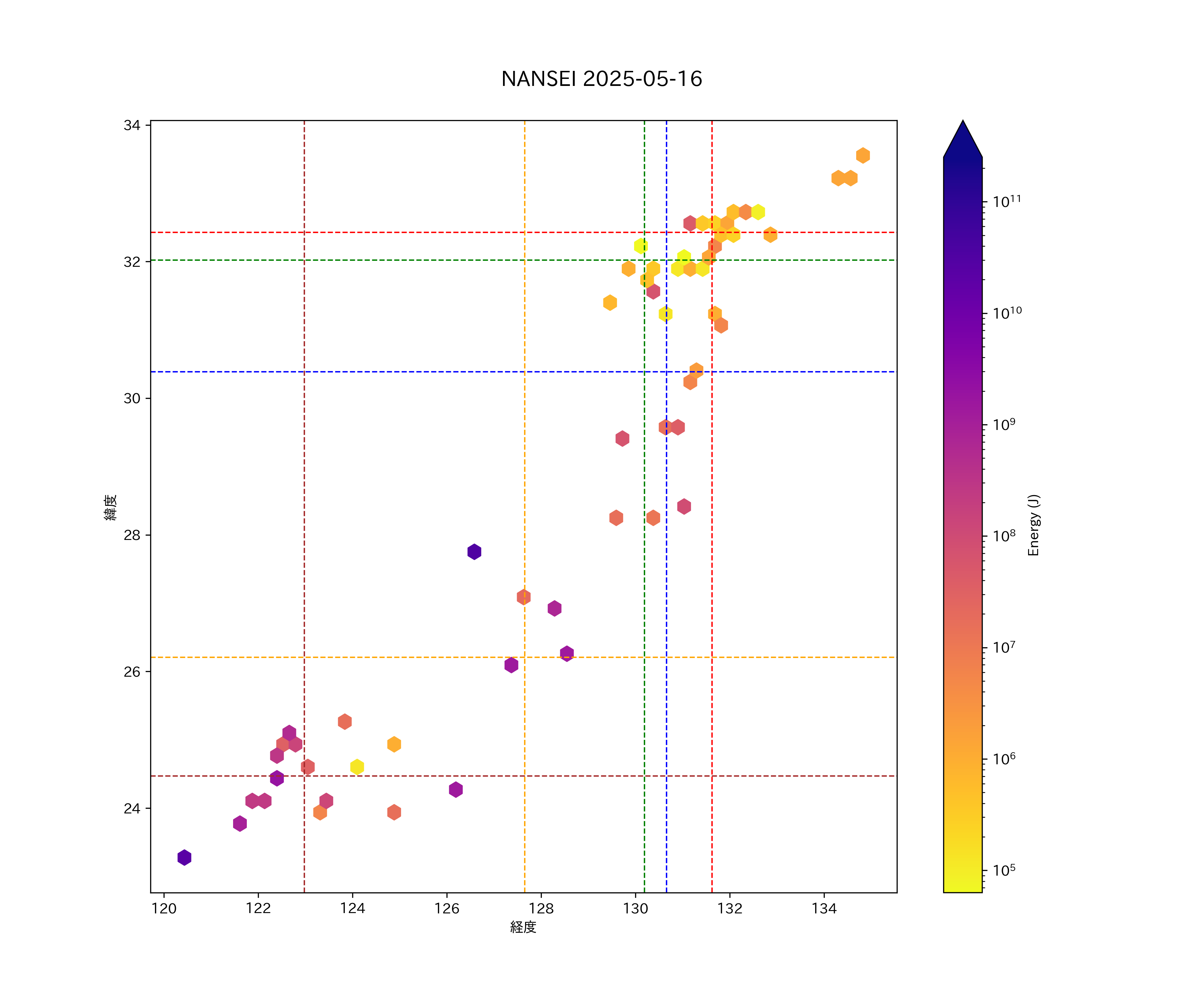 2025年05月16日南西諸島エリア震源マップ