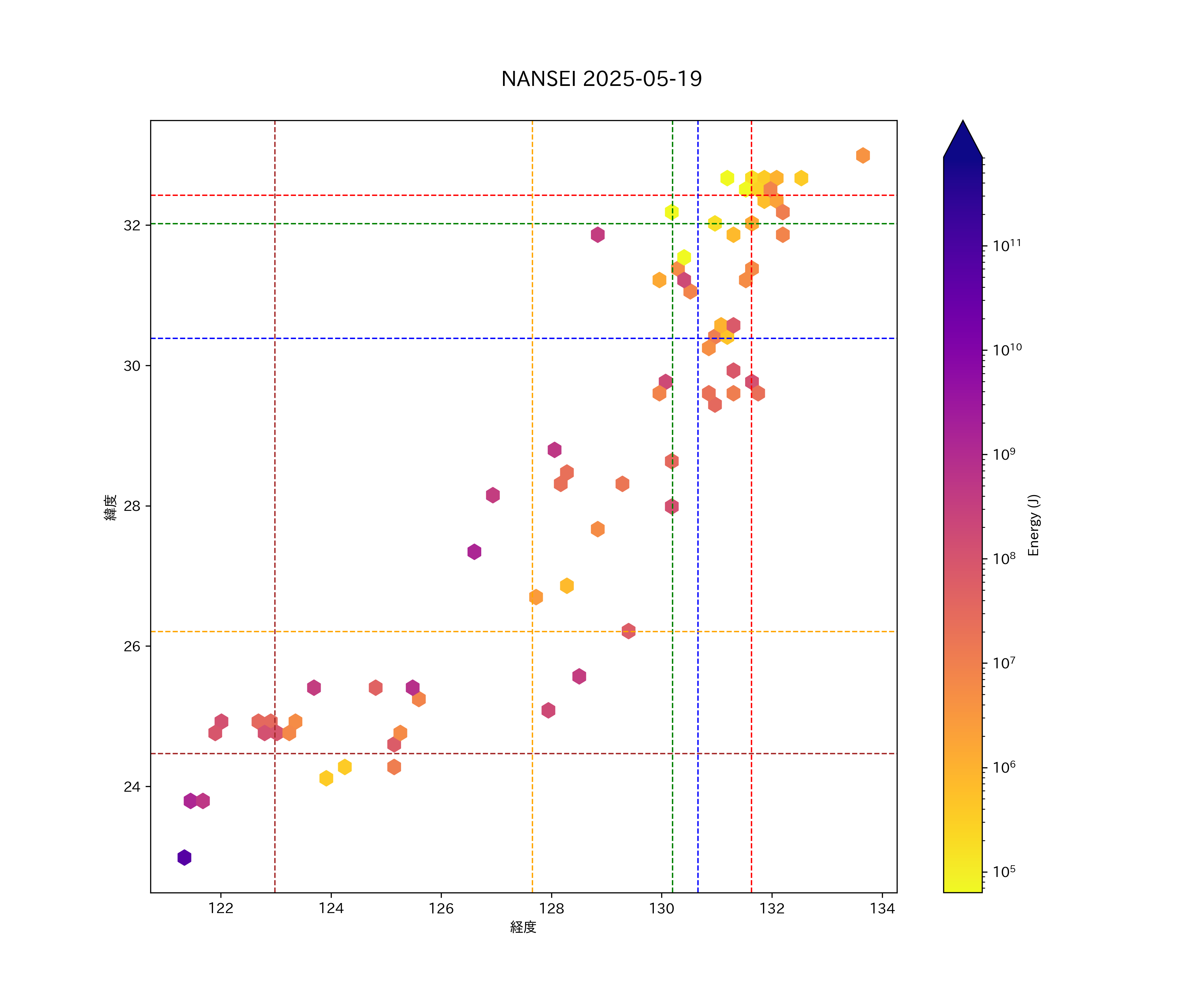 2025年05月19日南西諸島エリア震源マップ