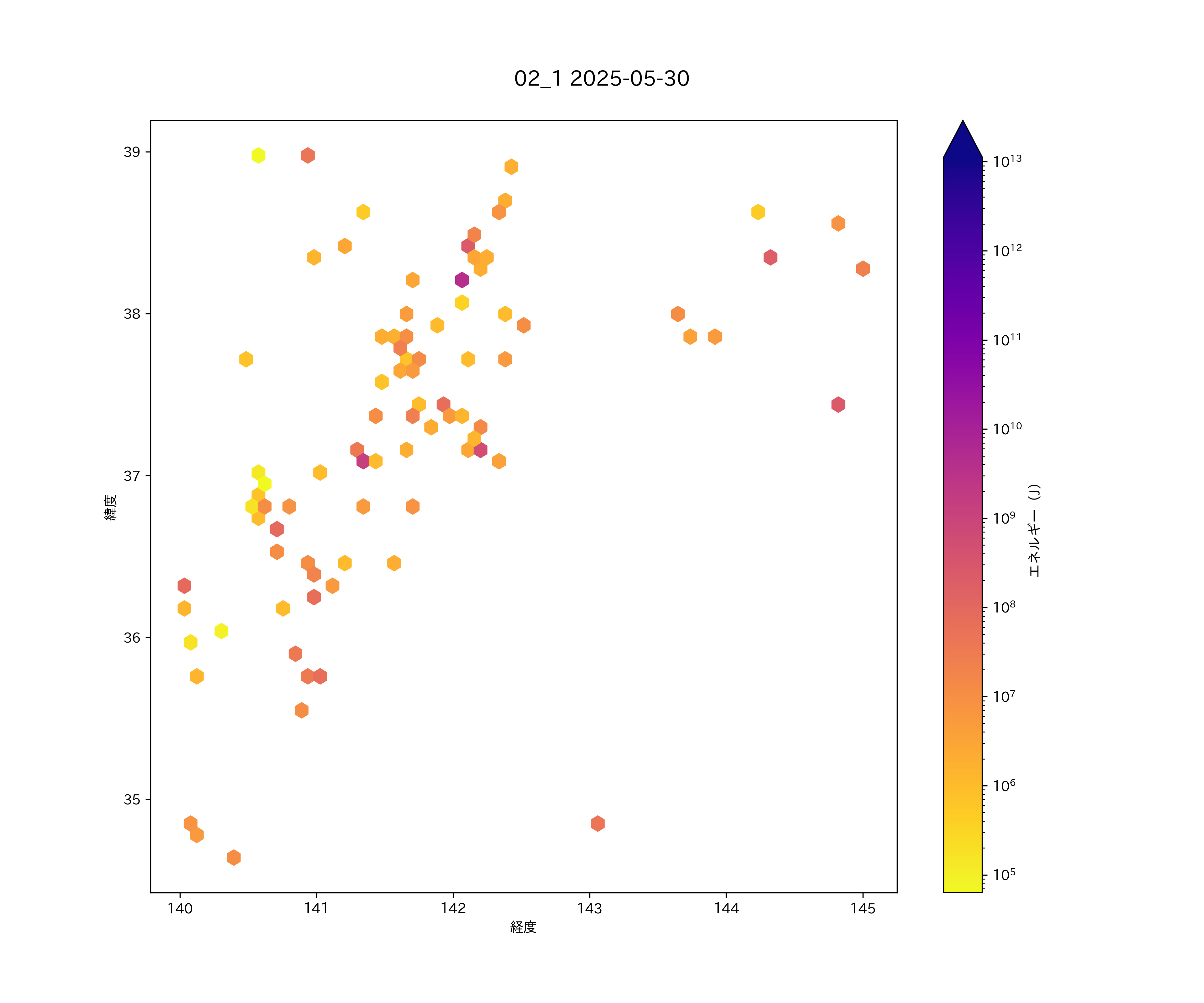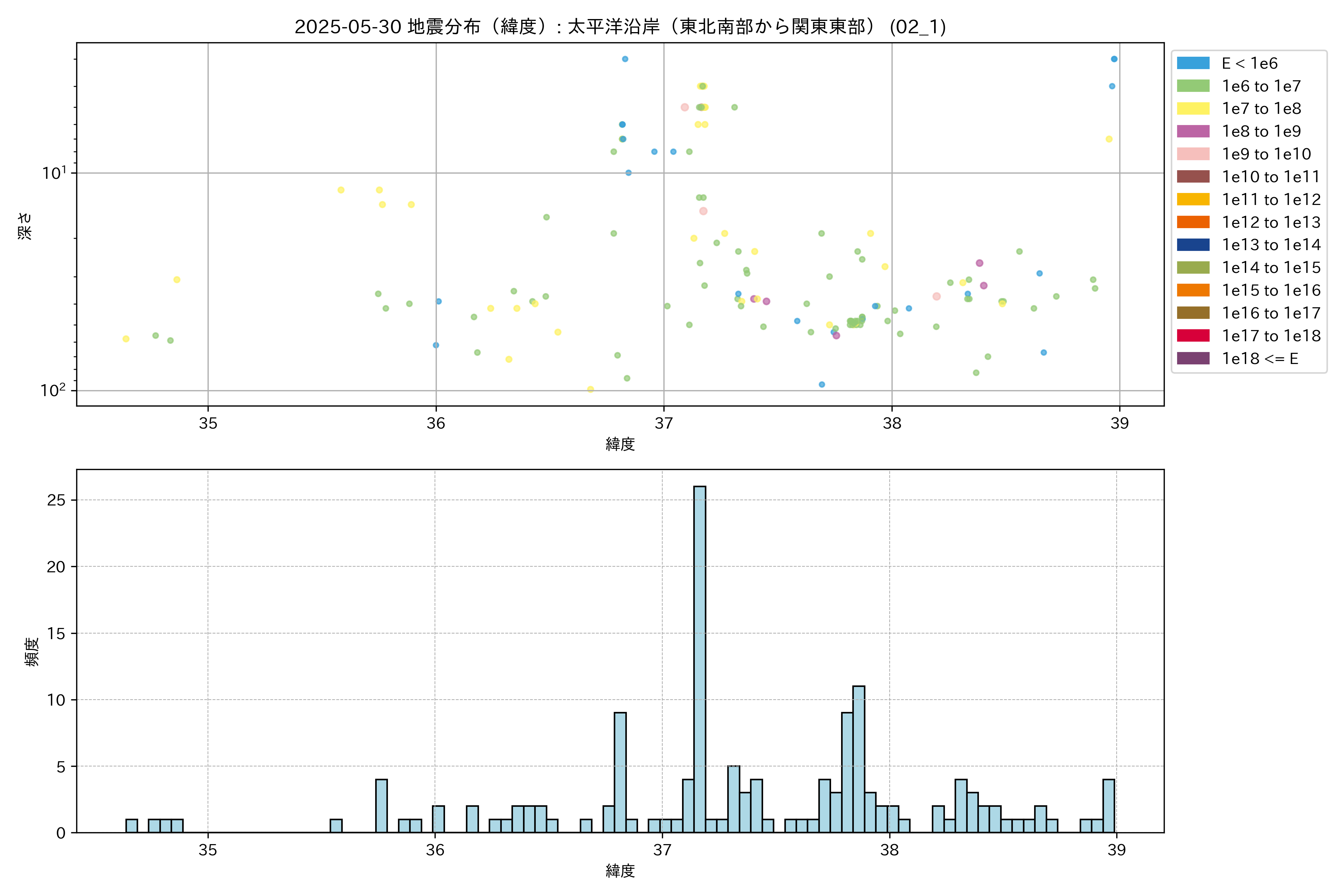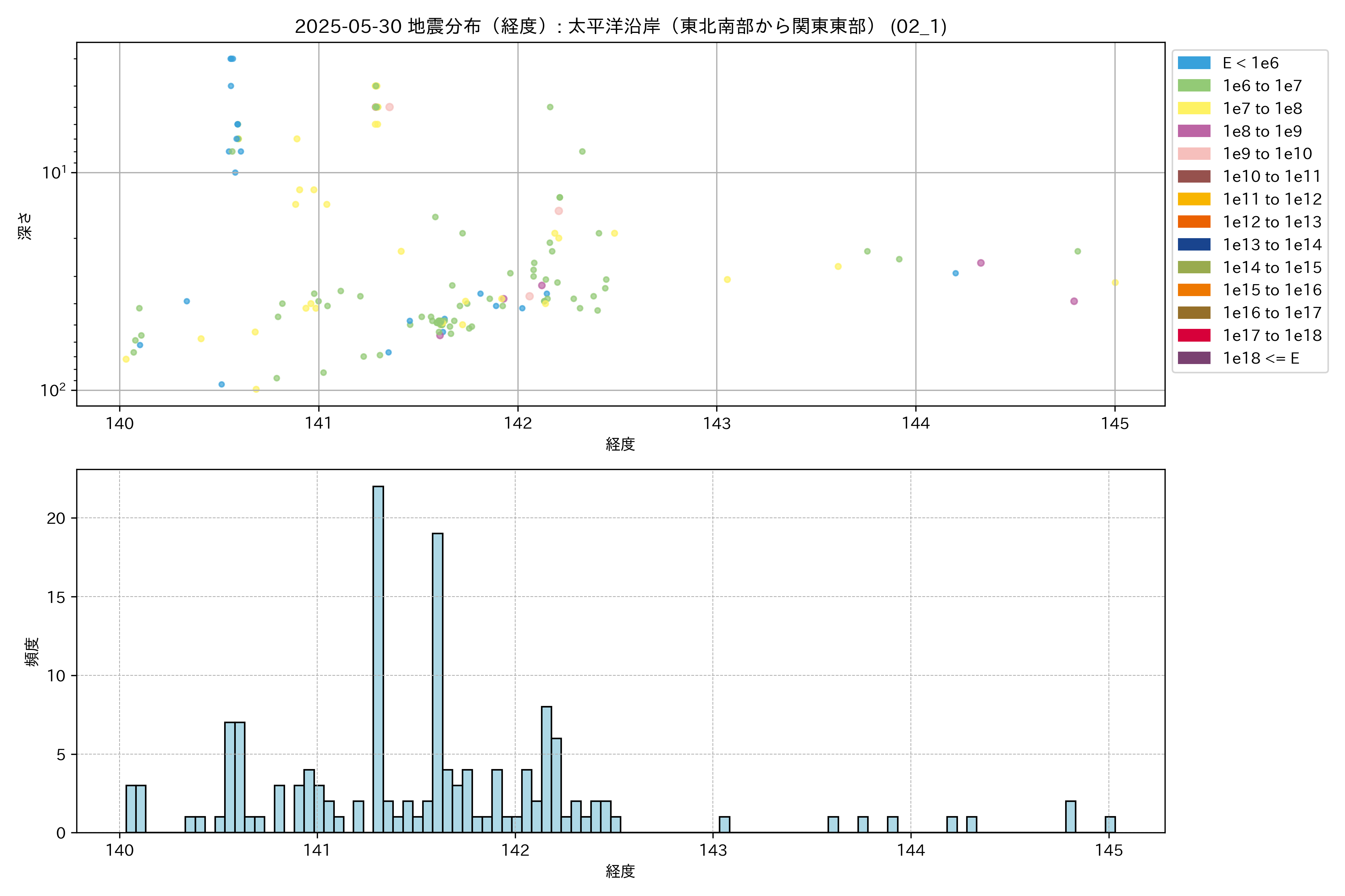 2025年05月30日 太平洋沿岸(東北南部から関東東部) エリア震源マップ