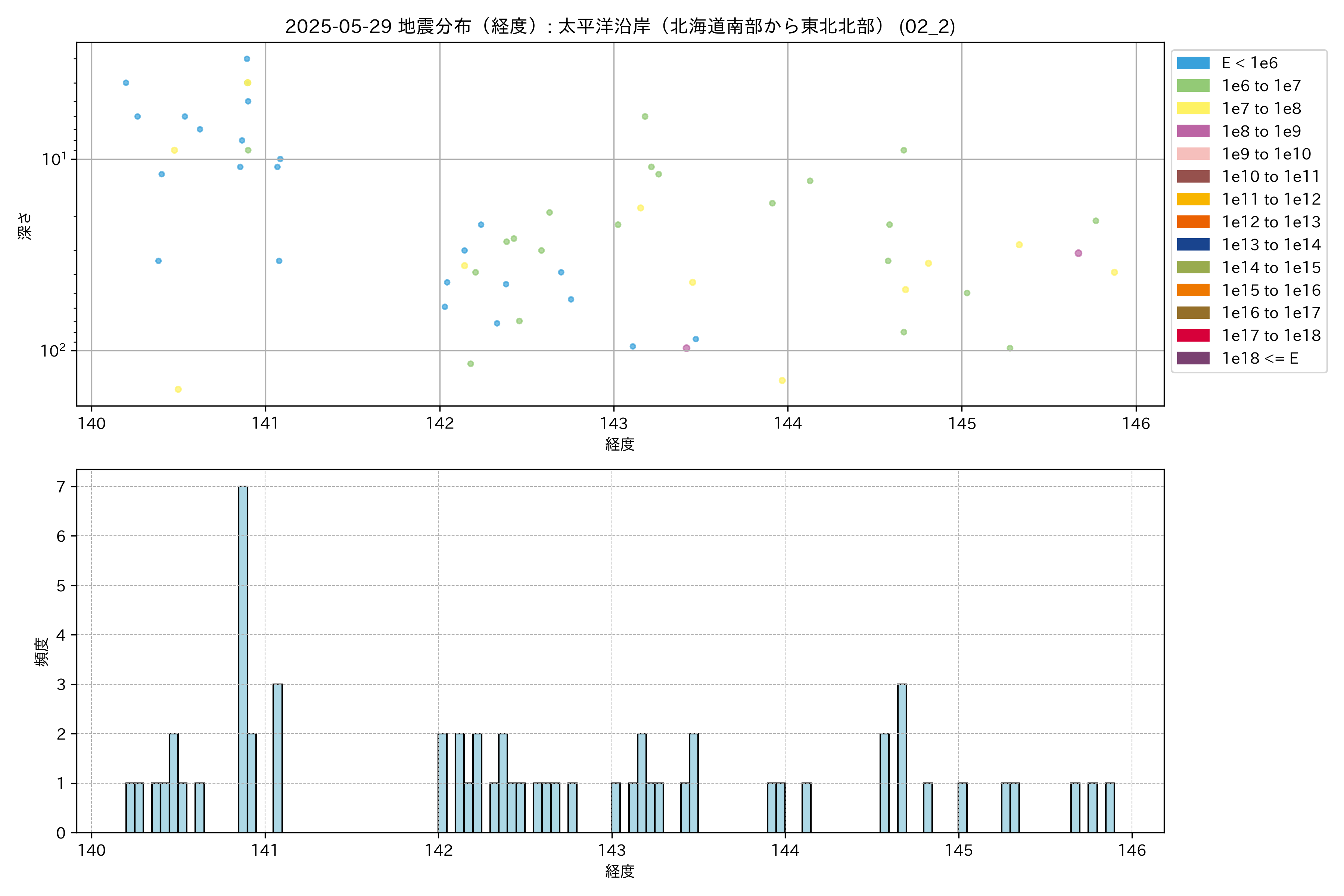 2025年05月29日 太平洋沿岸(北海道南部から東北北部) エリア震源マップ