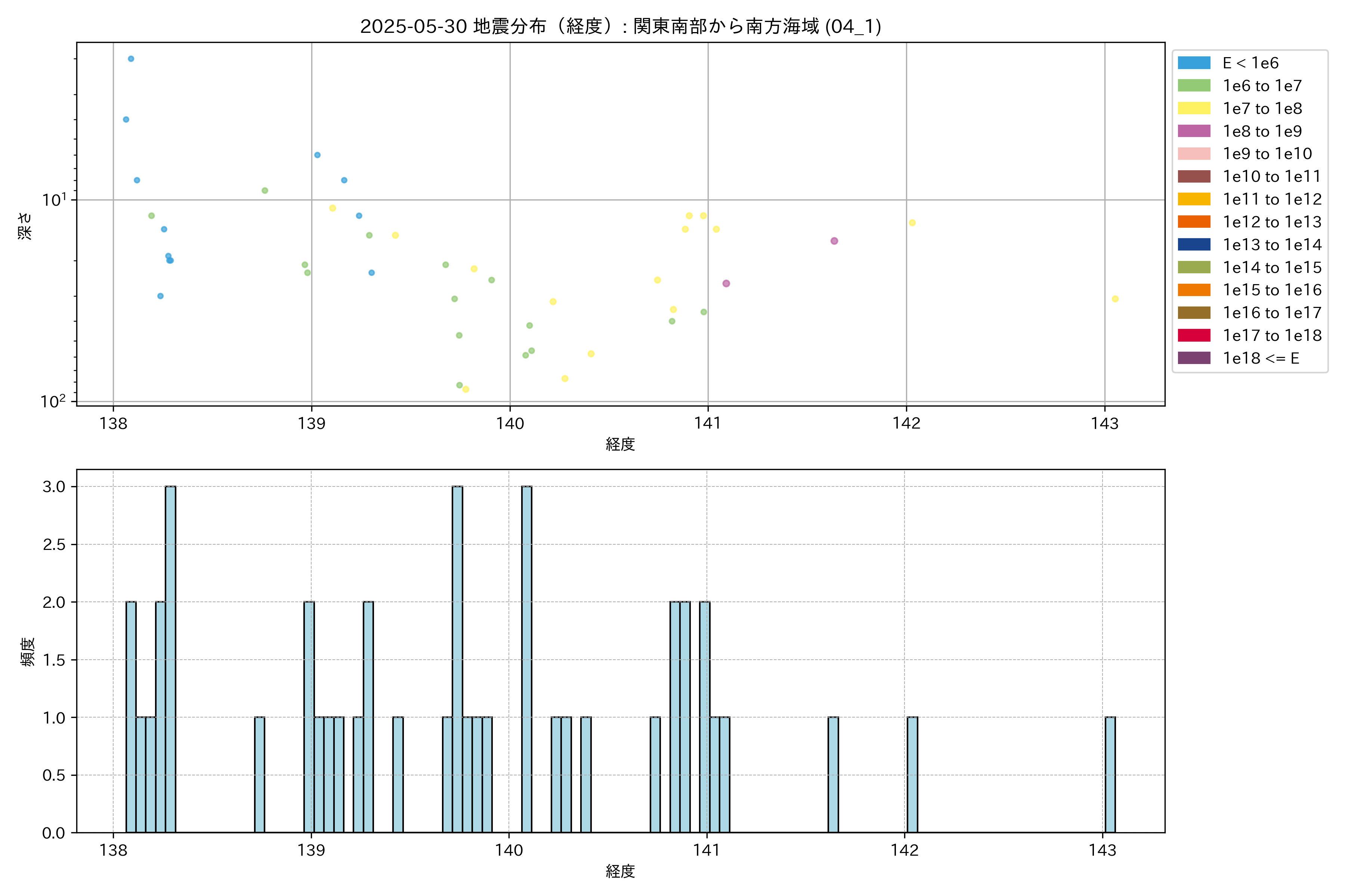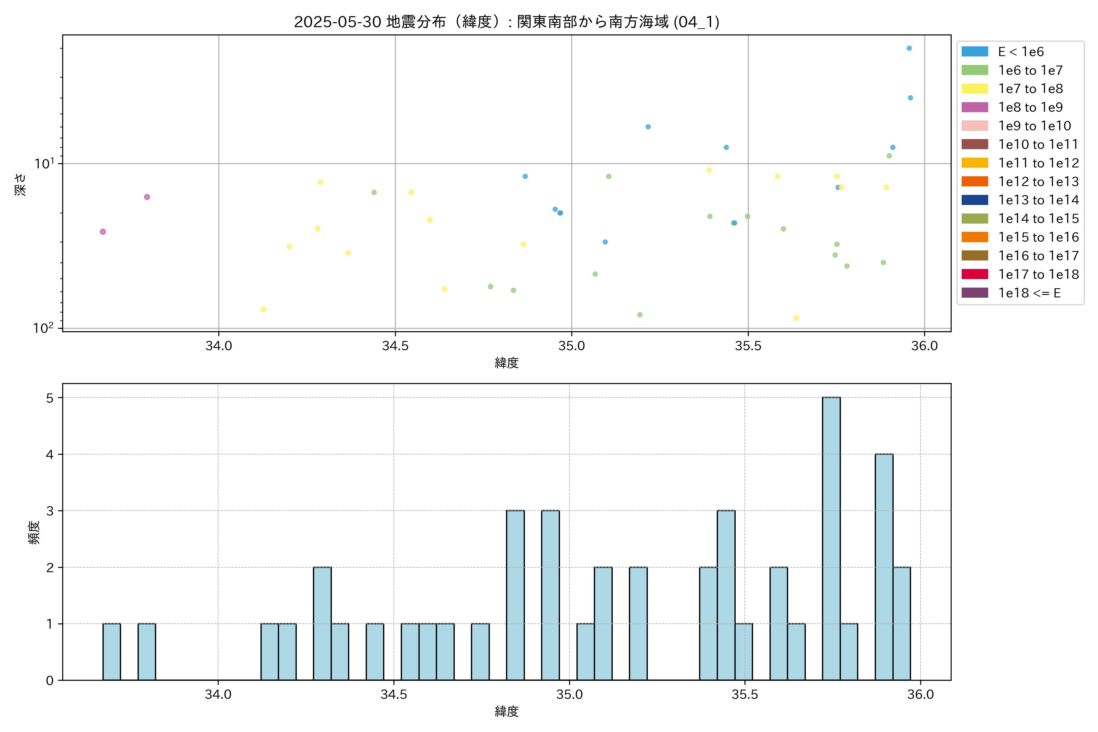 2025年05月30日 関東南部から南方海域 エリア震源マップ